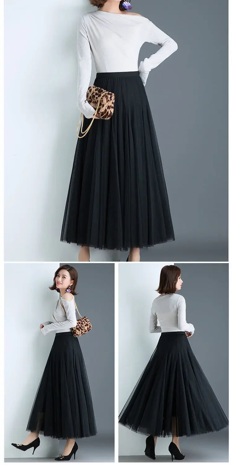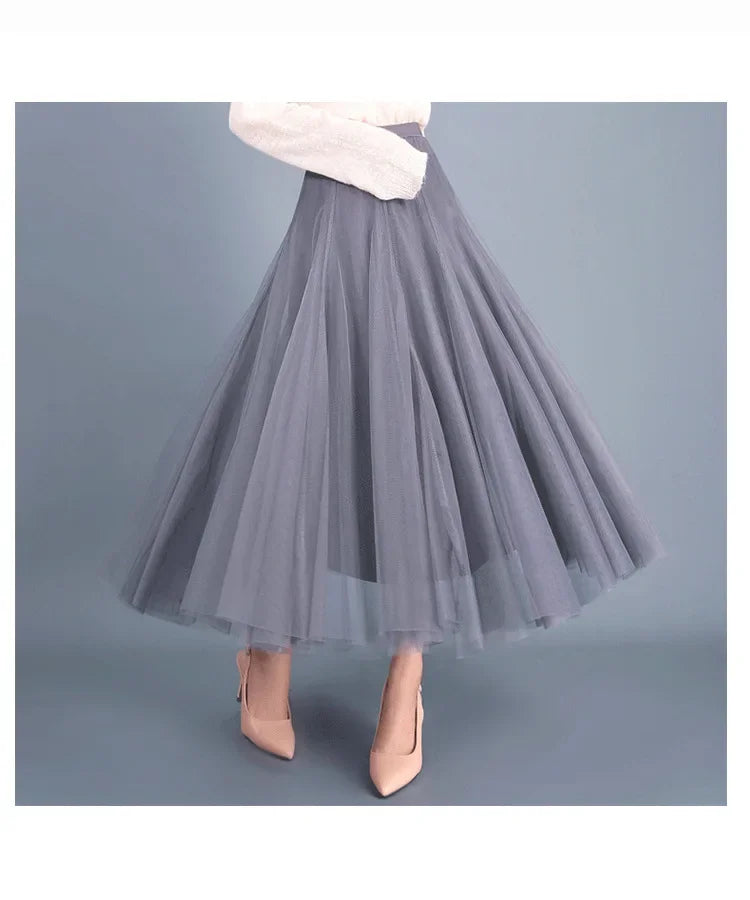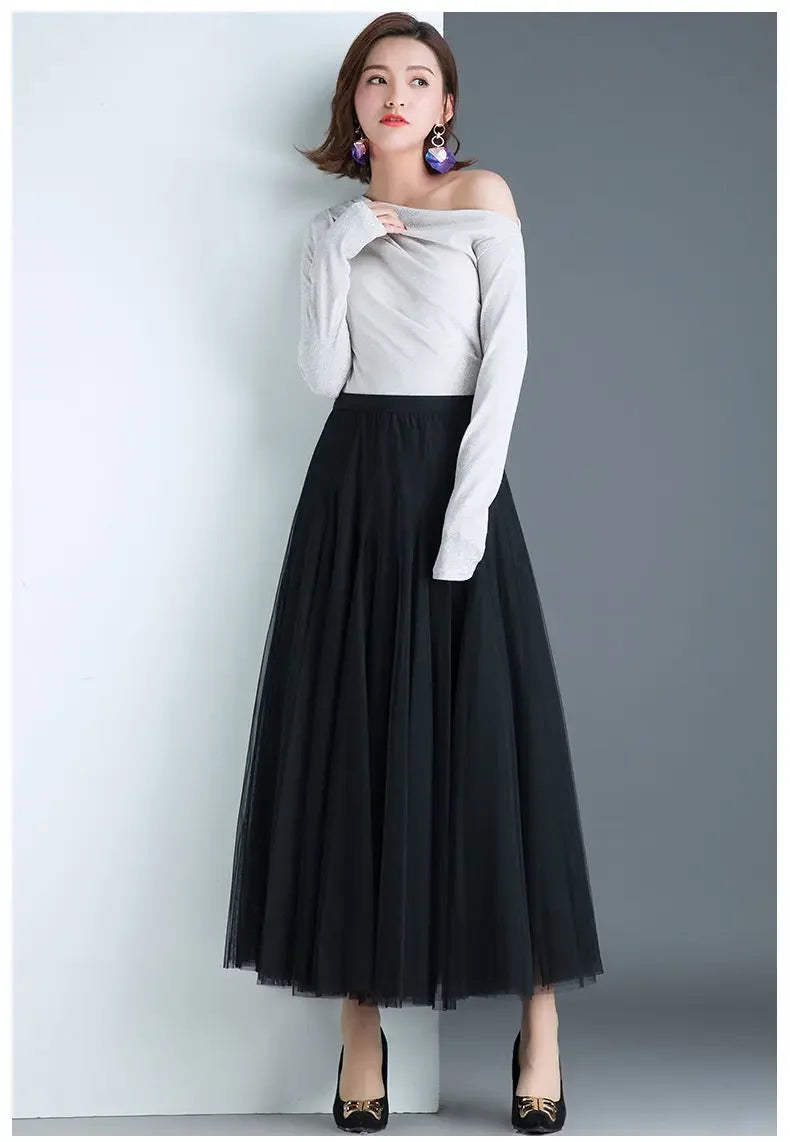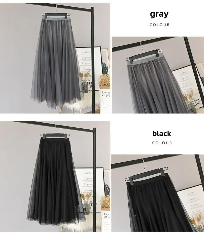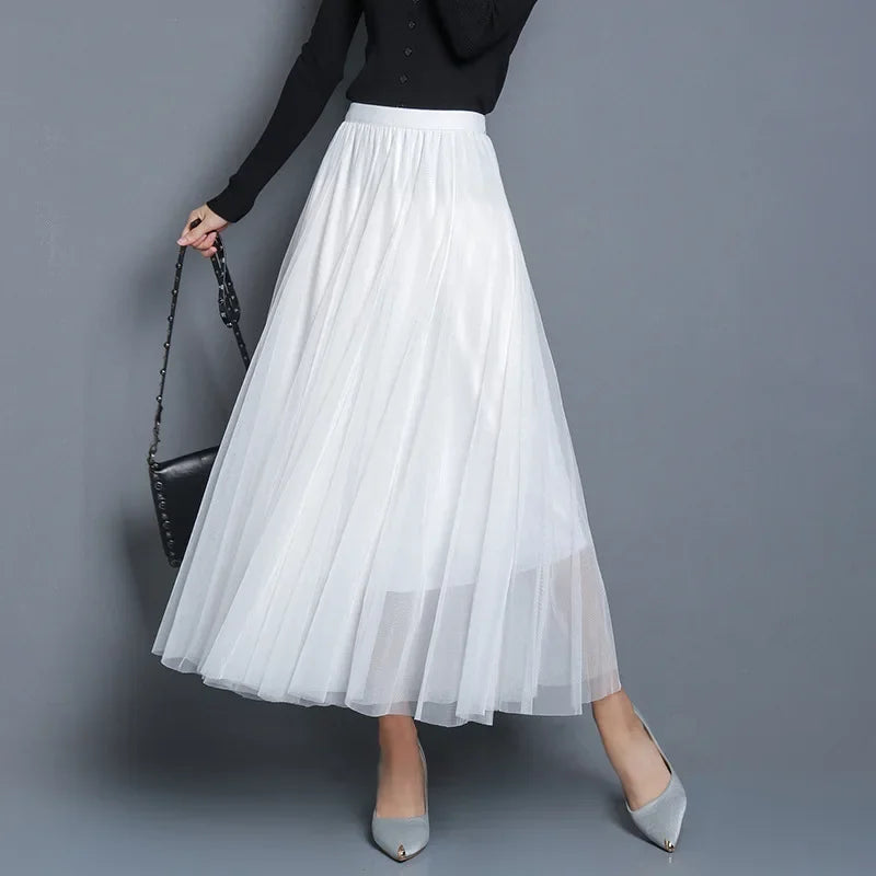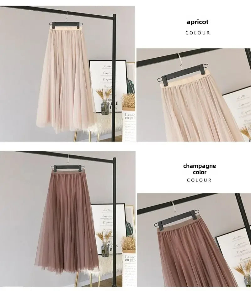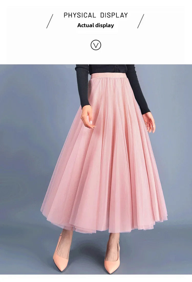 Elegant 720-Degree A-Line Mesh Skirt, High-Waisted, 10m Medium-Length, Slimming Dance Long Dress