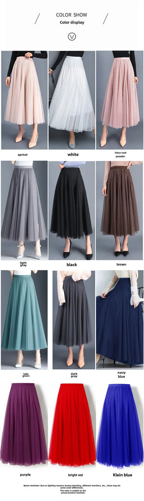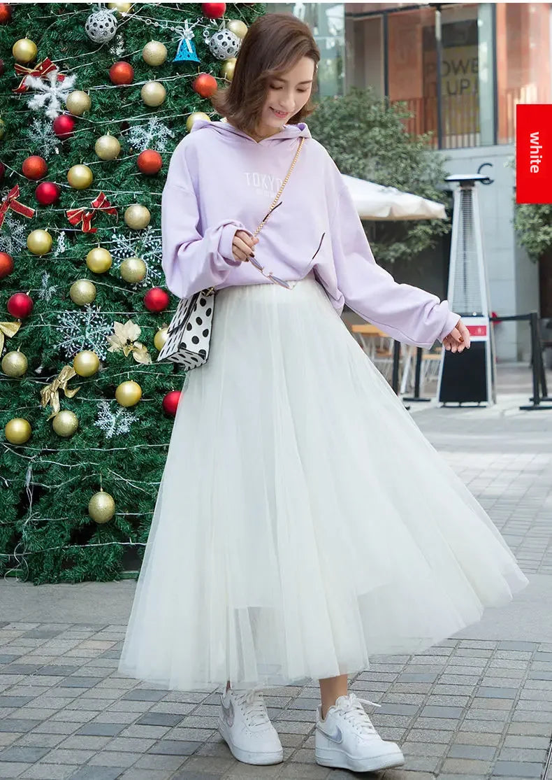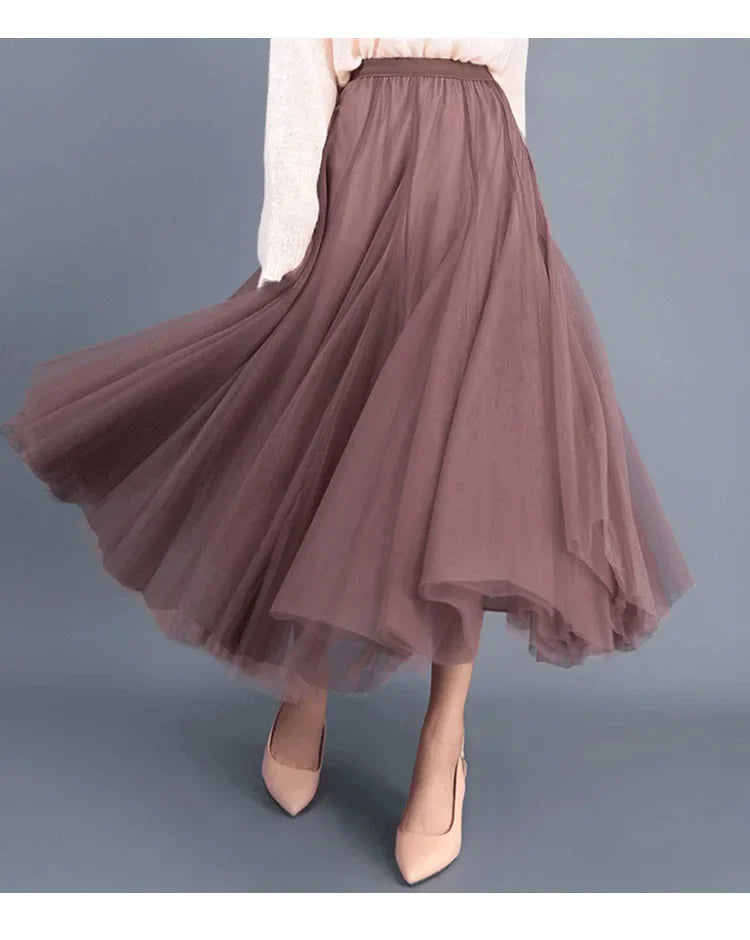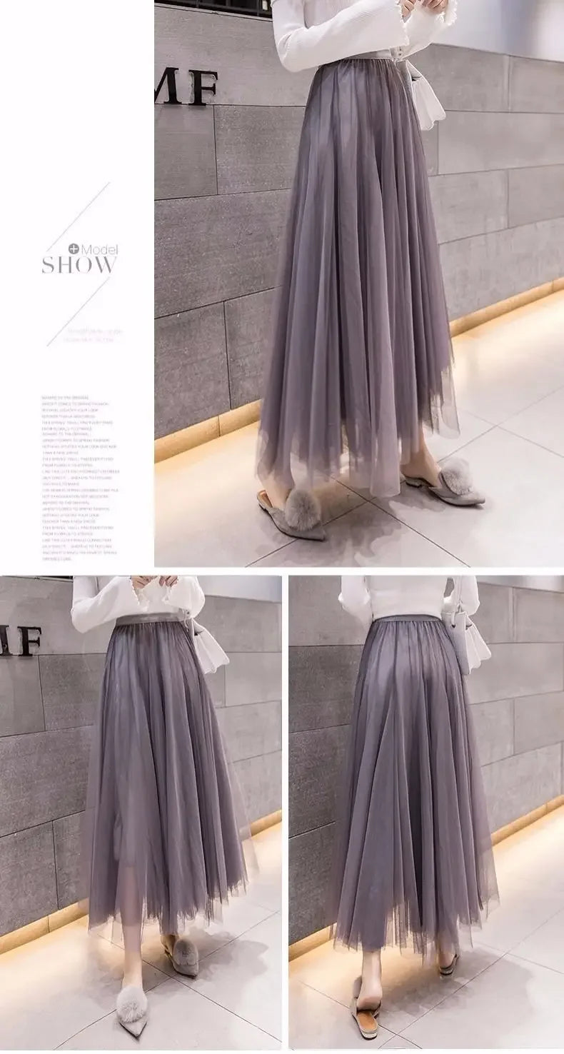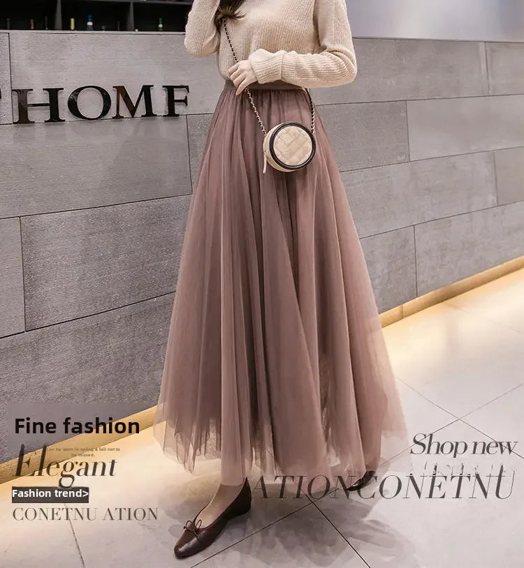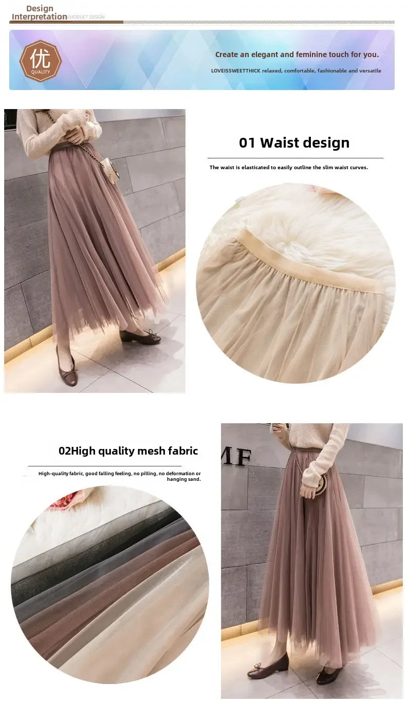 Elegant 720-Degree A-Line Mesh Skirt, High-Waisted, 10m Medium-Length, Slimming Dance Long Dress