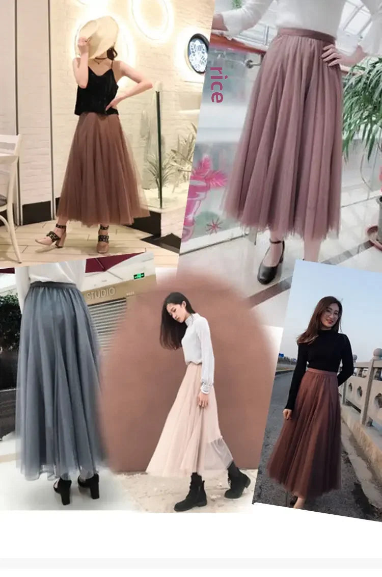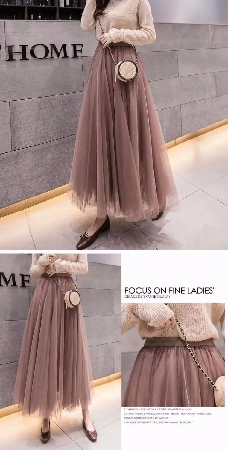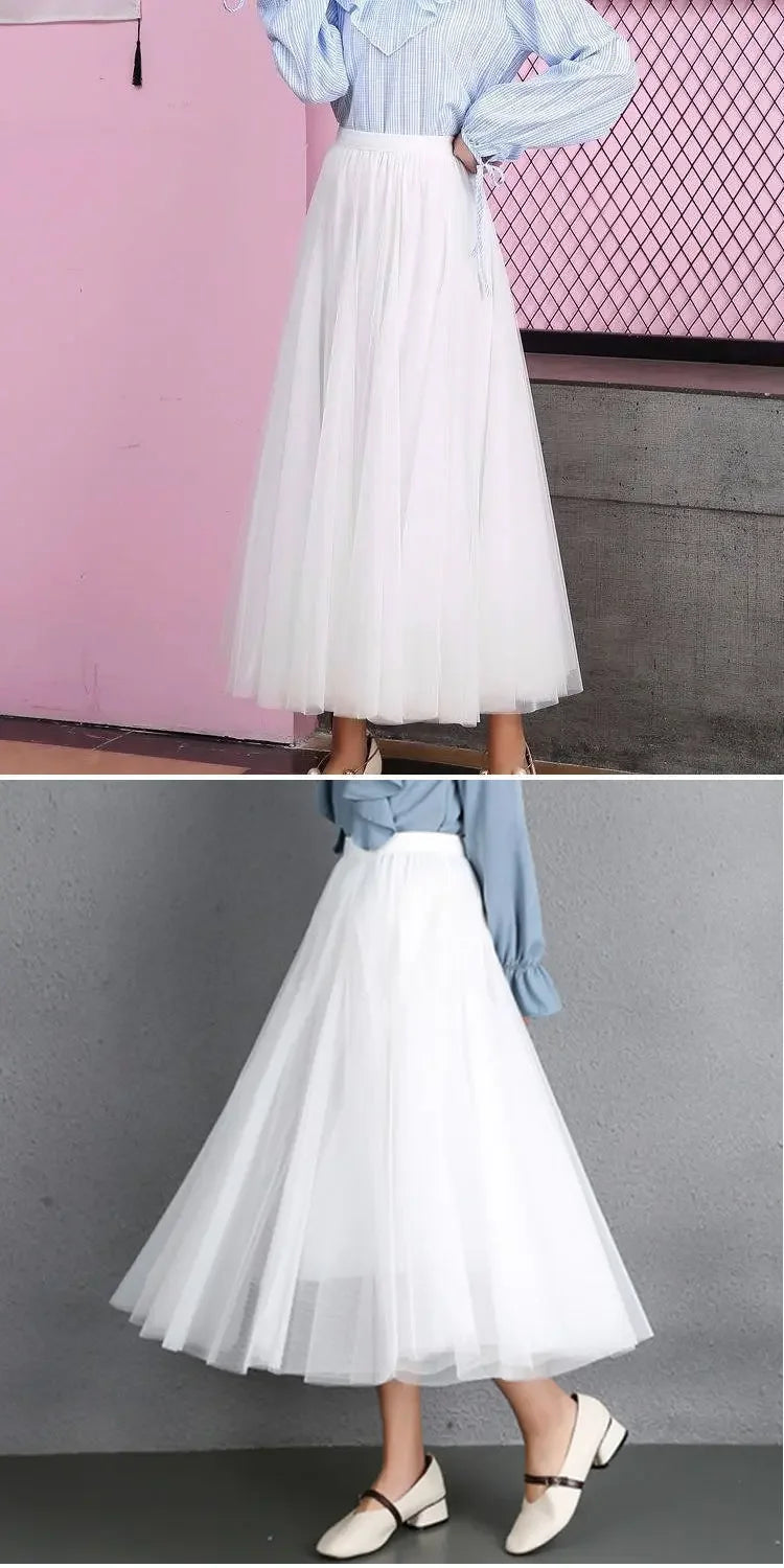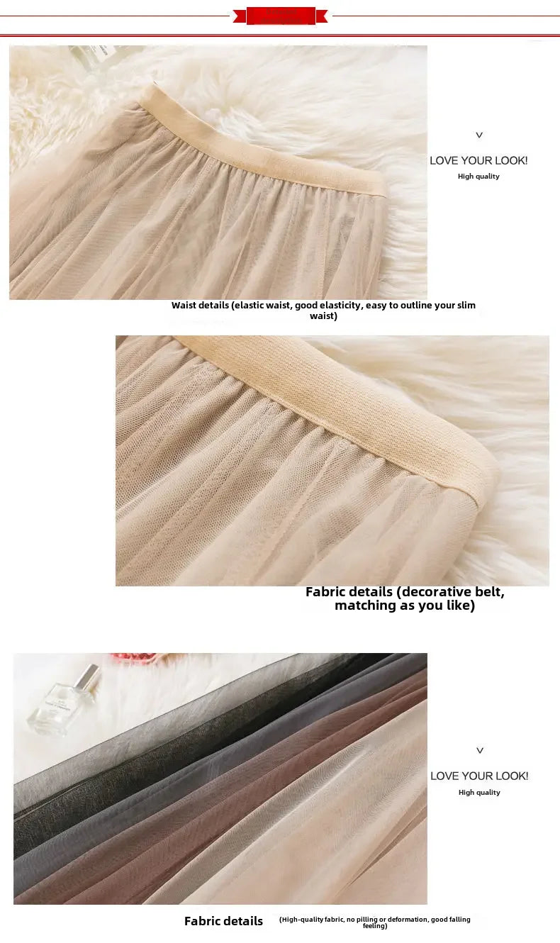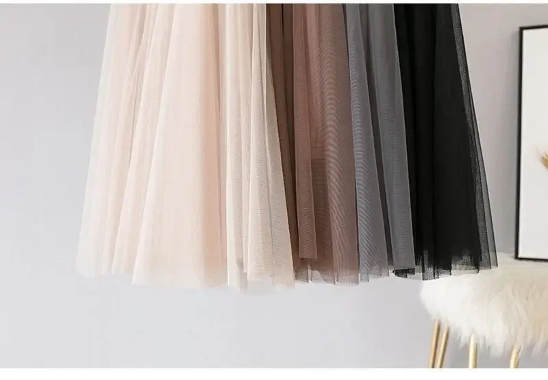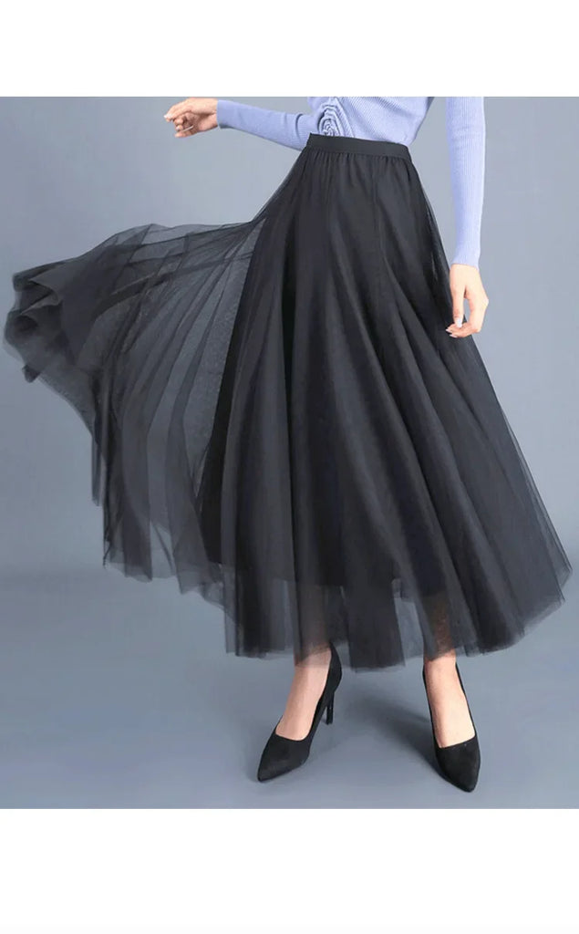 Elegant 720-Degree A-Line Mesh Skirt, High-Waisted, 10m Medium-Length, Slimming Dance Long Dress