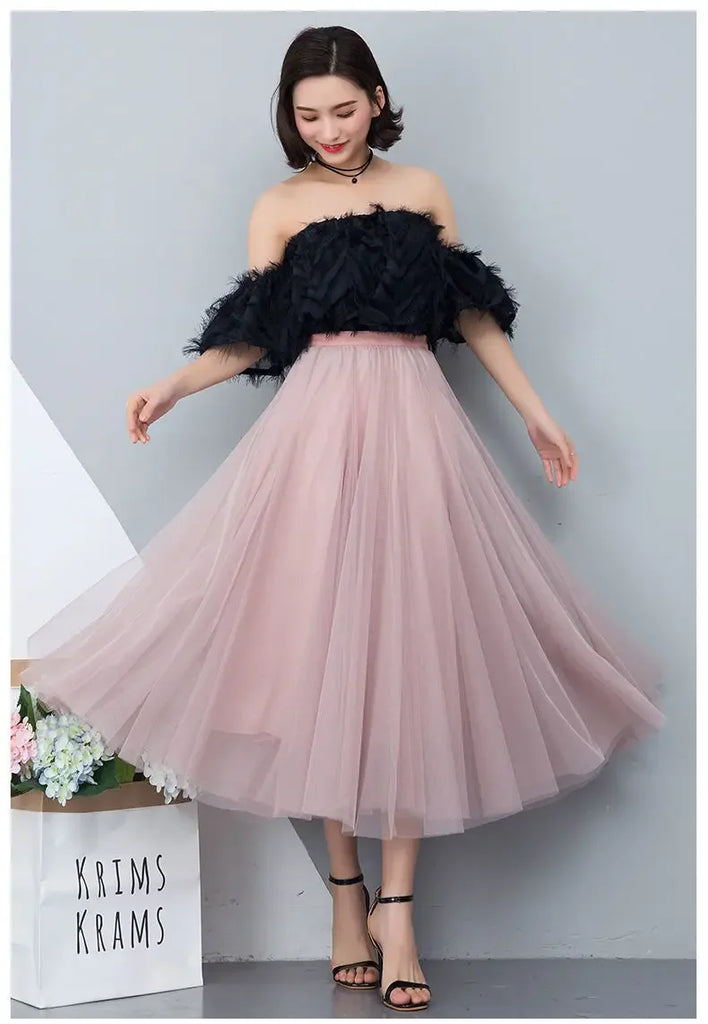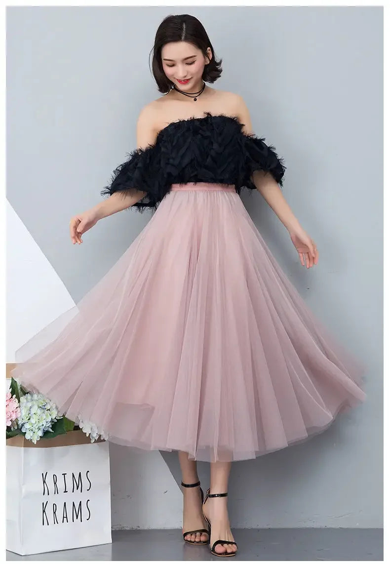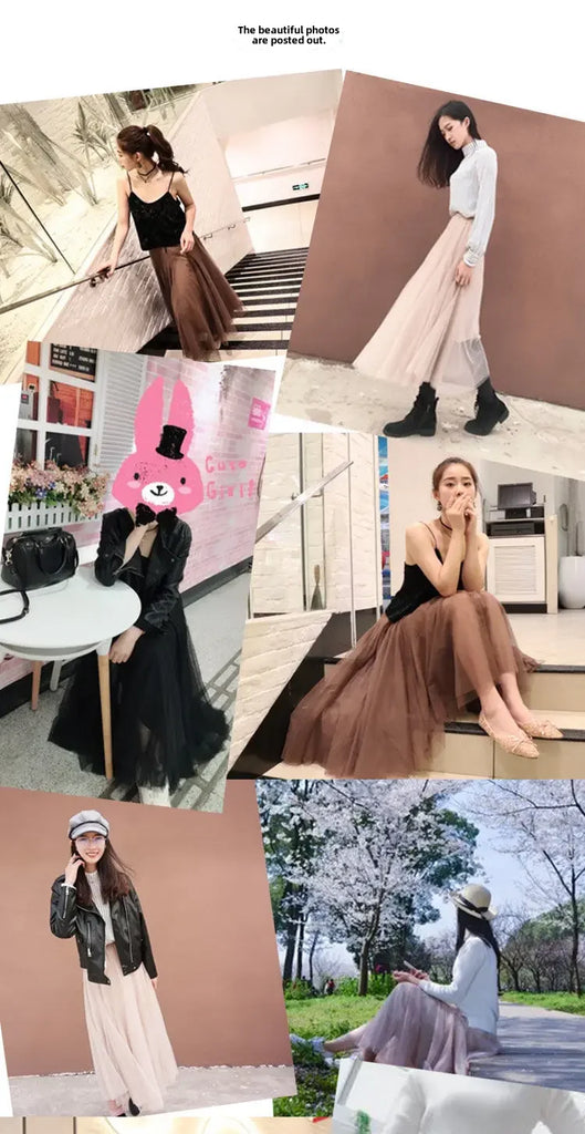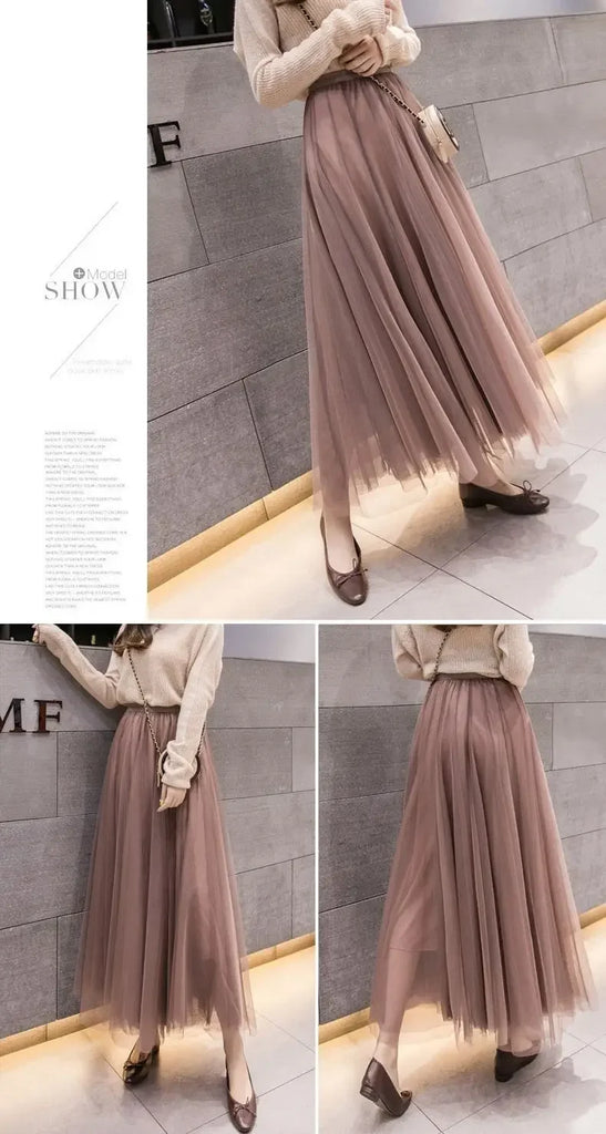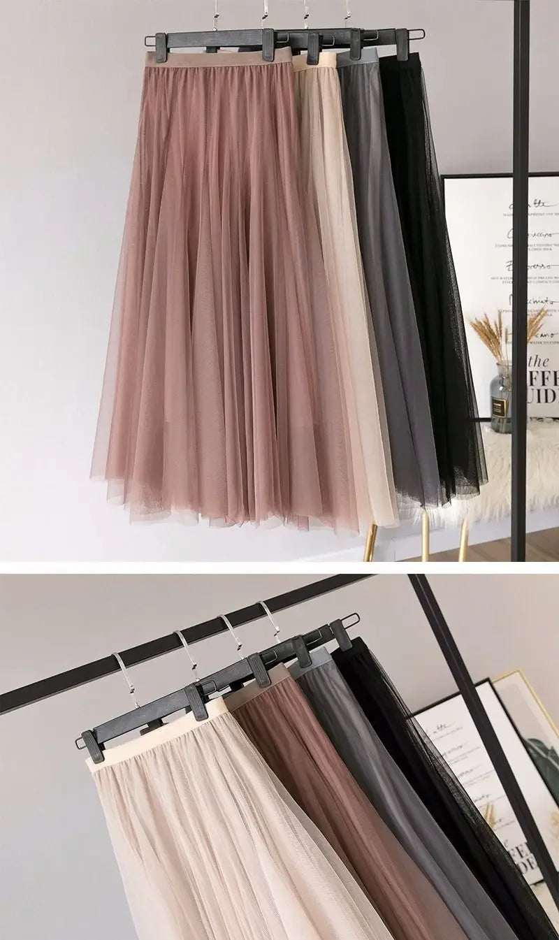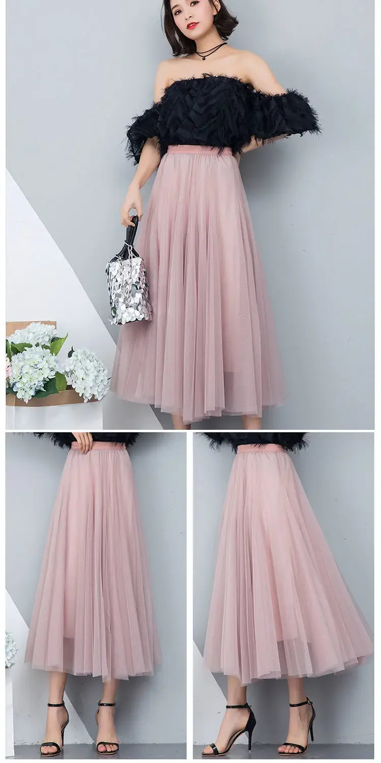 Elegant 720-Degree A-Line Mesh Skirt, High-Waisted, 10m Medium-Length, Slimming Dance Long Dress