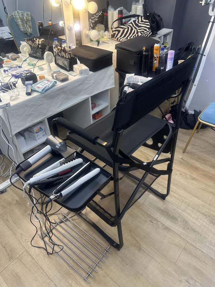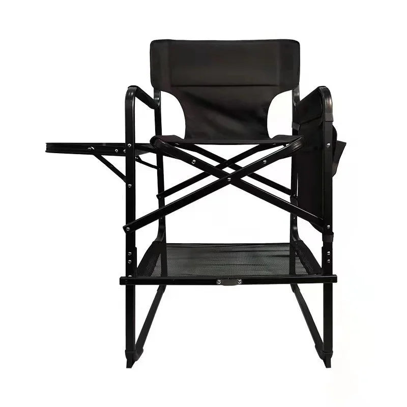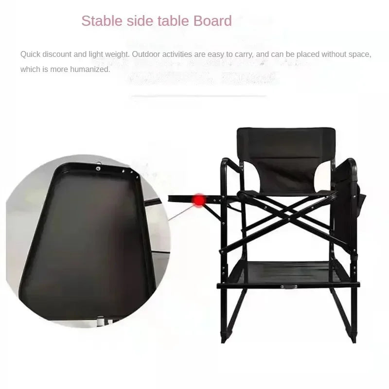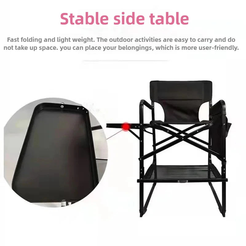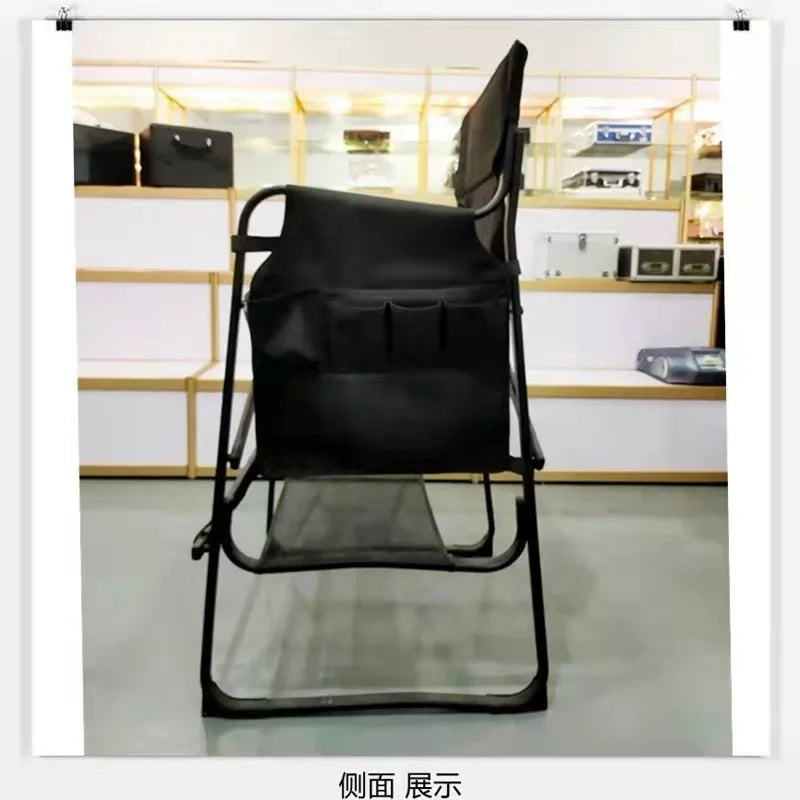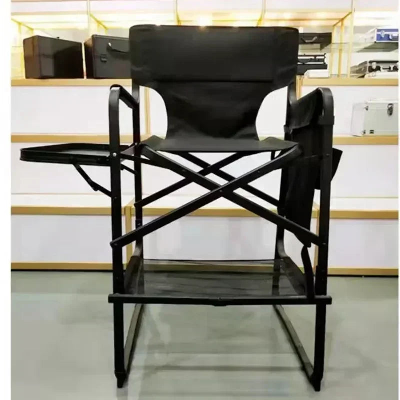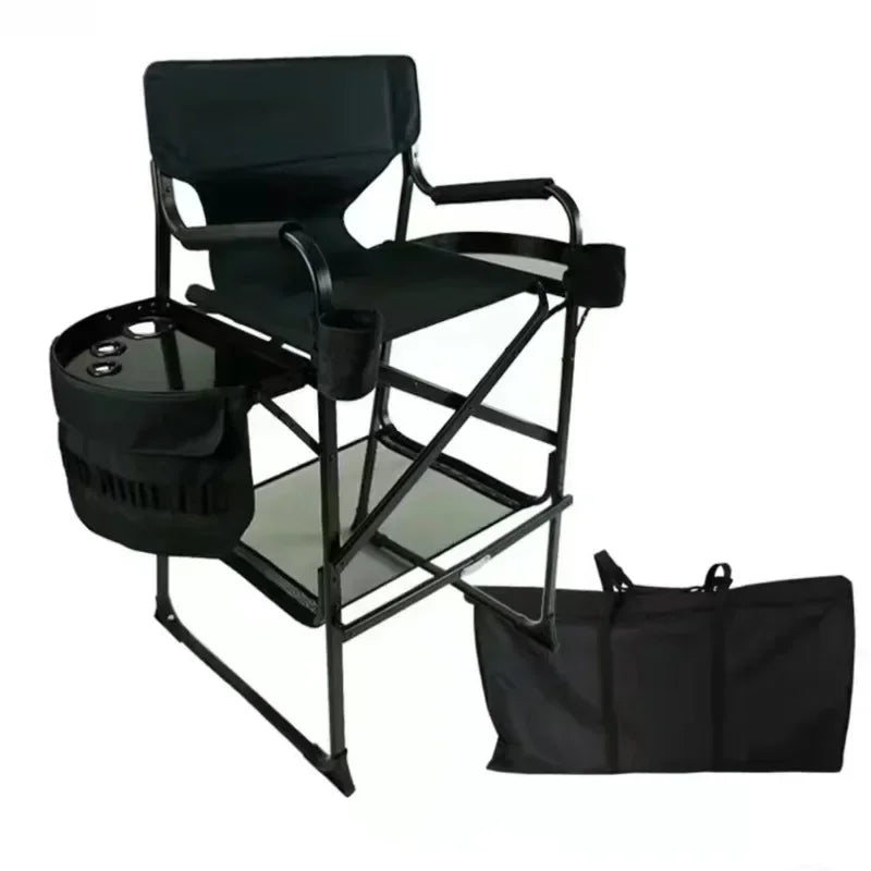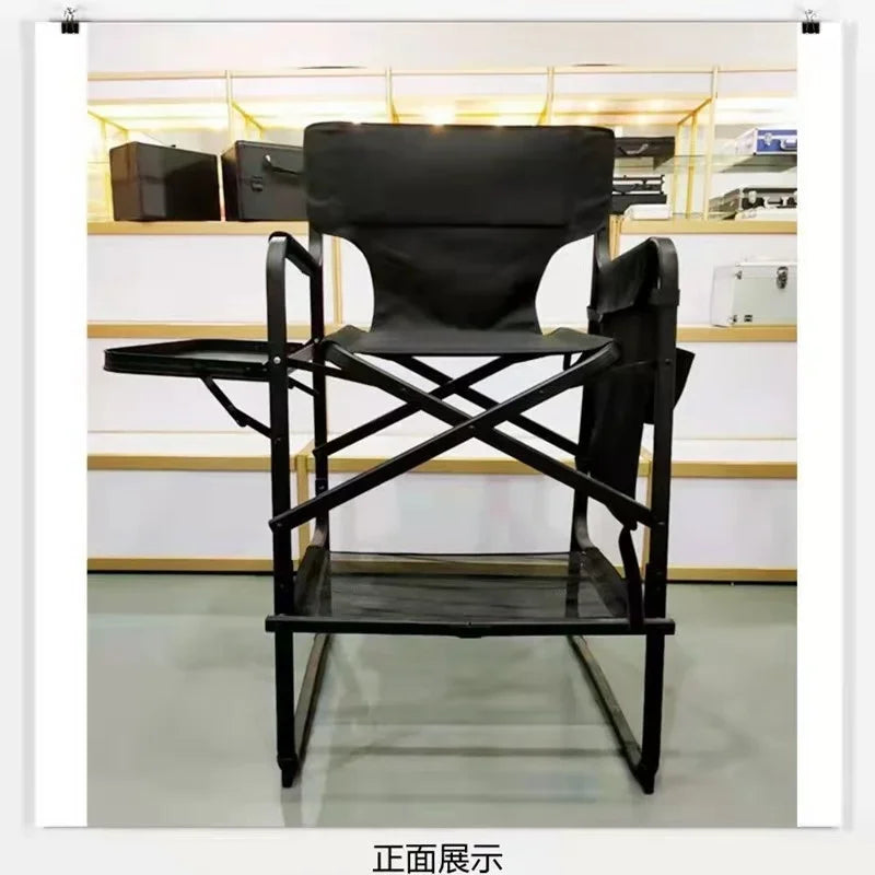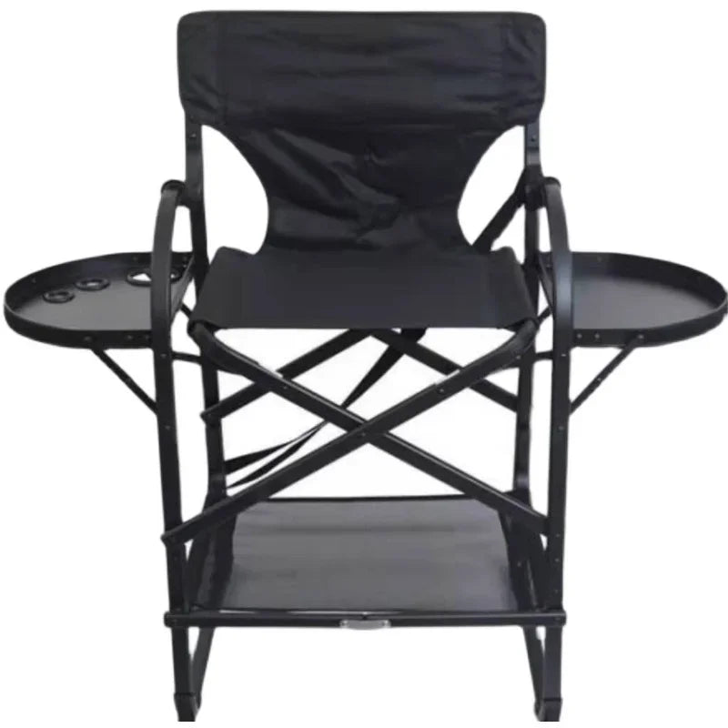 Black Aluminum Folding Makeup Chair - Portable Director's Seat for Outdoor Glamour