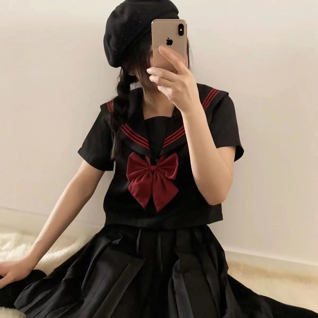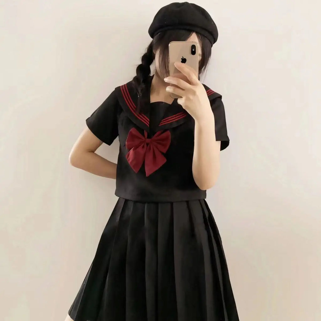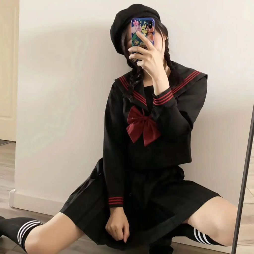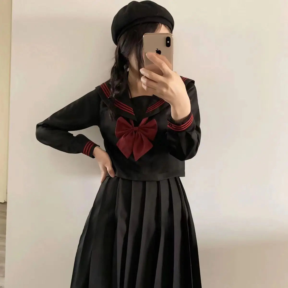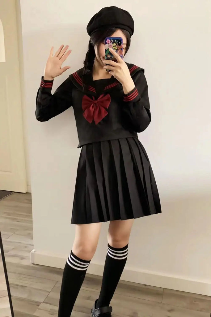 Black College Style Japanese Korean School Uniform JK Anime Cosplay Sailor Suit for Girls - Top & Skirt Set