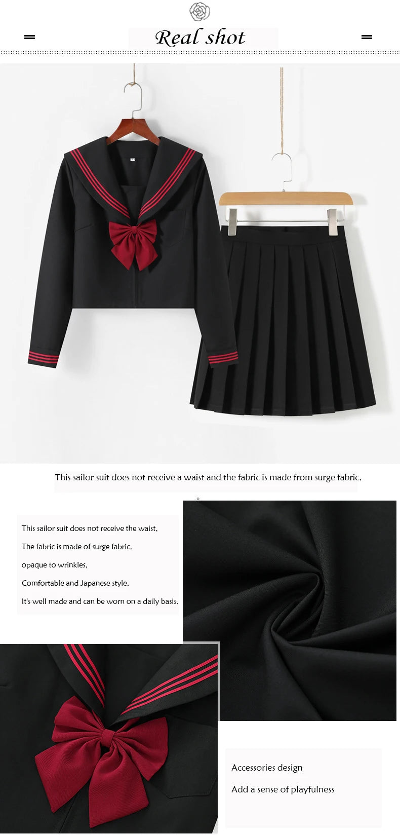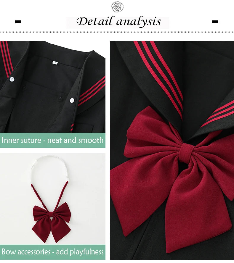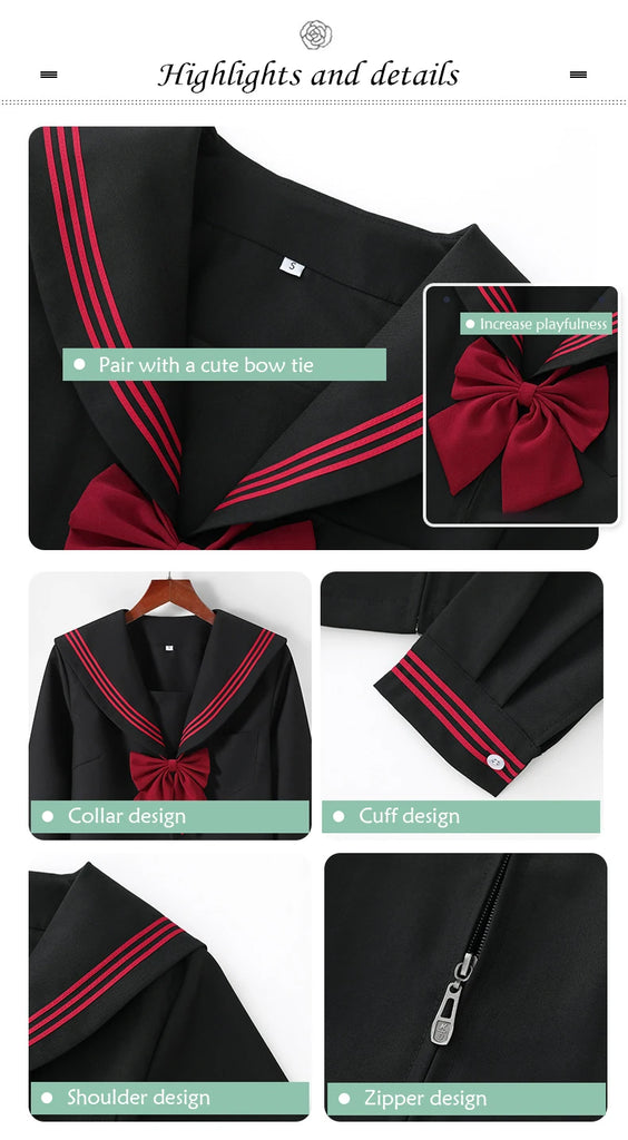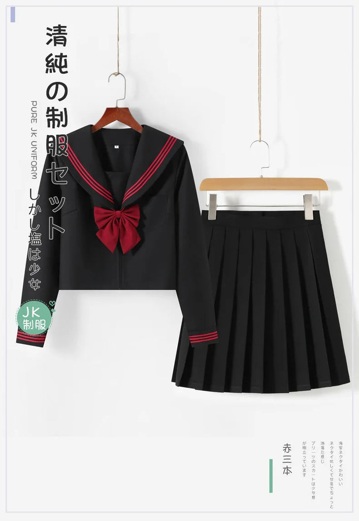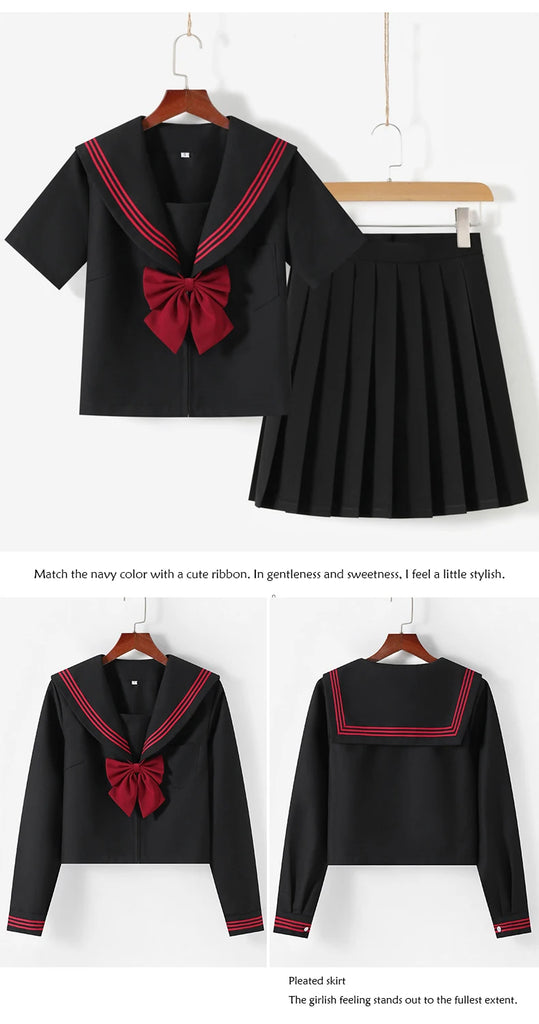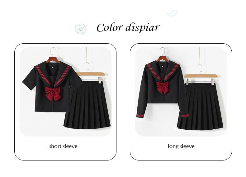 Black College Style Japanese Korean School Uniform JK Anime Cosplay Sailor Suit for Girls - Top & Skirt Set