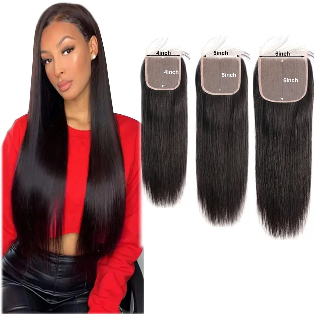 Black Brazilian Human Hair Lace Closure 4x4 5x5 6x6 Straight Transparent