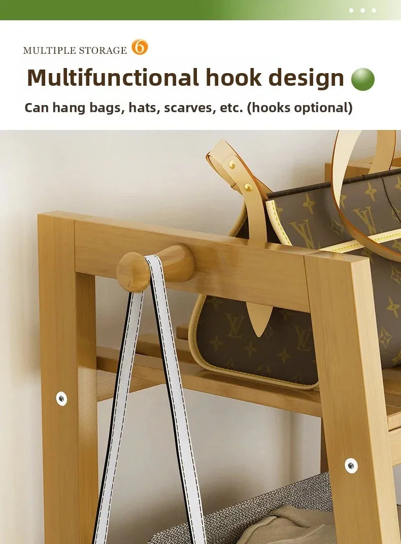 Equipped with eight hooks, it provides ample space for hanging coats, hats, and accessories, while the spacious bottom shelf adds extra storage for shoes or bags. Designed for simplicity, the easy assembly process ensures you'll have it ready in no time, perfect for those who appreciate both style and convenience.