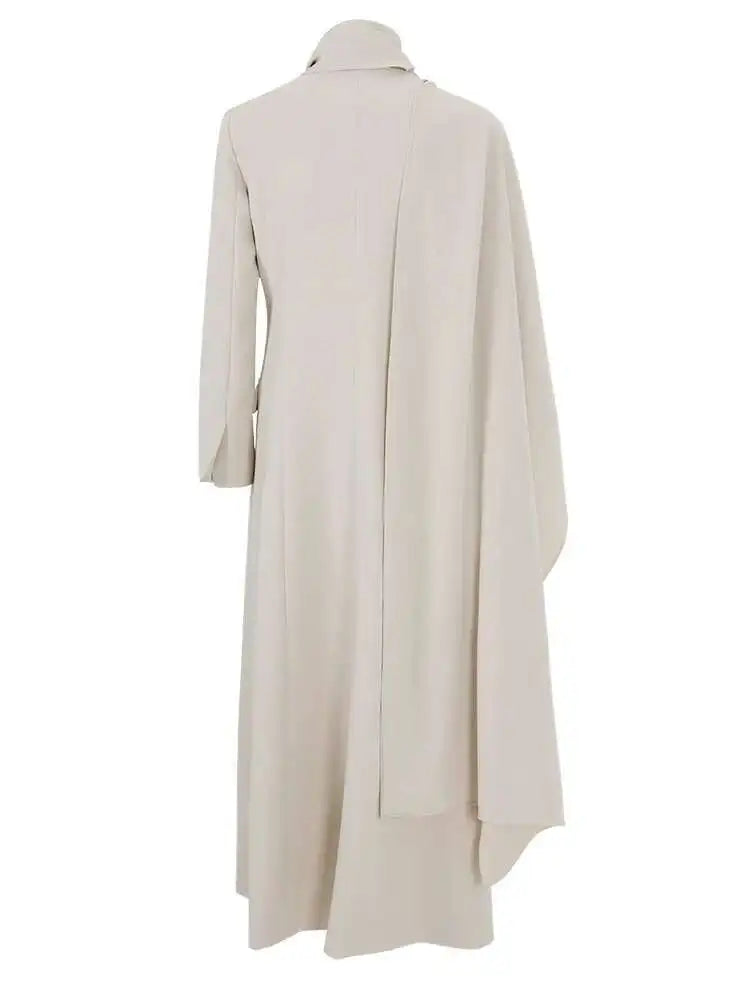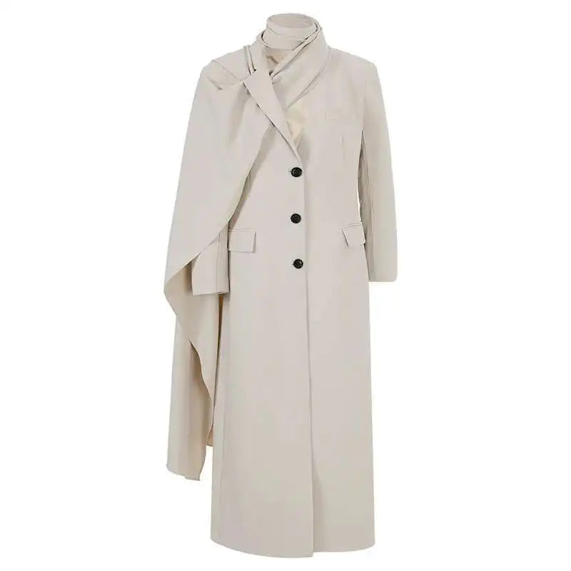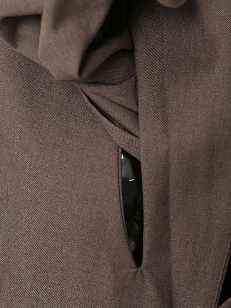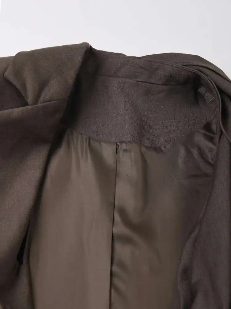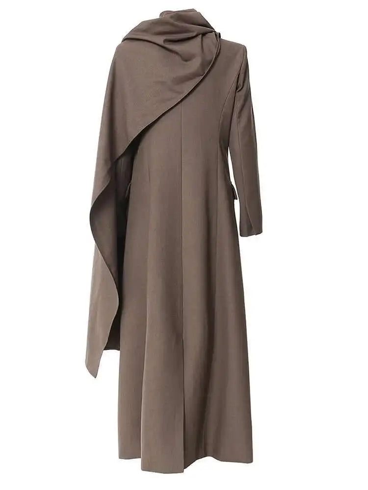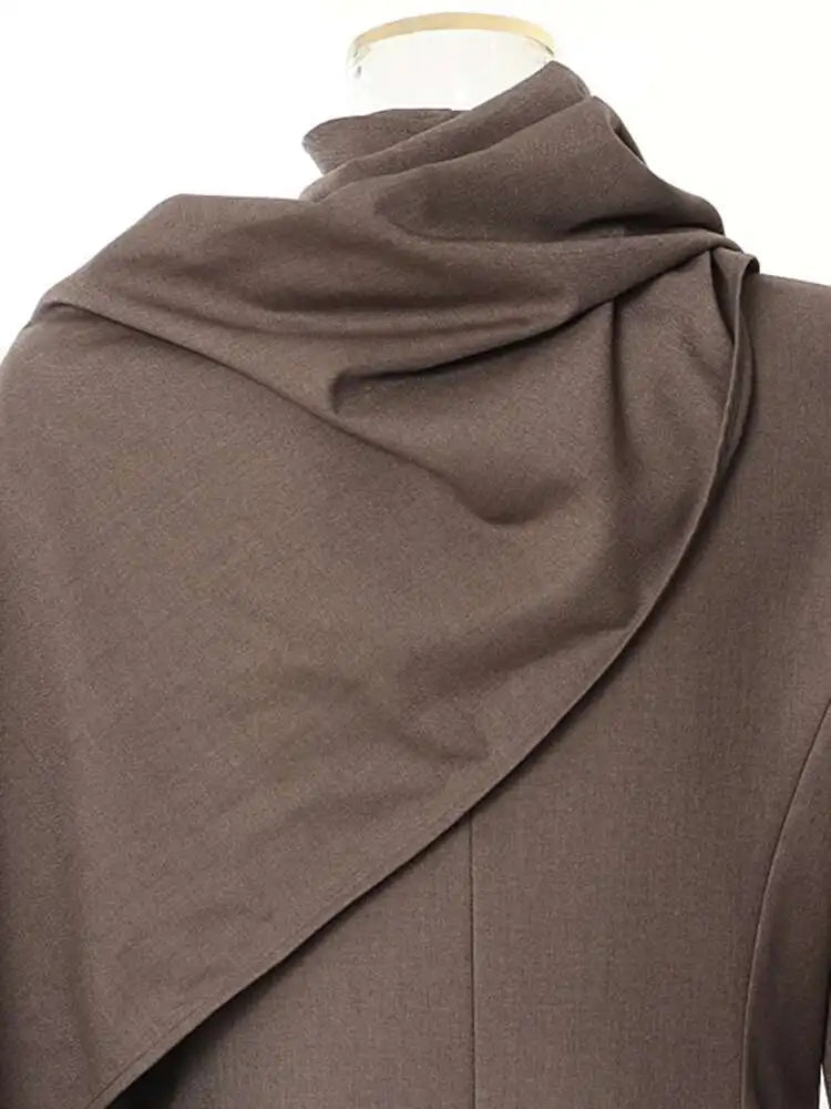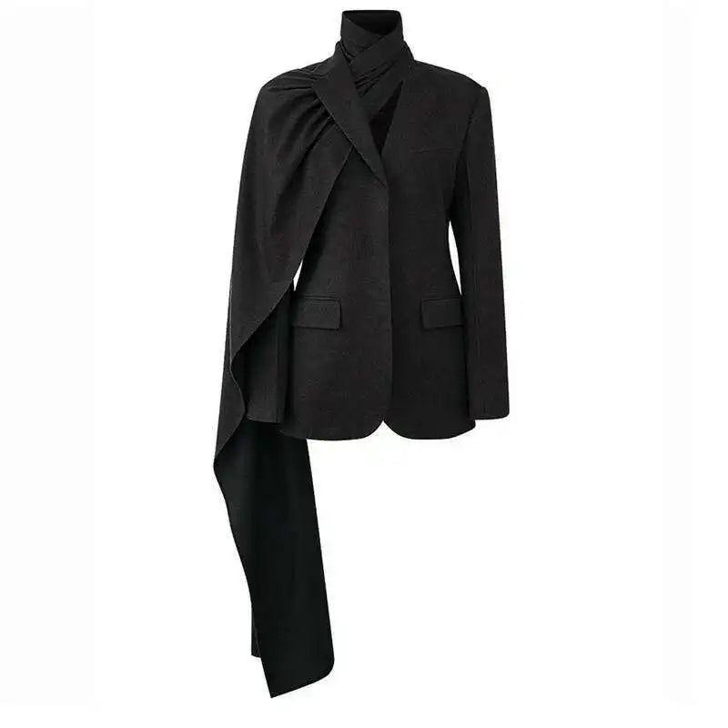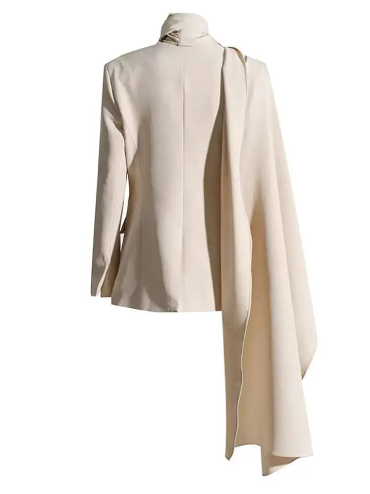 Elegant Women's Coffee Blazer with Irregular Scarf Lapel, Long Sleeve, Loose Fit for Spring/Autumn Fashion 2024