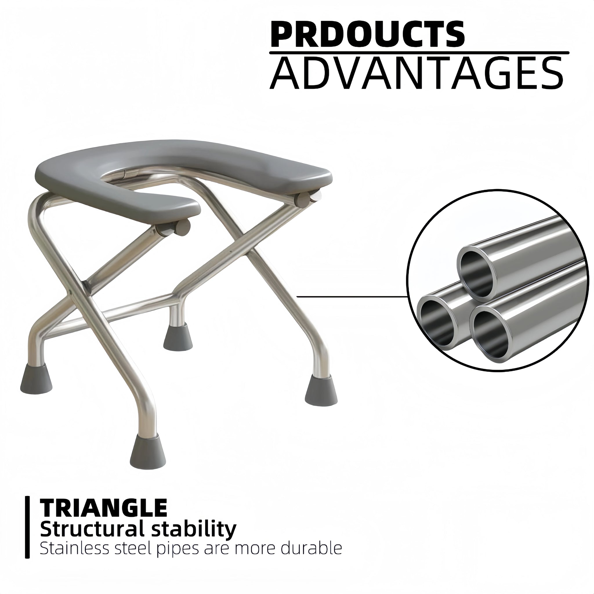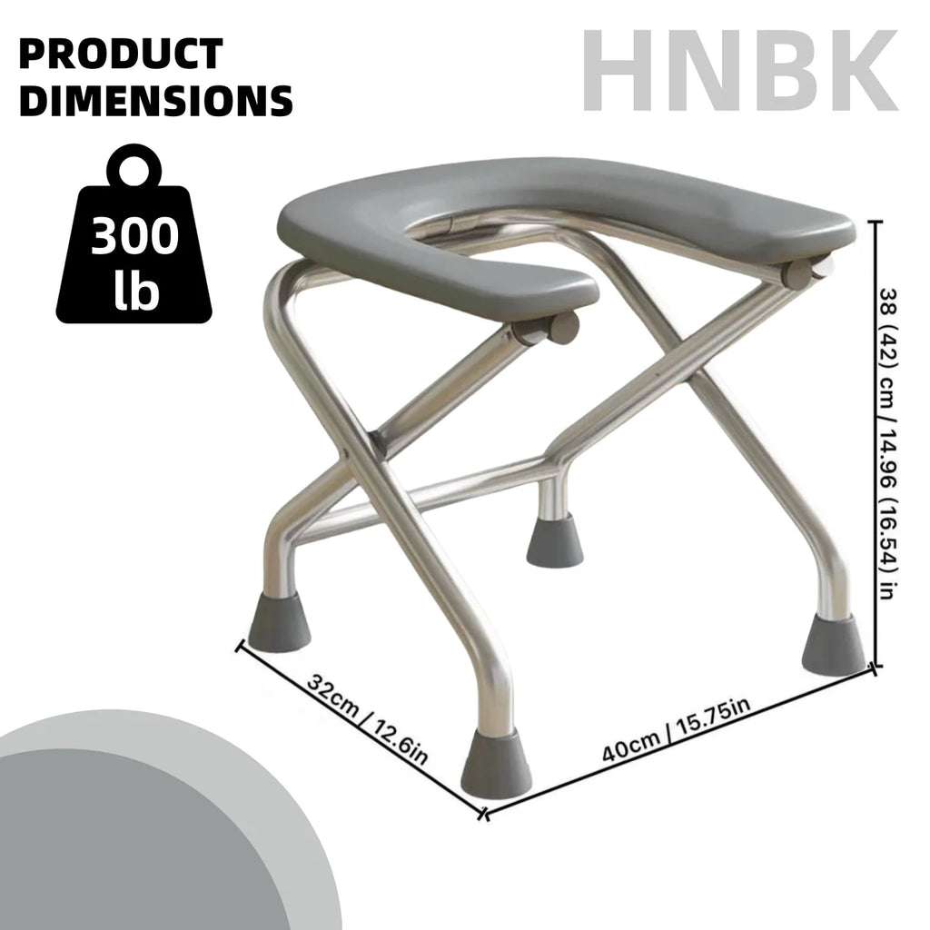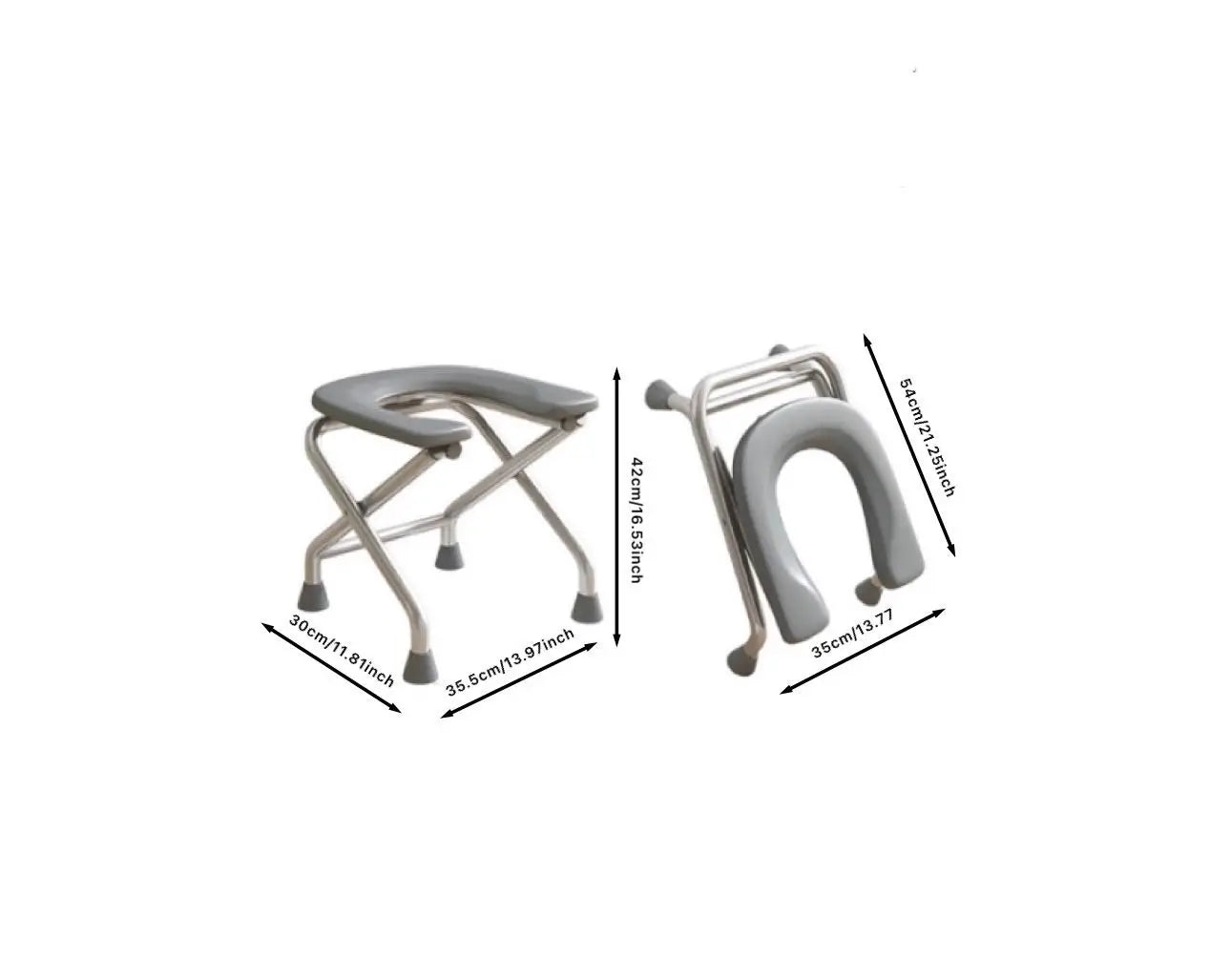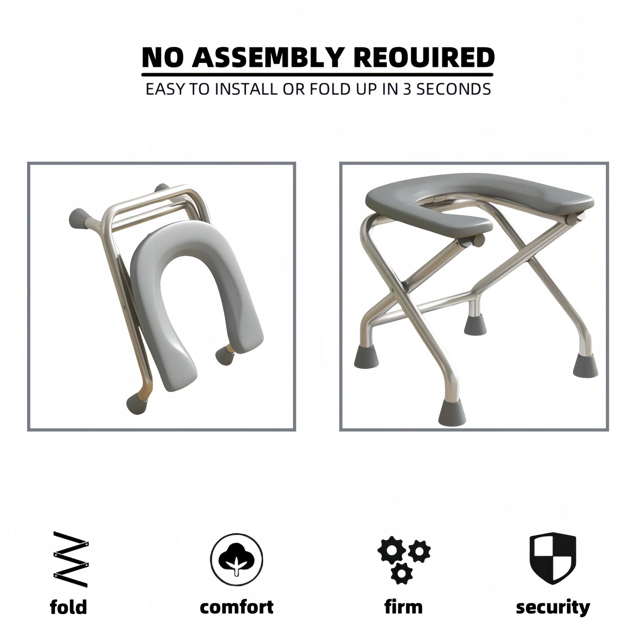 Foldable U-Shaped Toilet Chair, 300 lb Capacity, Stainless Steel, Portable & Easy to Clean, Ideal for Elderly & Pregnant, Bath Stool Use