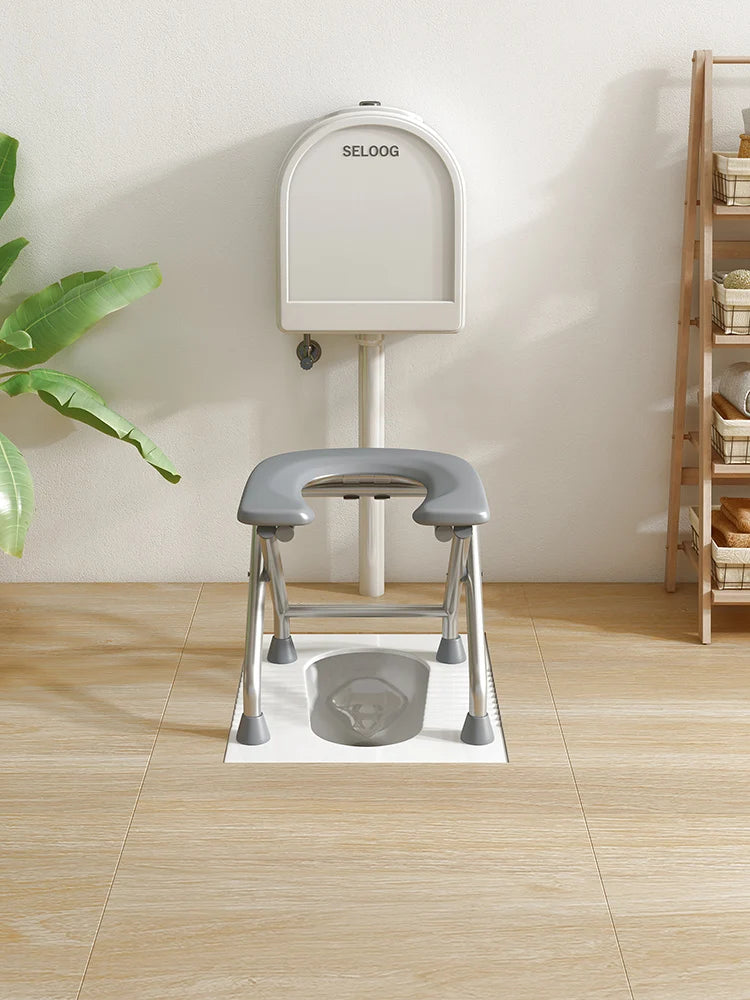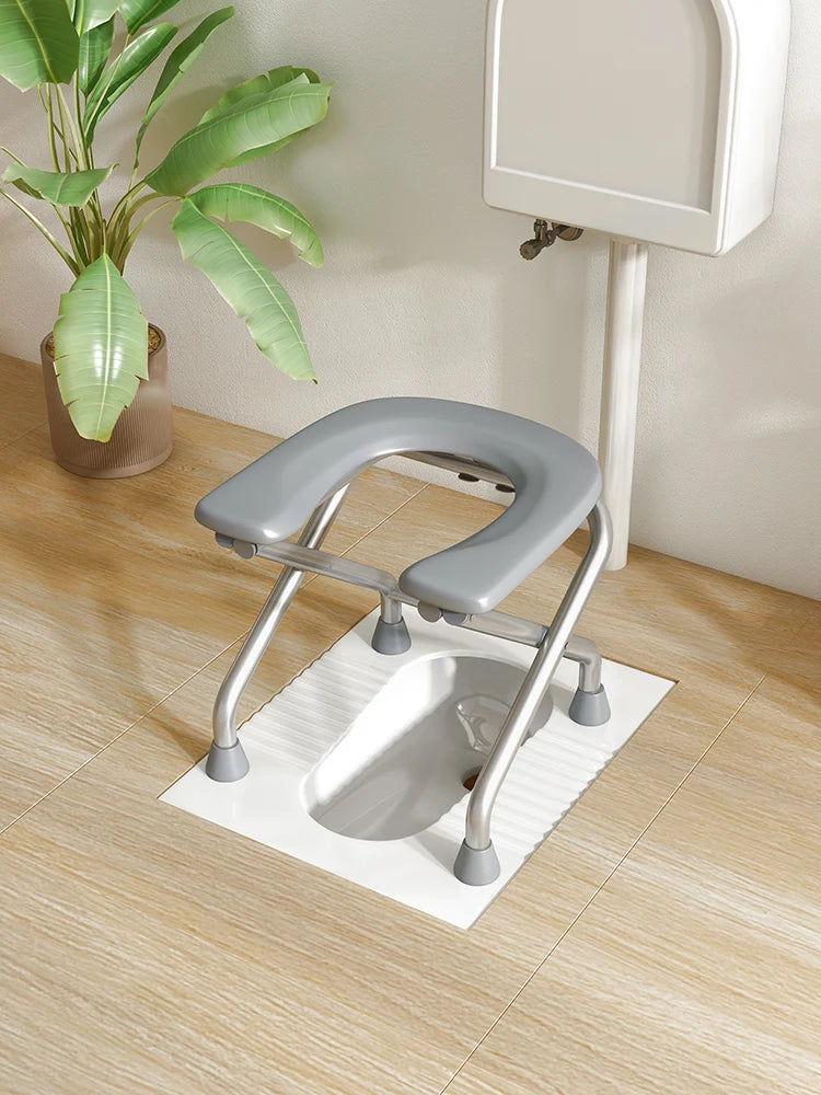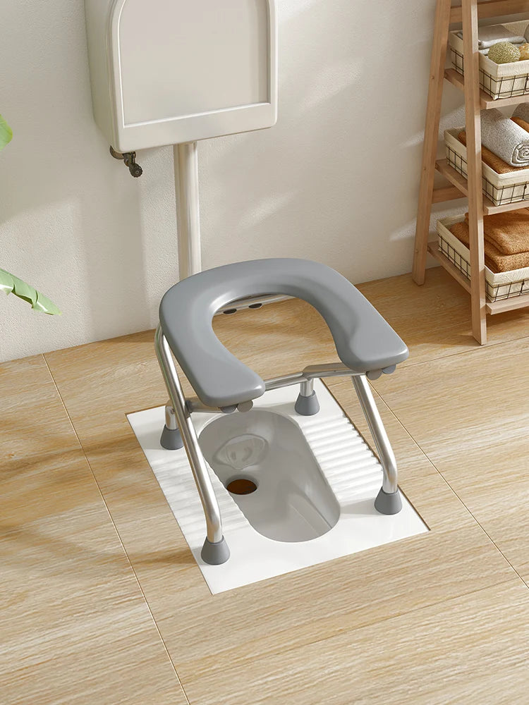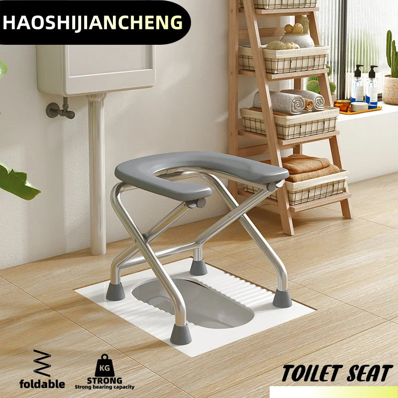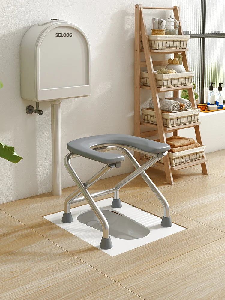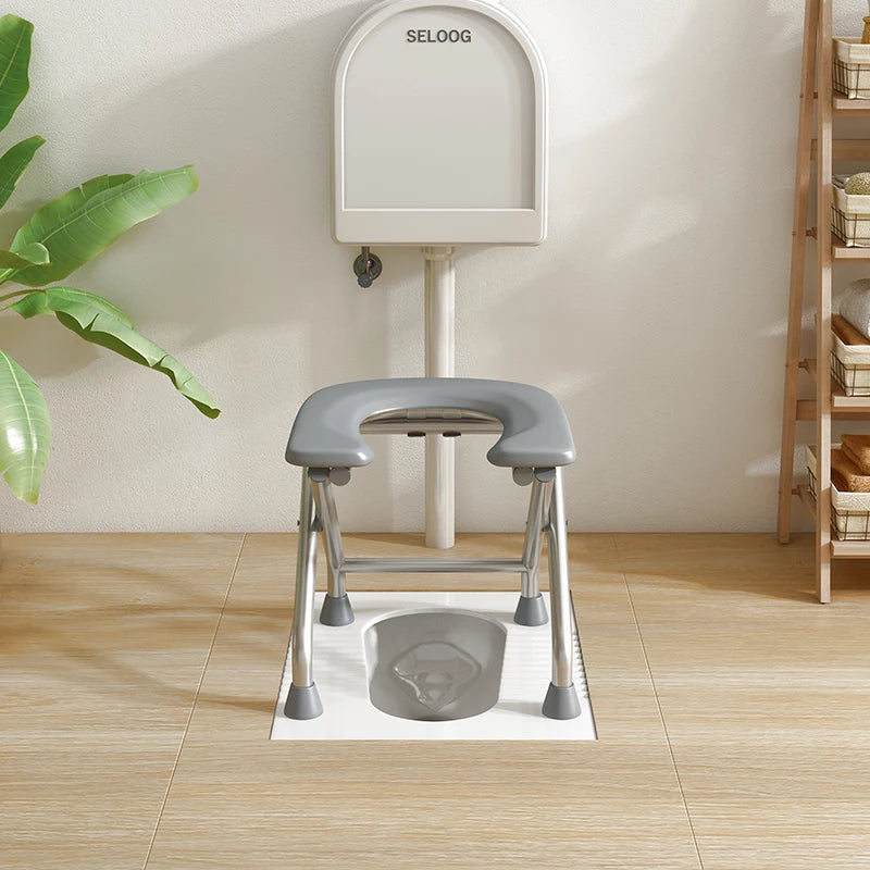 Foldable U-Shaped Toilet Chair, 300 lb Capacity, Stainless Steel, Portable & Easy to Clean, Ideal for Elderly & Pregnant, Bath Stool Use