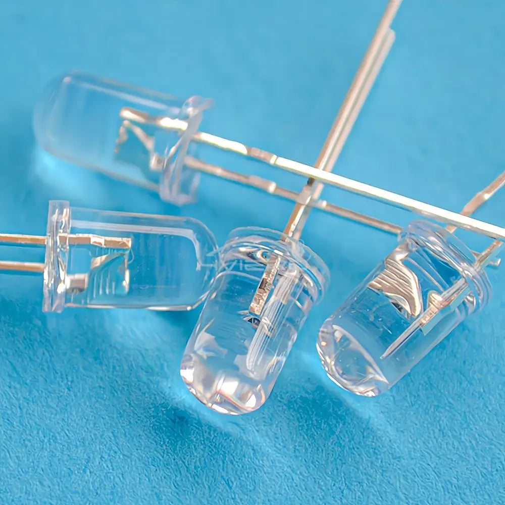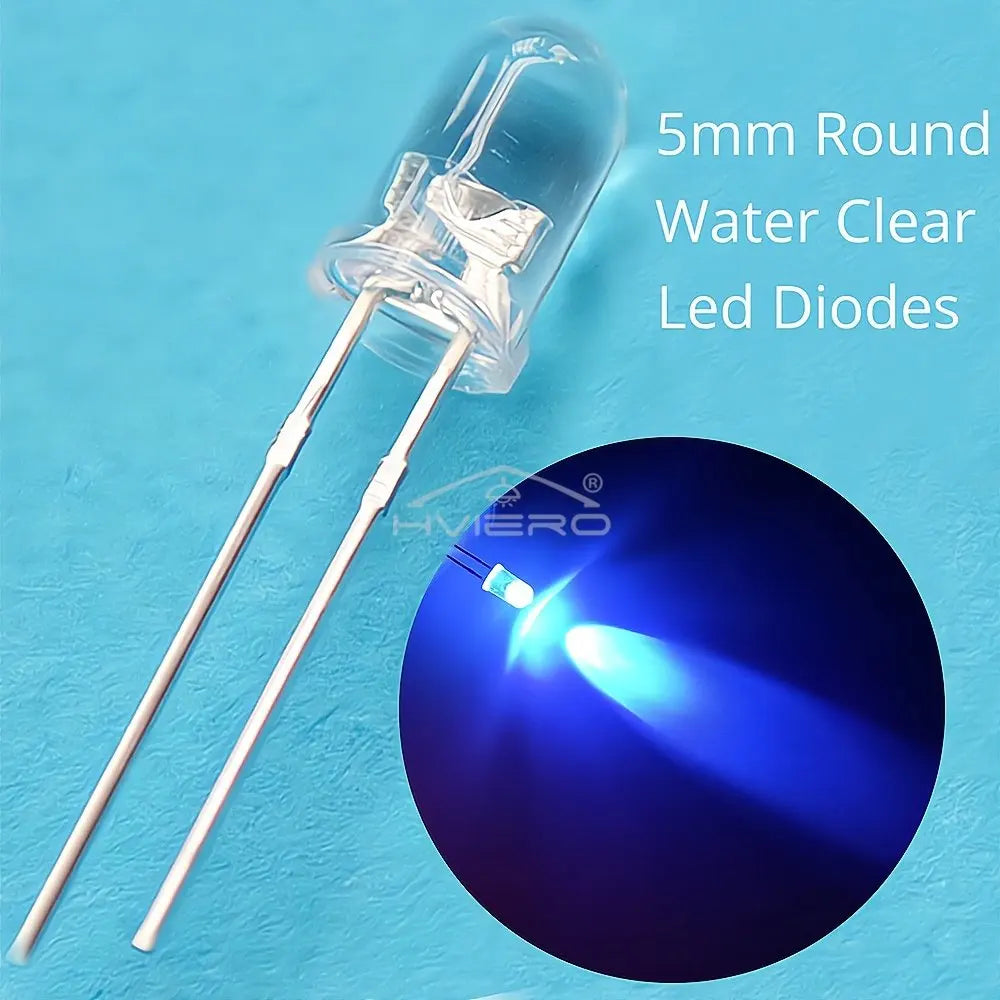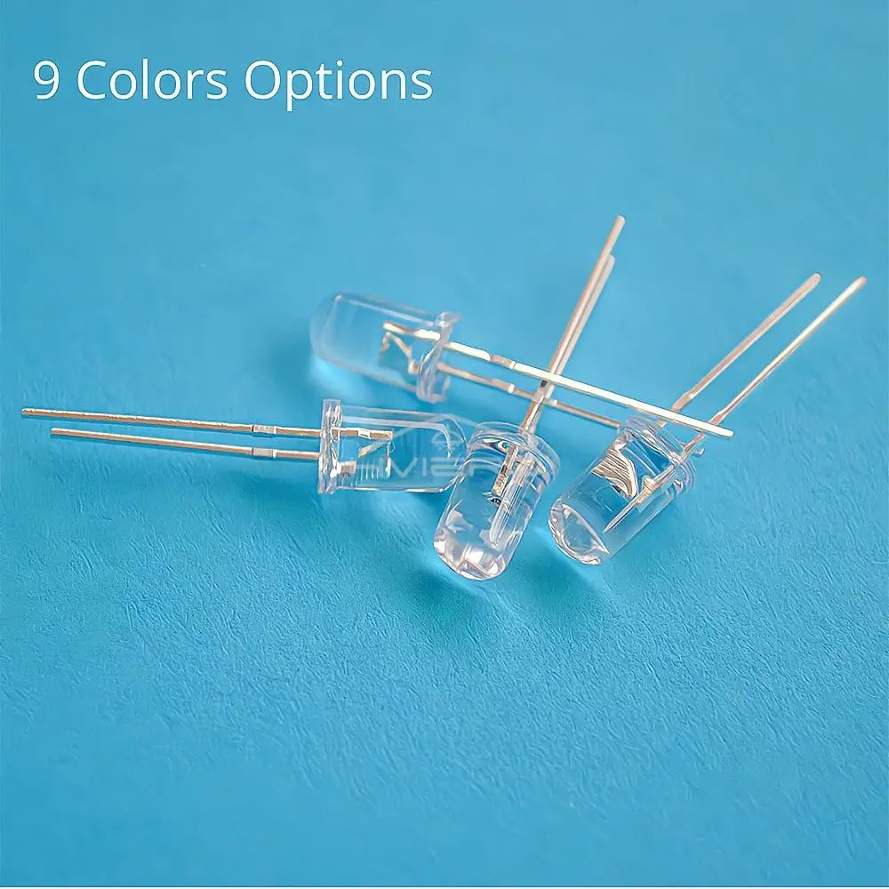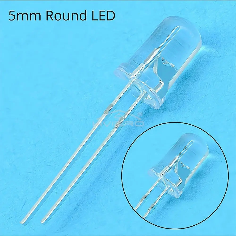 Illuminate your projects with these 5mm Round Super Bright LEDs, offered in a variety of vibrant colors: white, red, blue, yellow, and green. These LEDs are crafted for superior brightness and efficiency, making them perfect for everything from artistic installations to practical lighting solutions. Their compact size and robust durability ensure they meet the demands of any application, whether it’s for decorative uses, torches, toys, car decorations, or signal indicators.