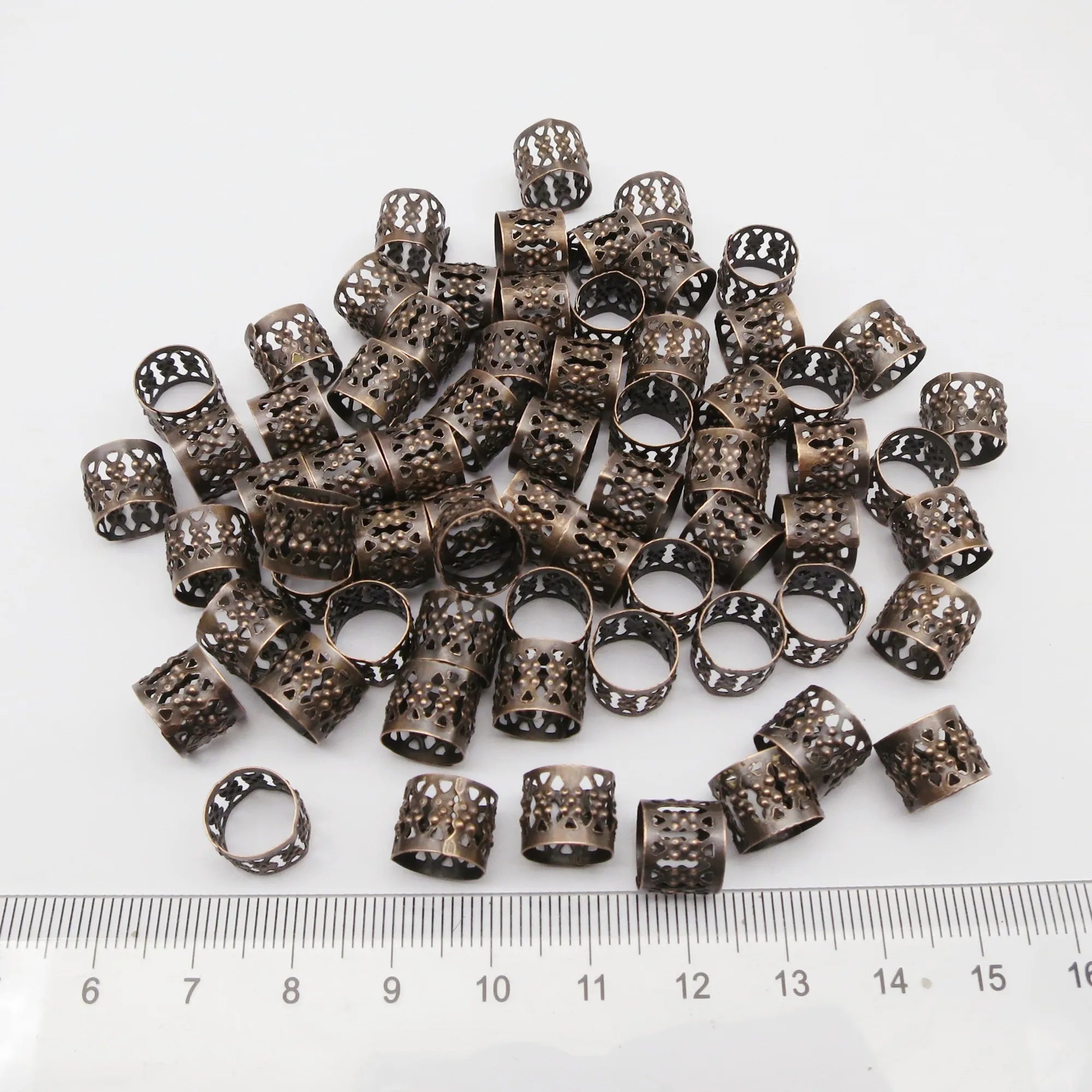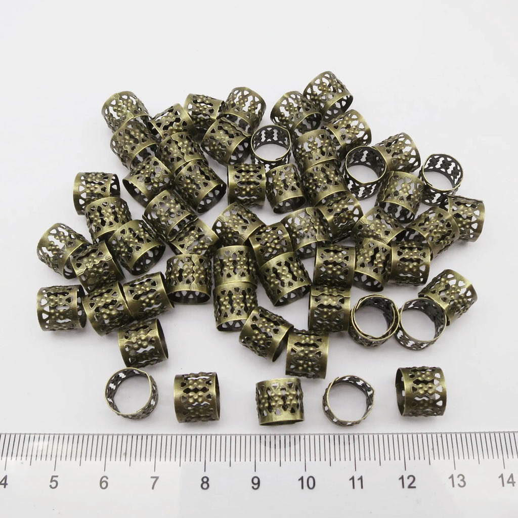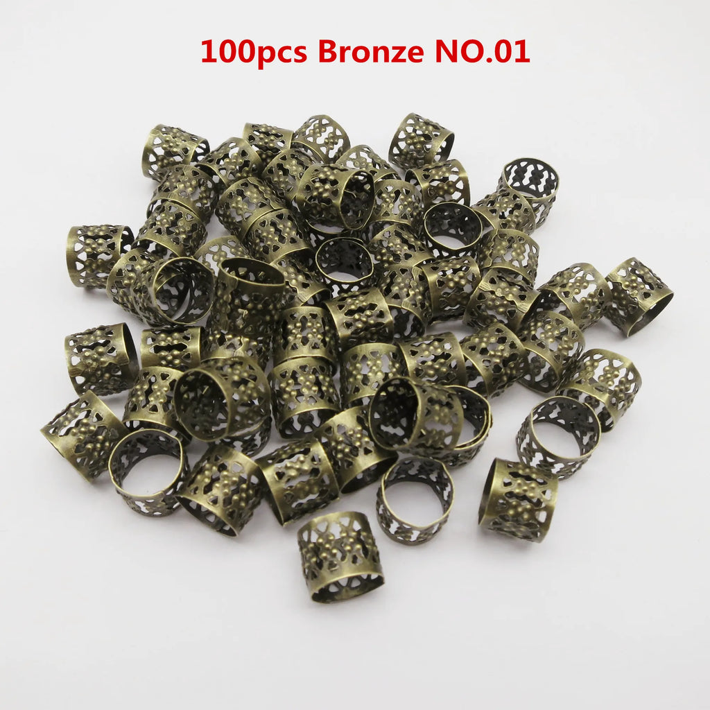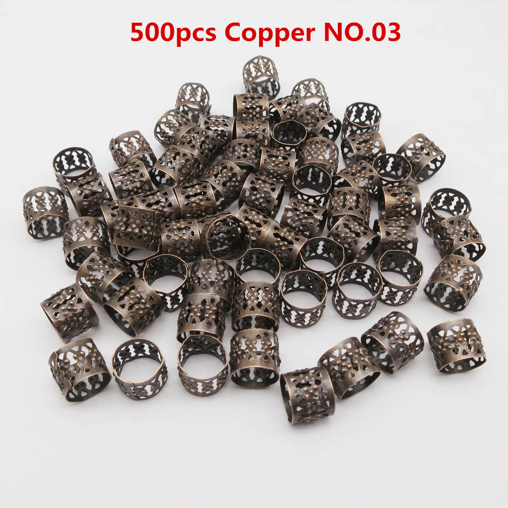 Enhance your style with these versatile bronze and copper micro adjustable hair accessories. Perfect for braids, dreadlocks, and other creative hairstyles, these cuffs, clips, rings, and tubes offer a unique touch to your look. Crafted from durable metal, they ensure long-lasting wear. With a range of 100 to 500 pieces, you have plenty to customize and experiment with different styles.