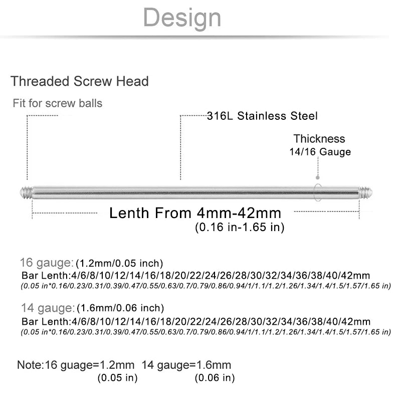 10pcs Surgical Steel Tongue Barbell Piercing Set 4-42mm 14/16g - Ear Helix Jewelry Replacement Accessories