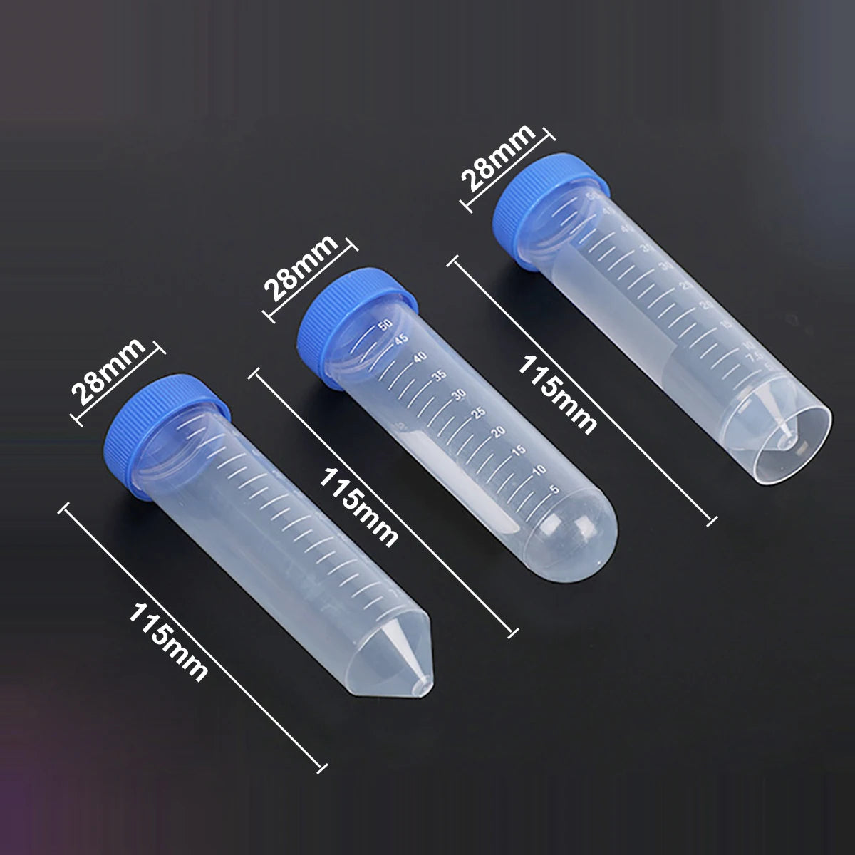 10pcs 50ml Centrifuge Tubes Screw Cap Flat/Round/Pointed Bottom Lab Vial Sample Containers