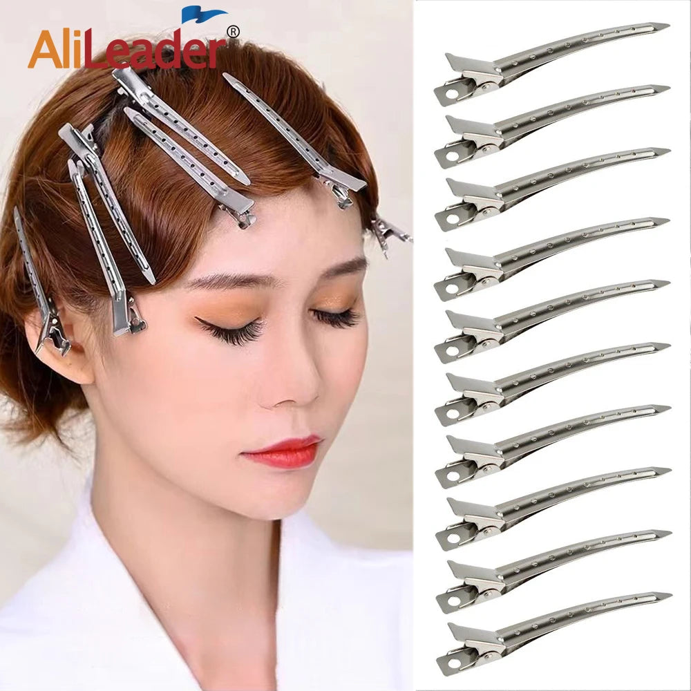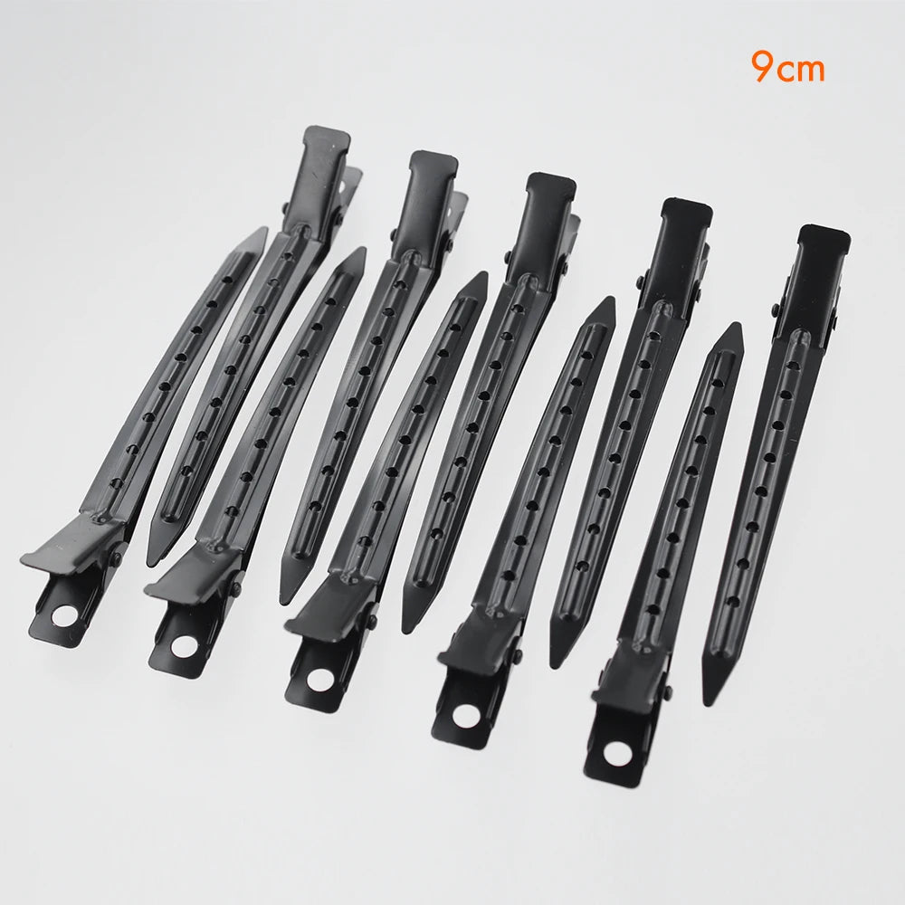 10pcs Black Metal Duckbill Hair Clips Gold Prong Alligator Sectioning Styling Clips