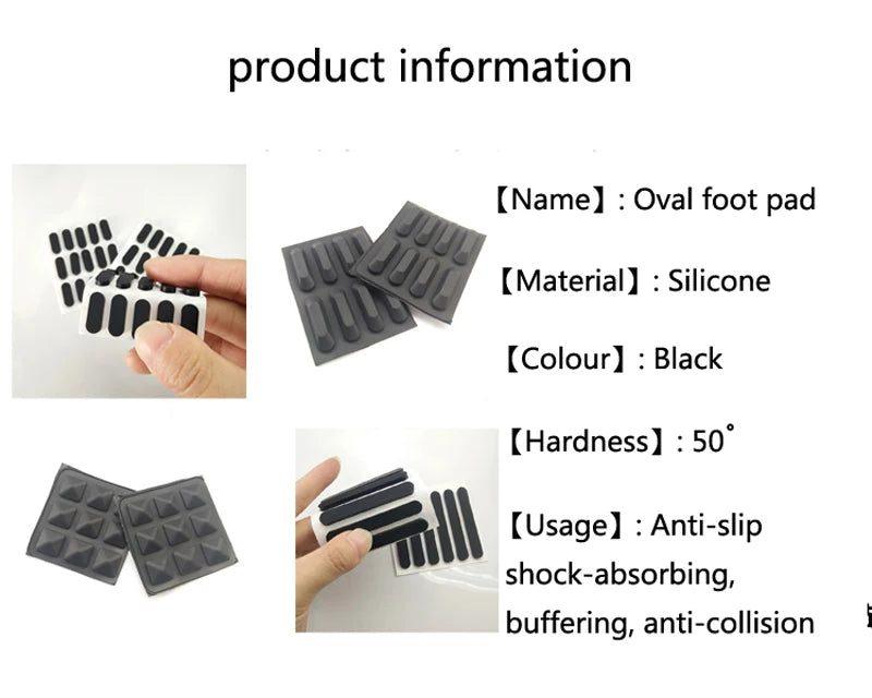 10pcs Black Oval Silicone Rubber Feet, Self-adhesive Shock-absorbing Non-slip Pads, 9mm Width, Ideal for Notebooks, Direct from Factory