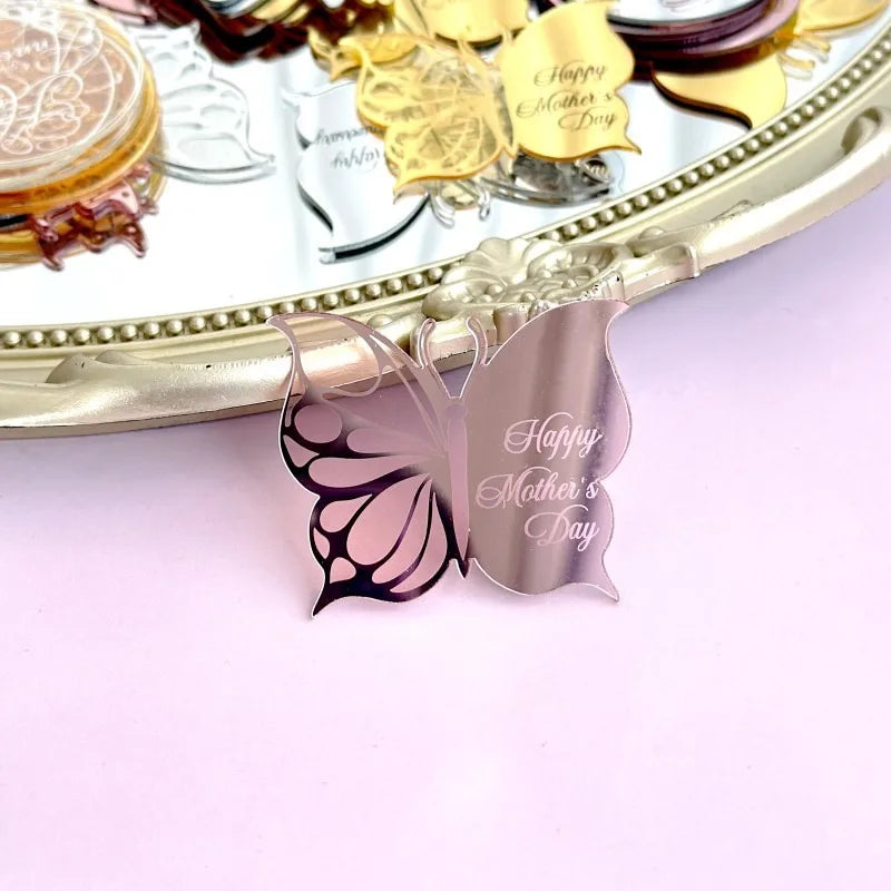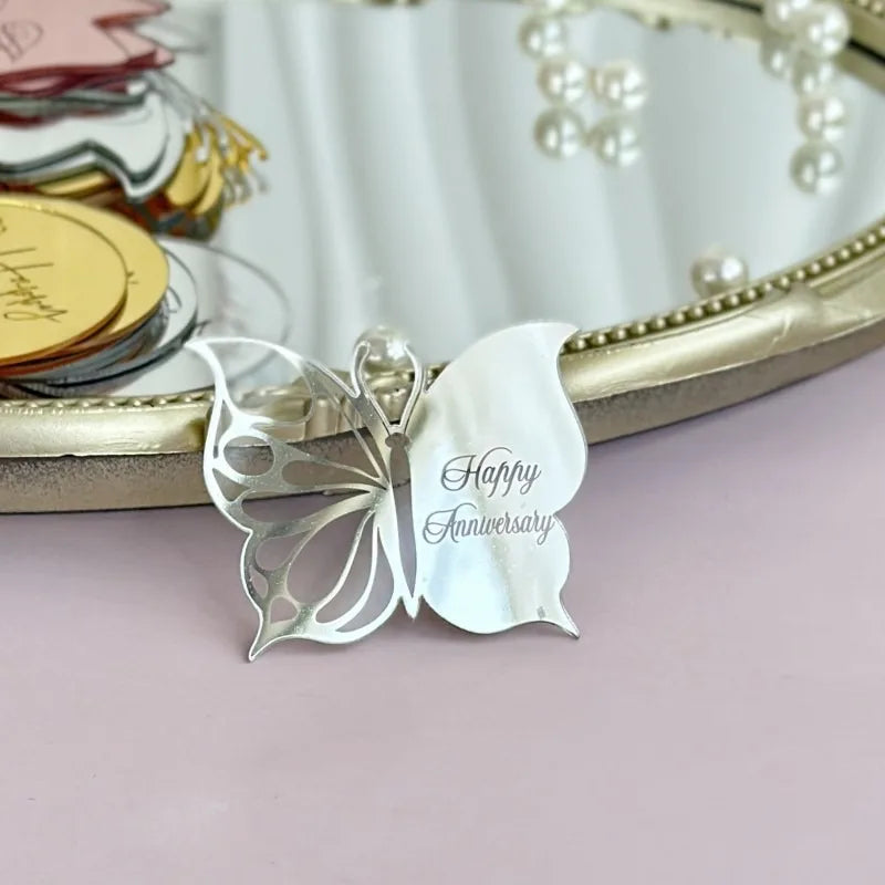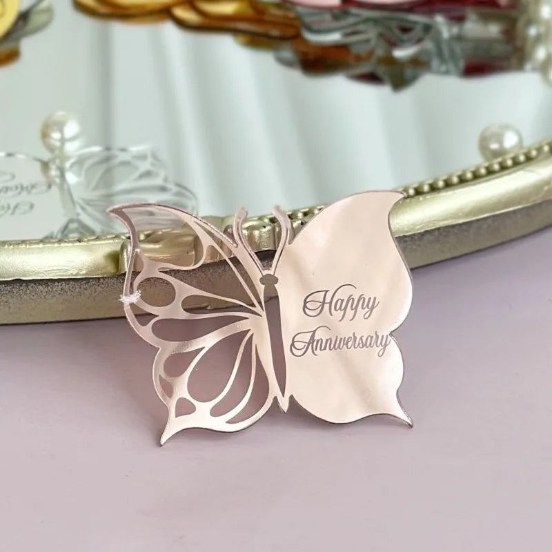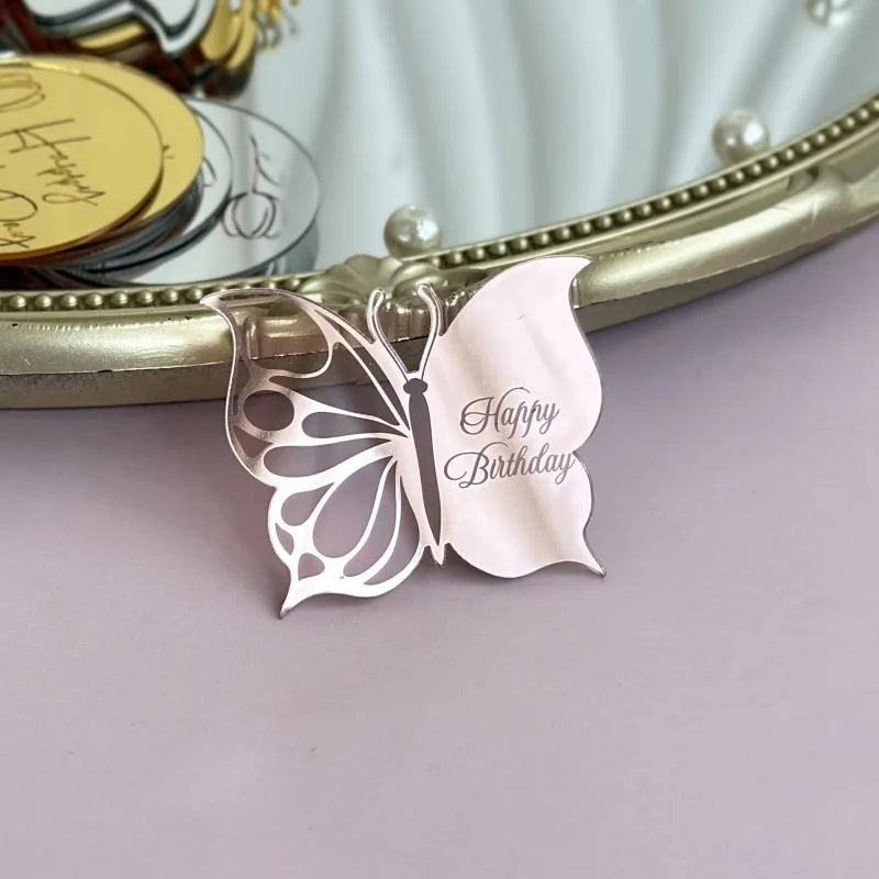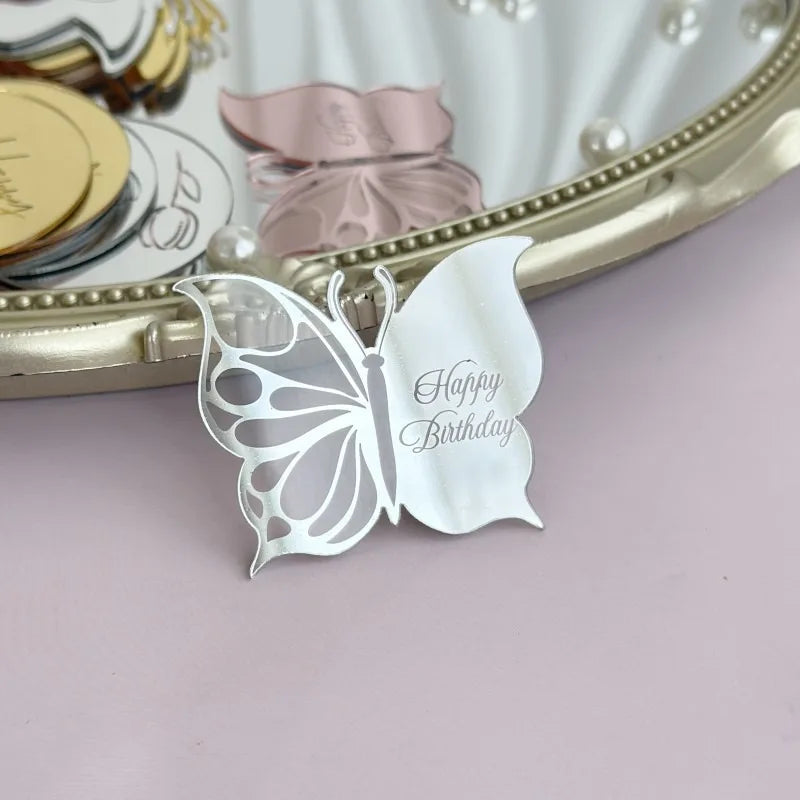 Elevate your celebrations with our elegant butterfly cake toppers, ideal for adding sophistication and sparkle to any occasion. Crafted from premium mirror acrylic, these toppers transform cakes and desserts into stunning centerpieces. Perfect for weddings, engagements, birthdays, Mother's Day, anniversaries, and even as photo booth backdrops, they're a must-have for memorable events.
