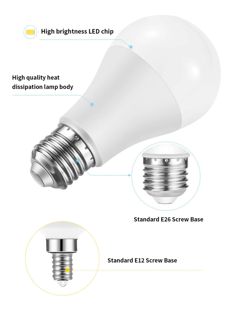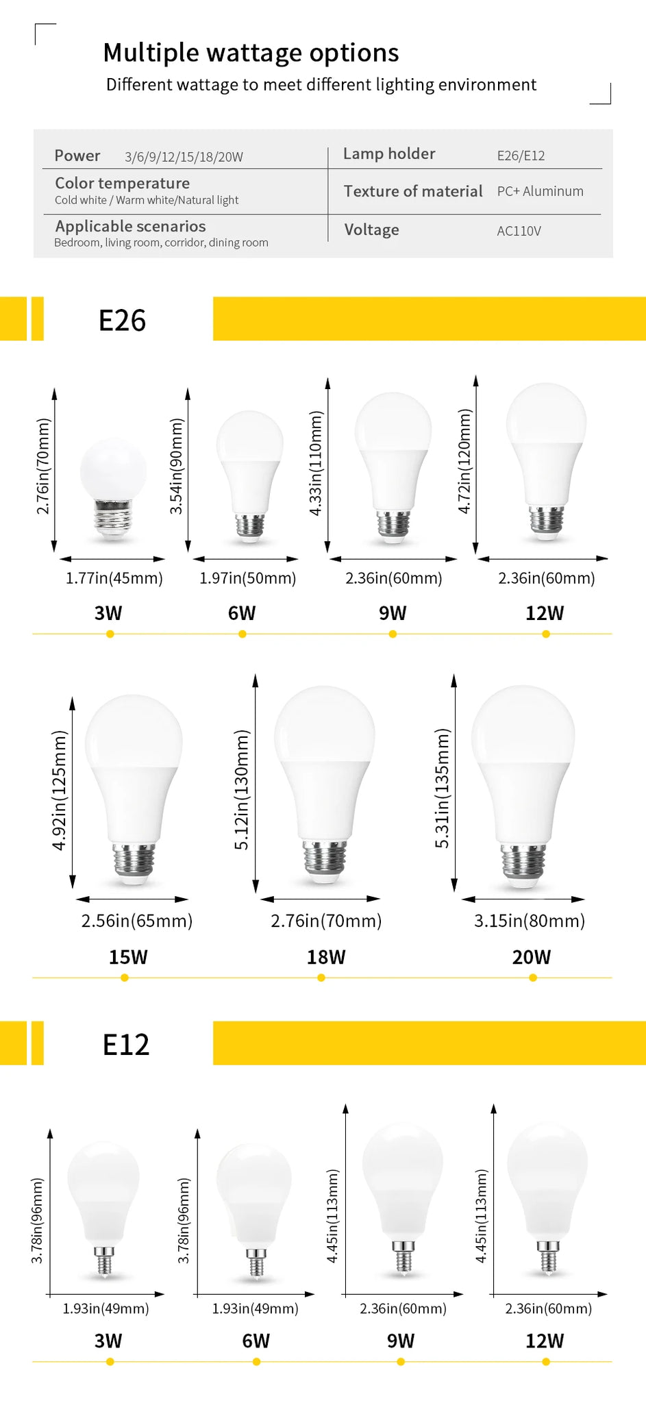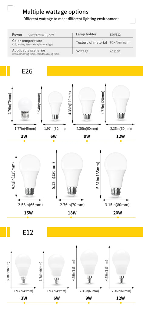 10pcs LED Bulbs E26/E12 3W-20W 3000K/4000K/6000K High Lumen for Home & Office Lighting