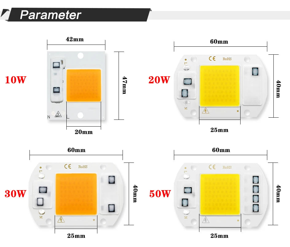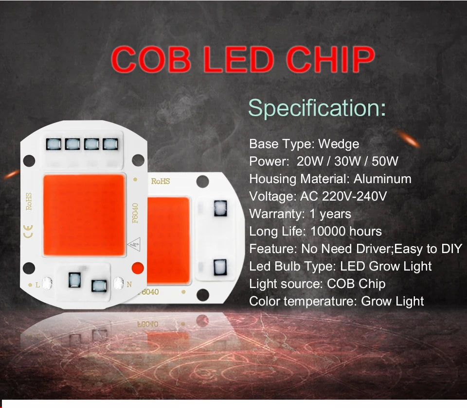 10pcs LED COB Lamp Bead AC 110V/220V Driverless DIY Flood Light & Full Spectrum Plant Growth Bulb