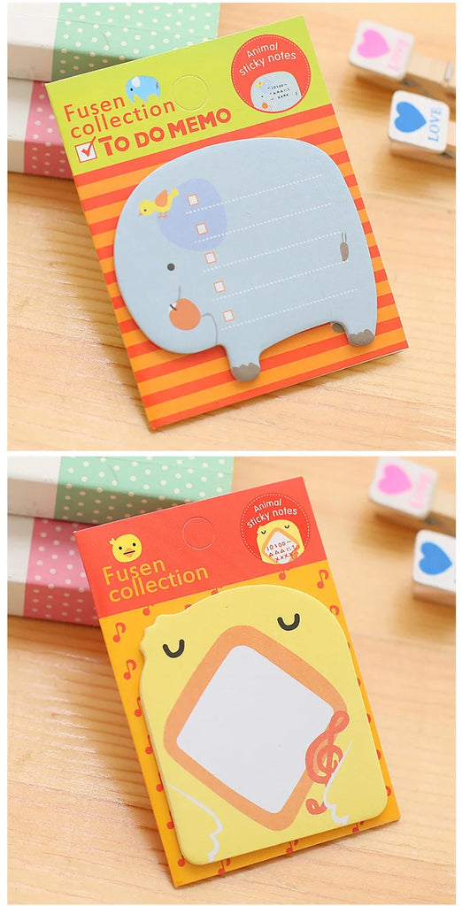 10pcs Cute Cartoon Animal Sticky Notes Notepad Memo Pads for School Office Supplies