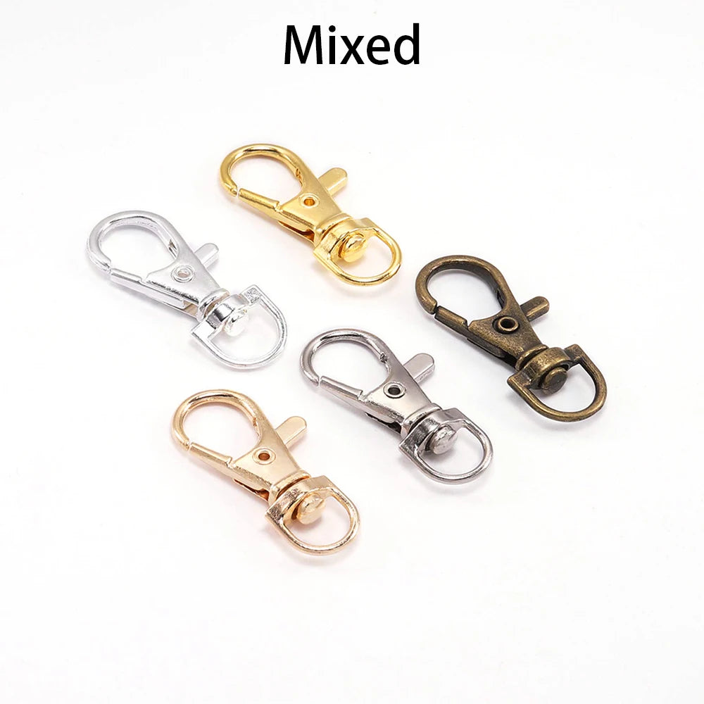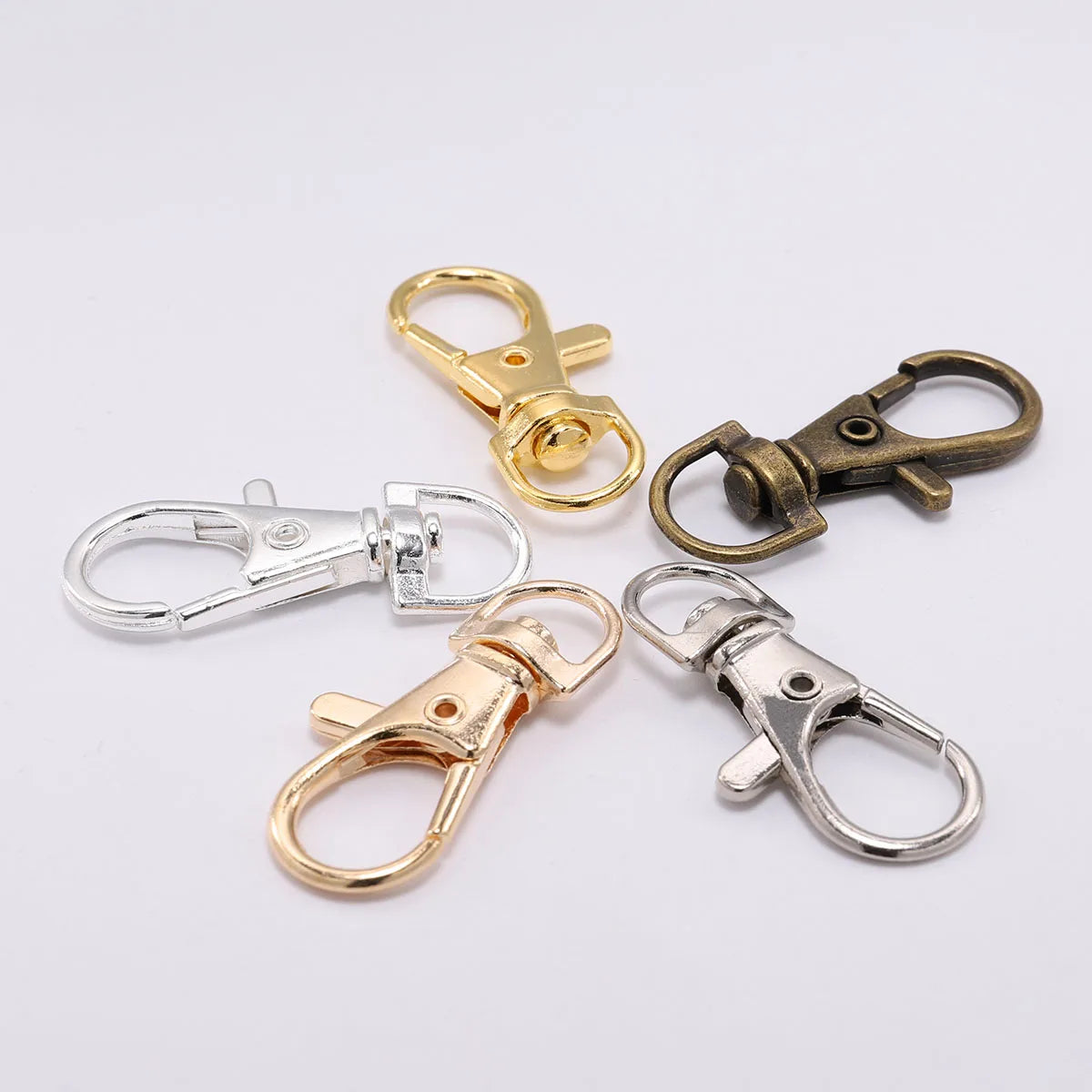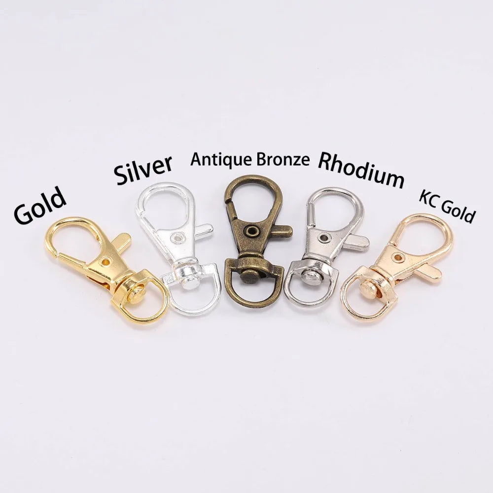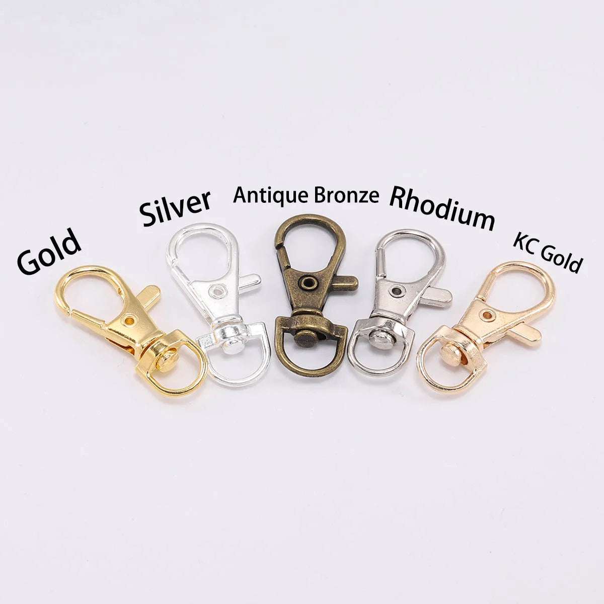 Introducing our high-quality keychain connectors, perfect for DIY enthusiasts and crafting professionals. These versatile gold split key rings with swivel lobster clasps are ideal for creating custom bag accessories, belt attachments, or dog chains. Crafted from durable zinc alloy, they come in a variety of metal finishes including gold, silver-plated, rhodium, antique bronze, and light yellow gold.