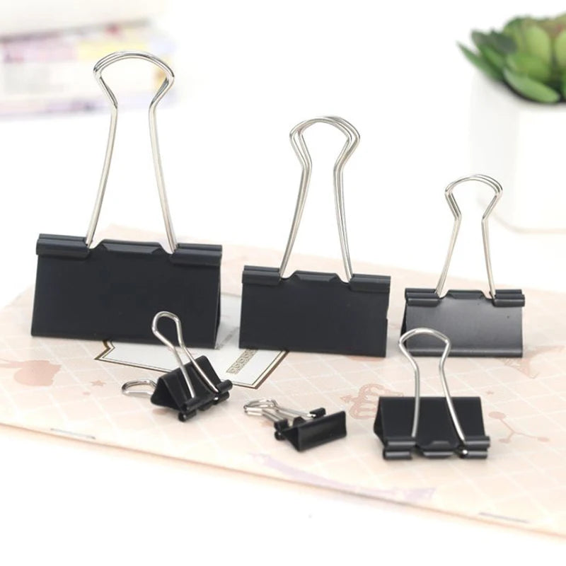 10pcs Black Metal Binder Clips 19-51mm Foldback Paper Clamps Office School Stationery