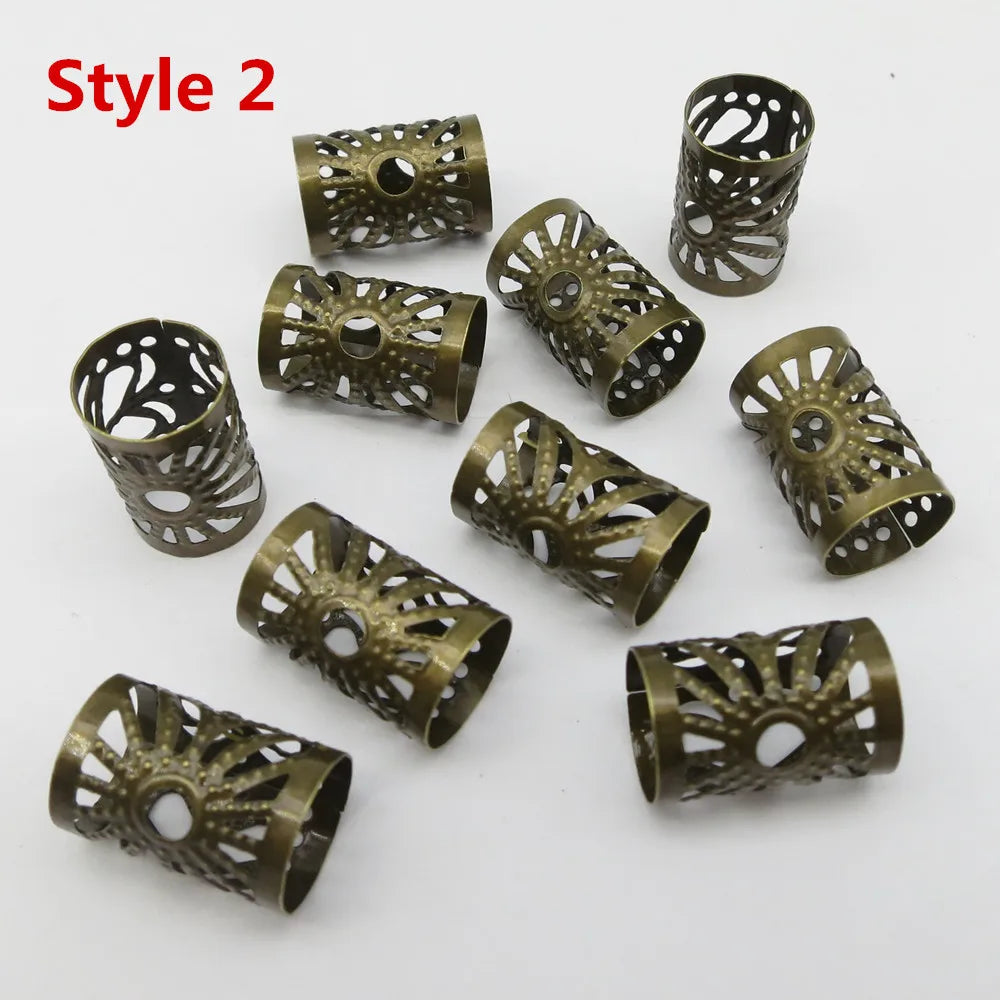 Elevate your style with these versatile bronze hair accessories. Designed for both women and men, this pack includes 10 adjustable bead cuffs and clips that are perfect for braids and dreadlocks. Crafted from durable alloy, these rings and tubes offer both functionality and flair, making them an ideal choice for any hair type.
