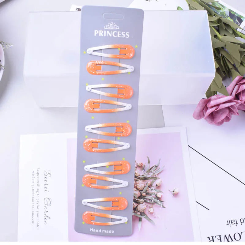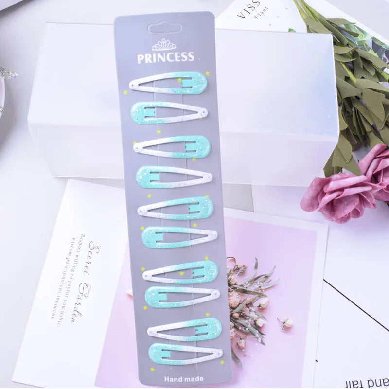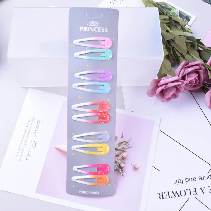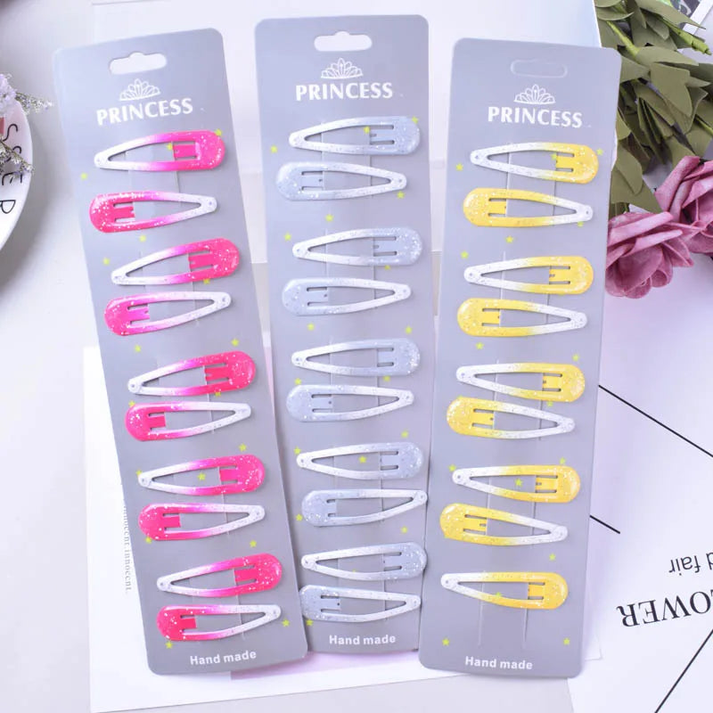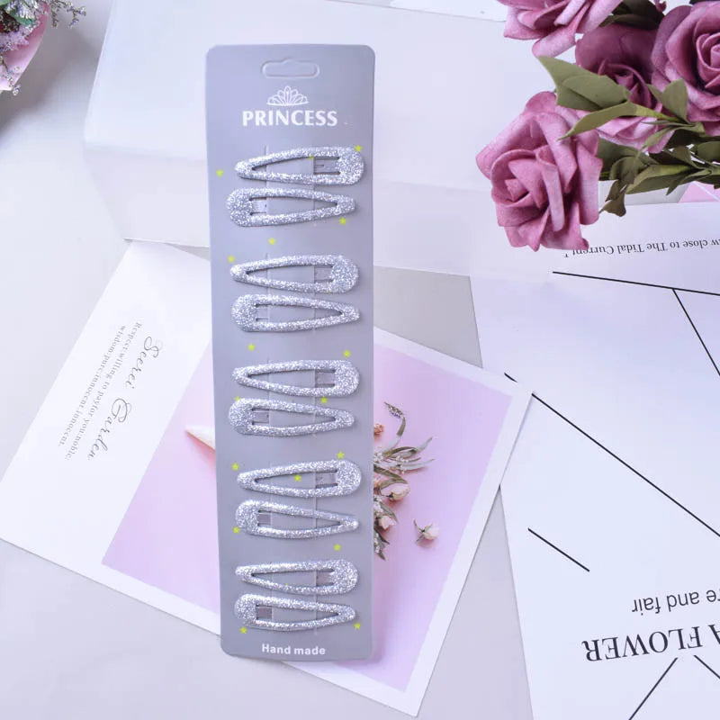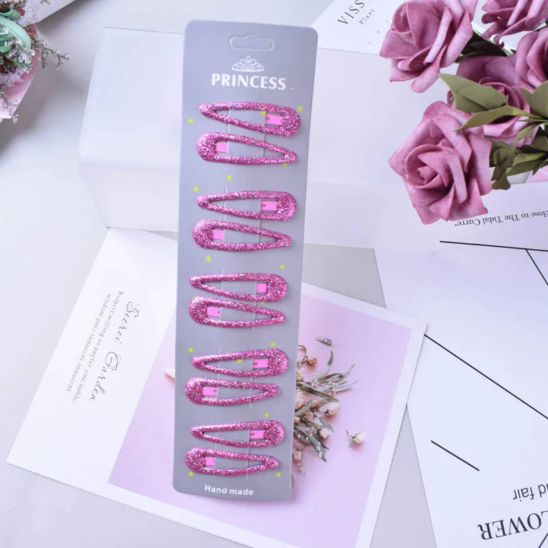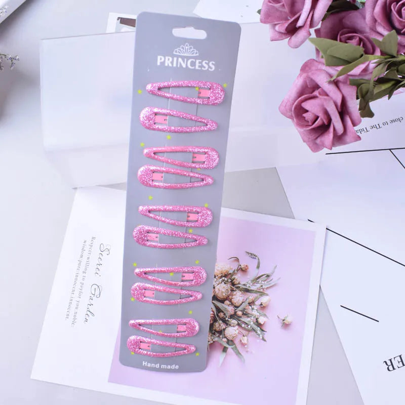 10pcs Glitter Hairpins Set Kids Snap Clips Cute Metal Hair Barrettes Accessories