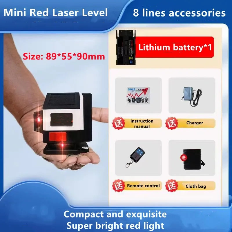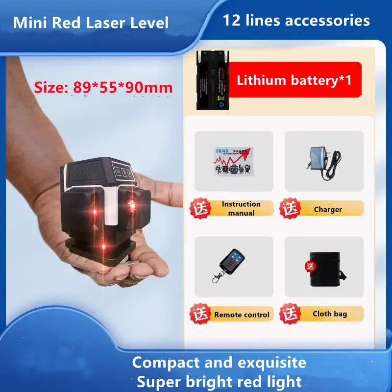 Introducing the Mini Red Light Laser Level, a versatile tool designed to achieve precise leveling and alignment for your projects. Perfect for both indoor and outdoor use, this device offers a 360° launching angle, allowing you to cover all areas with accuracy. Equipped with 12 laser lines and a 1mm line width, it ensures sharp and clear visibility, extending up to 10-15 meters indoors and 2-4 meters outdoors. Its compact design measures 6.5*5.5*9 cm, making it highly portable and easy to handle.