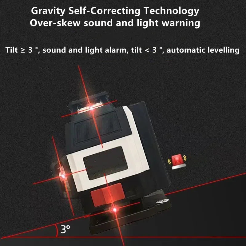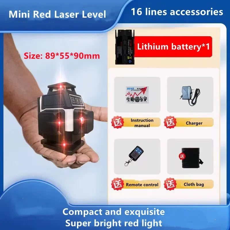12/16 Line 3D/4D Mini Laser Level, Self-Leveling, 360° Horizontal & Vertical Cross, Strong Red Beams