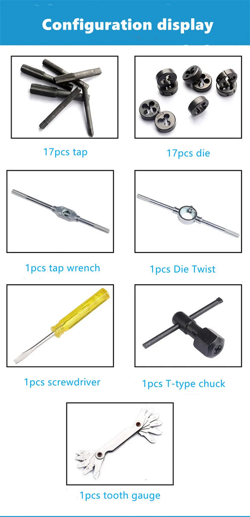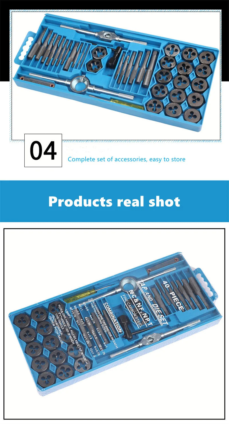 12-40pc Tap Die Set M3-M12, Manual Internal/External Threading Tool Kit, Thread Repair Drilling