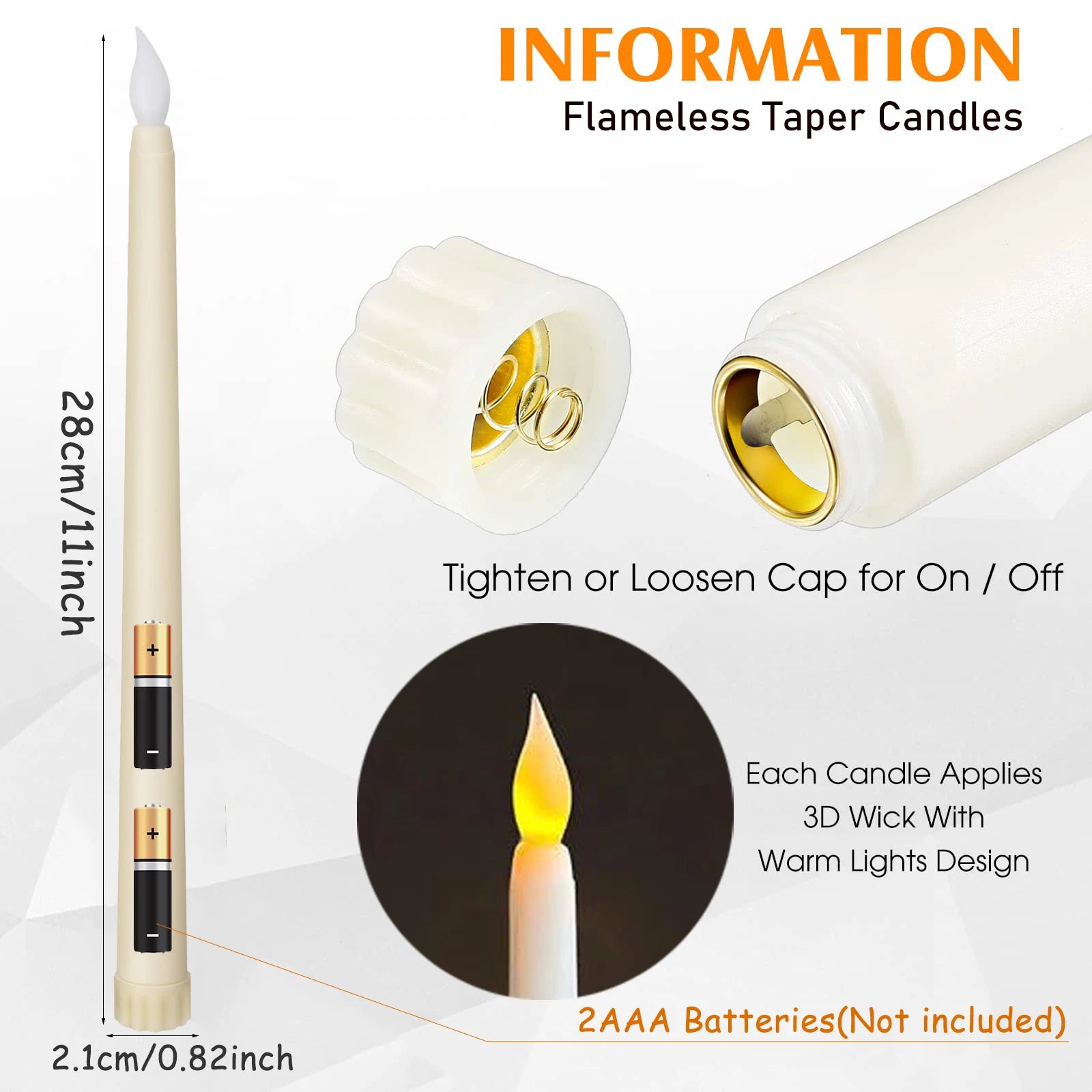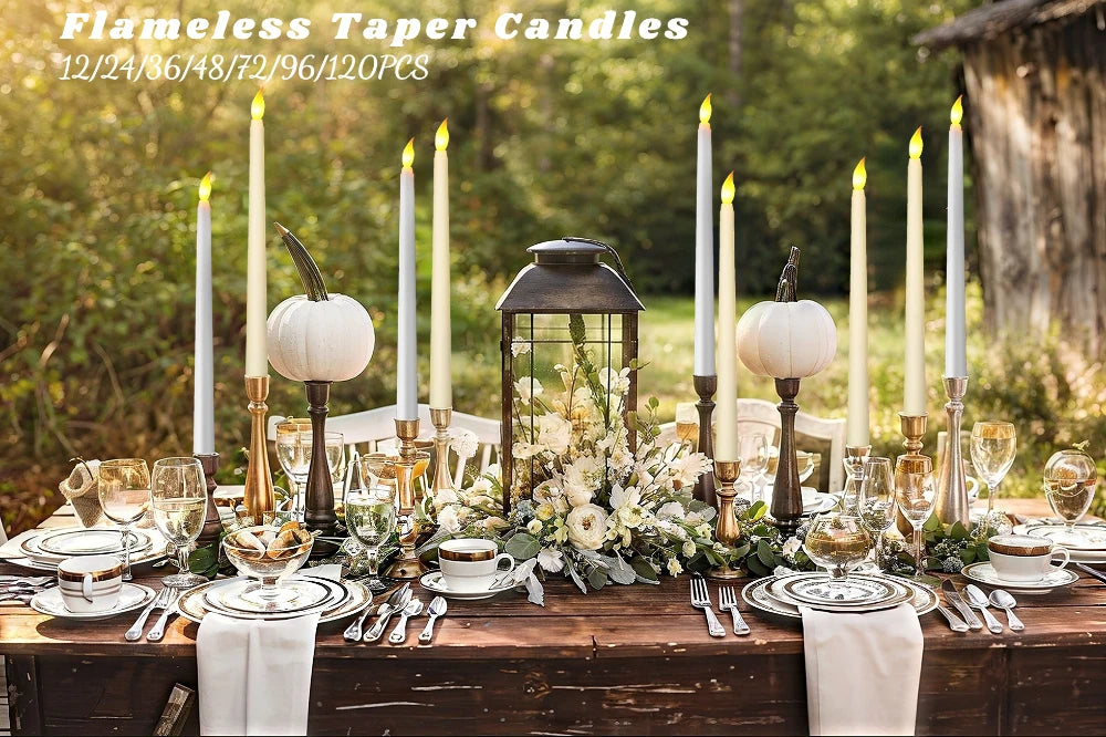 Flameless LED Taper Candles Flickering 3D Wick Battery Operated for Weddings Parties Home Décor 12-200pcs