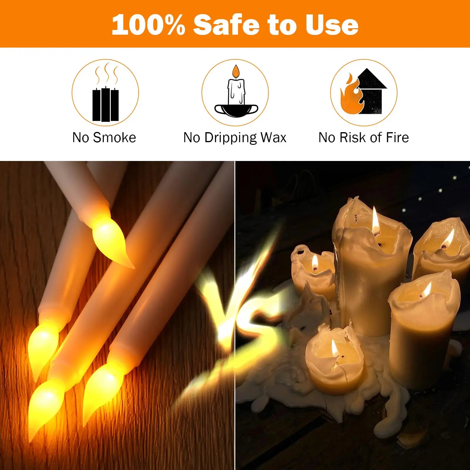 Elevate your ambiance with these LED Conical Candles, designed to bring a realistic flame effect to any setting. Featuring flickering warm yellow lights, these candles emulate the soothing glow of true candlelight, creating a cozy and secure atmosphere without the risks associated with real flames.