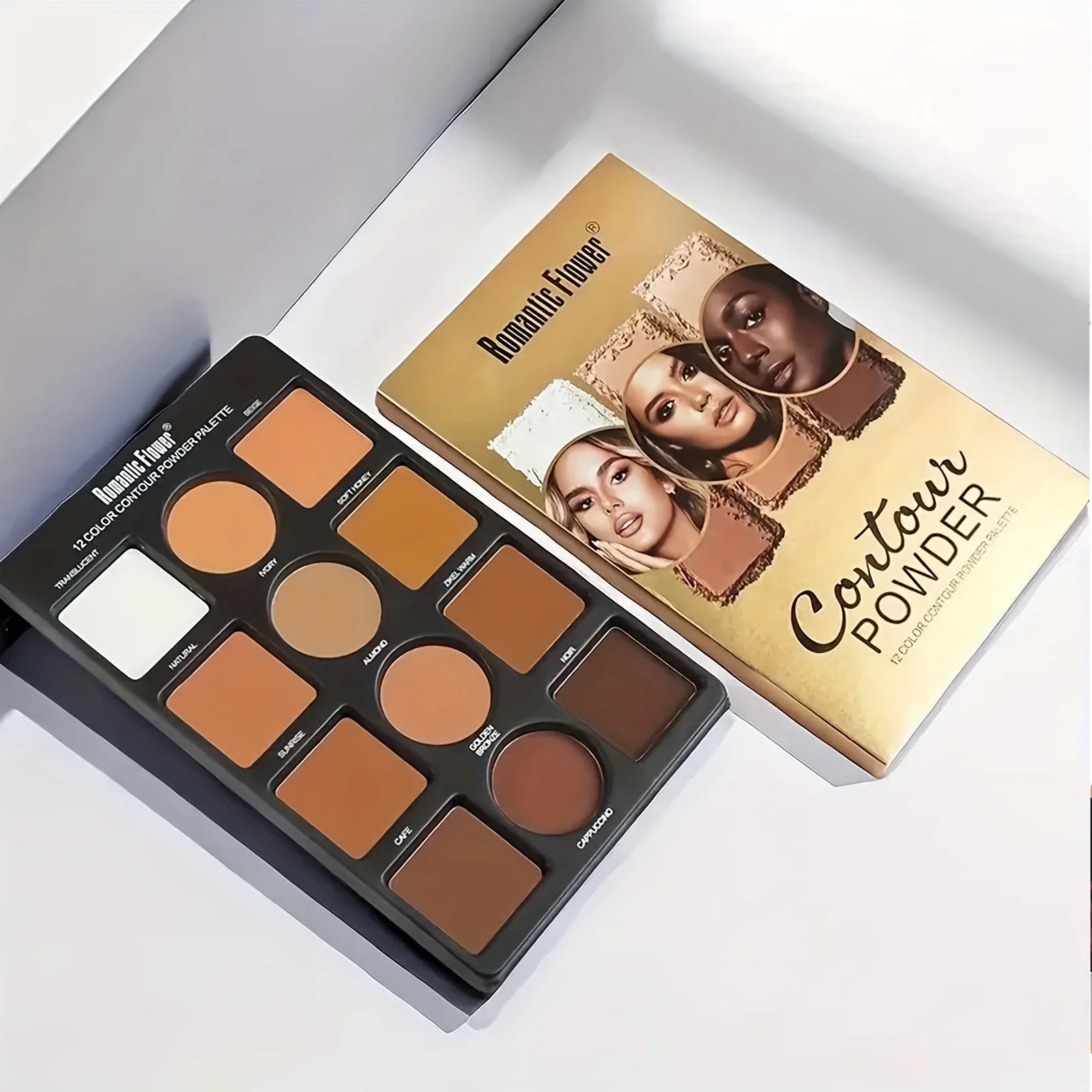 12-Color Matte & Shimmer Eyeshadow Palette with Contour & Highlight Kit