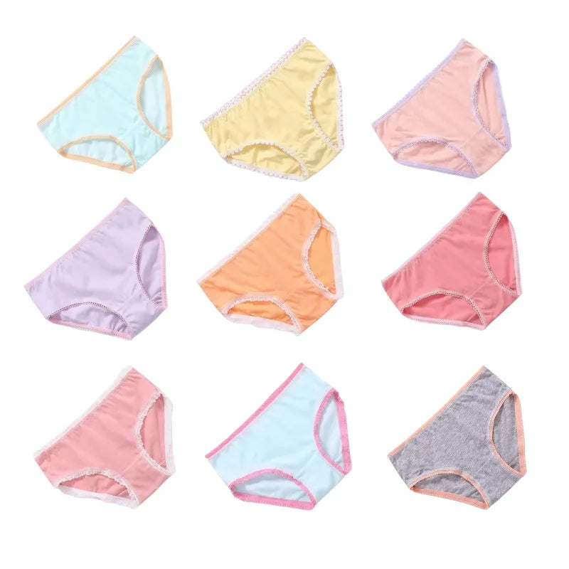 Available in a range of sizes from 3T (suitable for ages 2-4) to 11T (suitable for ages 11-12), these panties offer a true-to-size fit with a stretchy waistband for a flexible and comfortable wear. Each set includes 12 pieces, featuring a variety of fun, random colors to surprise and delight.