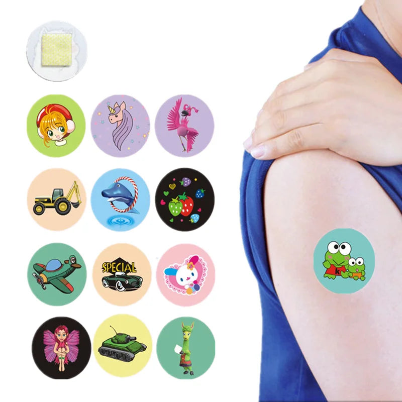 120pcs Cartoon Bandages for Kids - Round Kawaii Plasters, Skin Friendly Adhesive Patches for Wounds & Injections