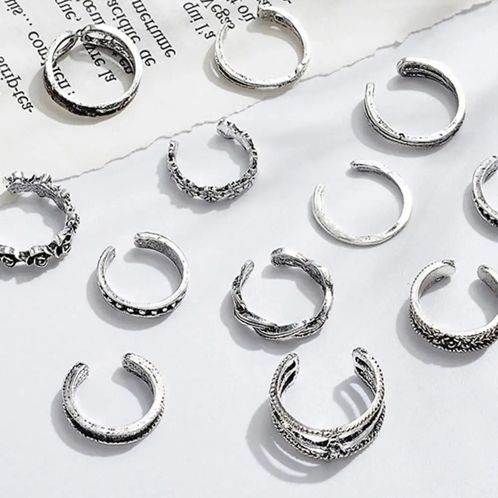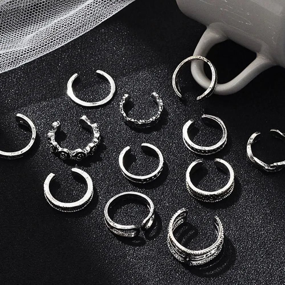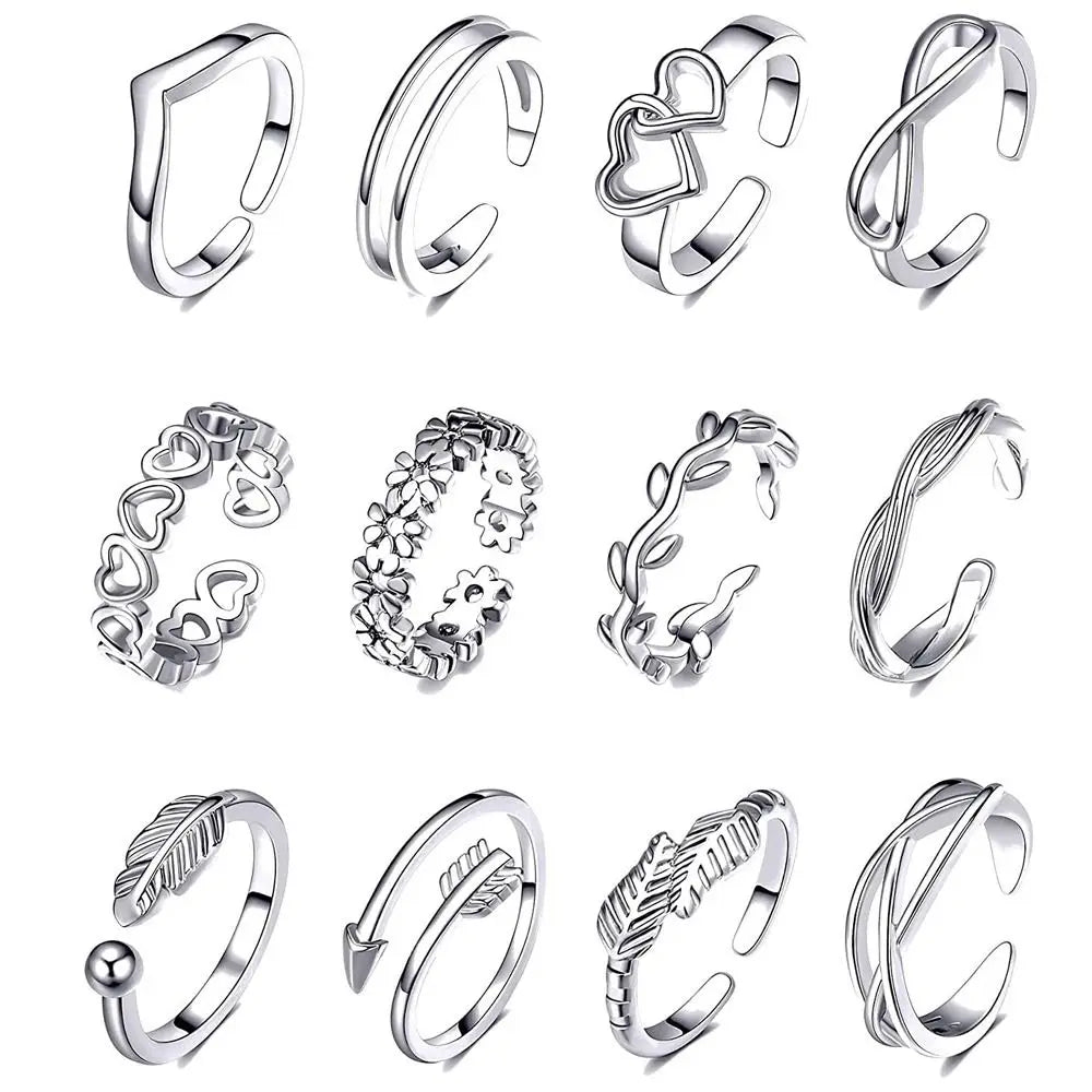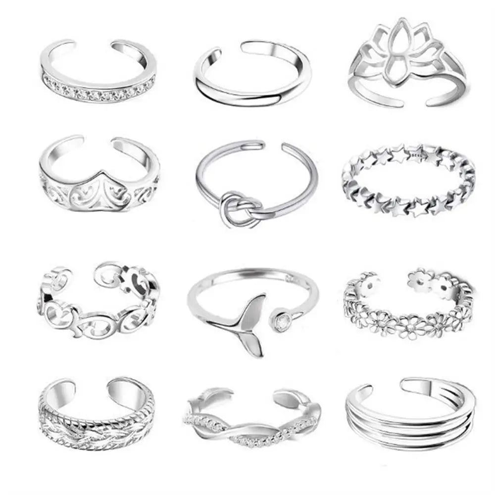 12pcs Adjustable Alloy Toe Ring Set for Women - Beach Foot Jewelry Fashion Accessories