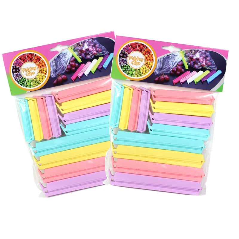 Maximize your kitchen organization with our versatile snack clips, ideal for sealing snacks, cereals, and other packaged foods to keep them fresh. These durable plastic clips offer a strong and reliable seal, ensuring your food stays fresh longer. Available in sets of 12 or 24, they bring a burst of vibrant color to your pantry, combining functionality and style seamlessly. An essential addition to any kitchen, these clips make food storage both effective and visually appealing.