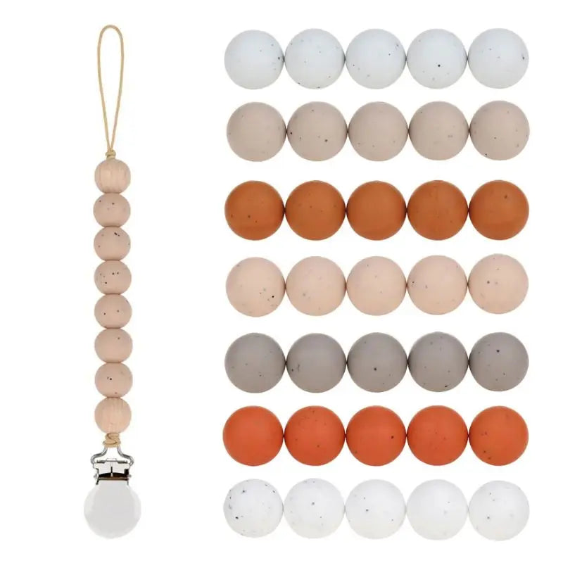 Enhance your crafting projects with our 15mm Silicone Loose Beads, perfect for creating safe and stylish teething accessories. Crafted from food-grade silicone, these sturdy round beads are ideal for making necklaces, bracelets, key rings, and more. Each set includes 20 beads in four vibrant colors, making it easy to mix and match in your DIY projects. Designed with safety in mind, they're easy to clean with just soap and water, ensuring they’re always ready for your next creation. Please note, the package includes beads only.