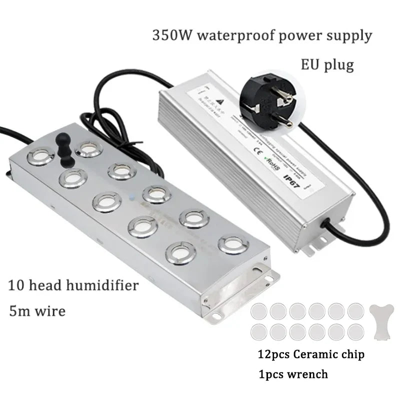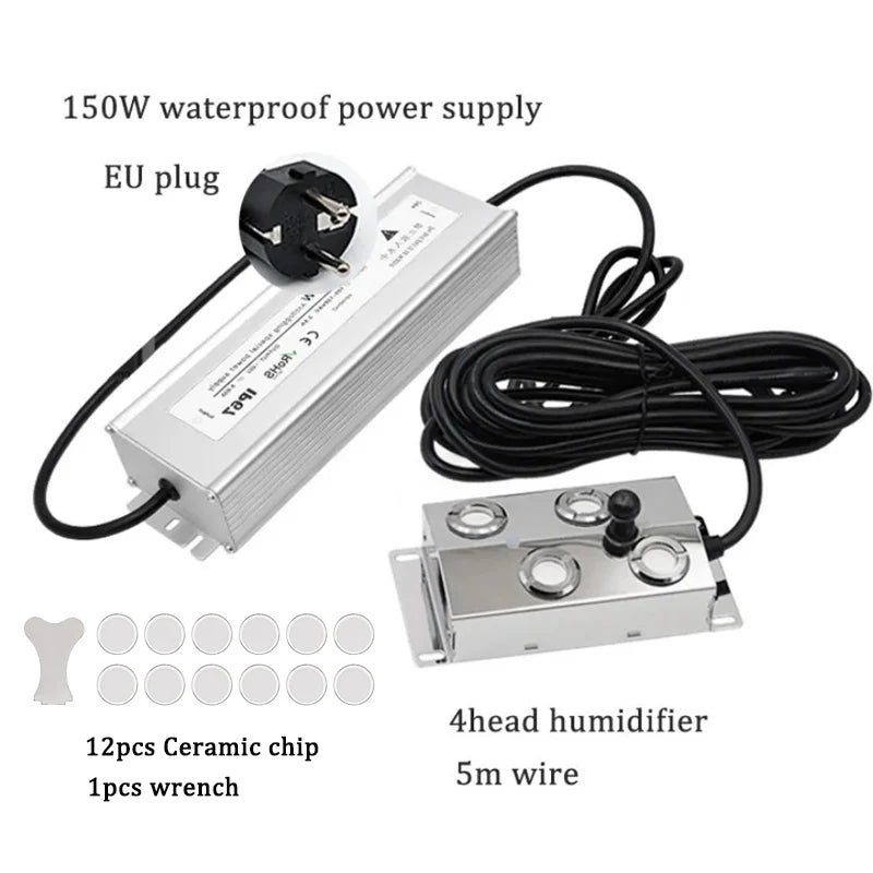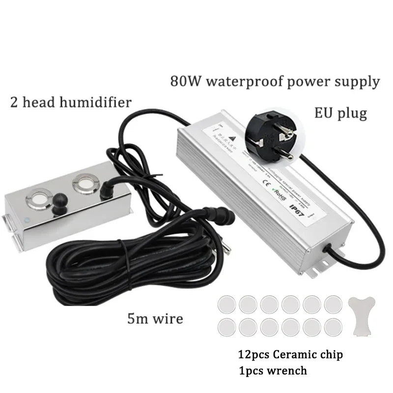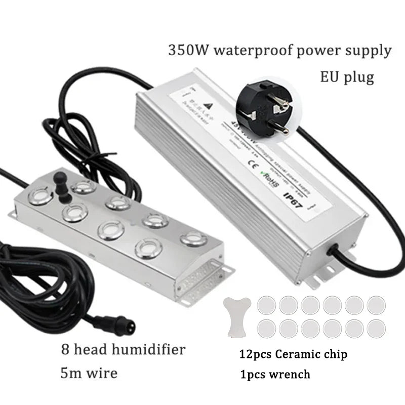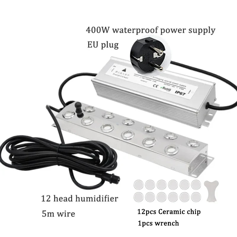 Experience enhanced air quality and ambiance with this Ultrasonic Mist Maker Fogger, designed for versatile environments like gardens, pools, rockeries, hotels, and homes. Constructed from durable stainless steel, this mist maker features multiple head options (2, 4, 6, 8, 10, 12) to suit your specific needs. With a powerful mist discharge, it efficiently humidifies spaces between 11-20㎡, maintaining optimal humidity levels with a humidistat control.