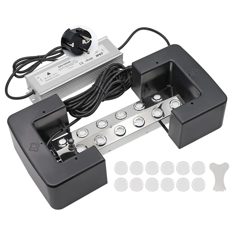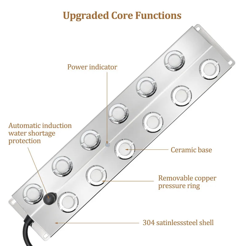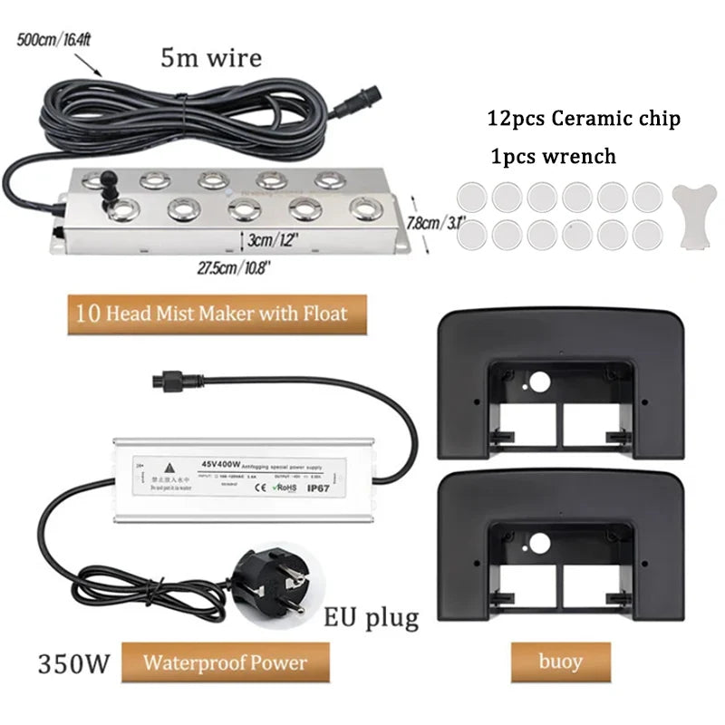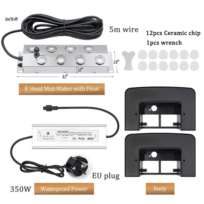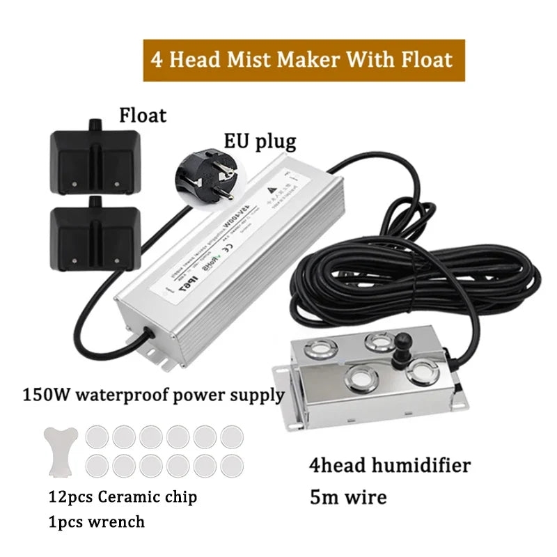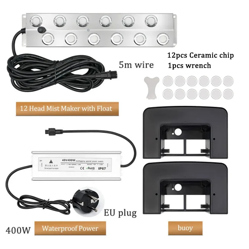 Experience enhanced air quality and ambiance with this Ultrasonic Mist Maker Fogger, designed for versatile environments like gardens, pools, rockeries, hotels, and homes. Constructed from durable stainless steel, this mist maker features multiple head options (2, 4, 6, 8, 10, 12) to suit your specific needs. With a powerful mist discharge, it efficiently humidifies spaces between 11-20㎡, maintaining optimal humidity levels with a humidistat control.