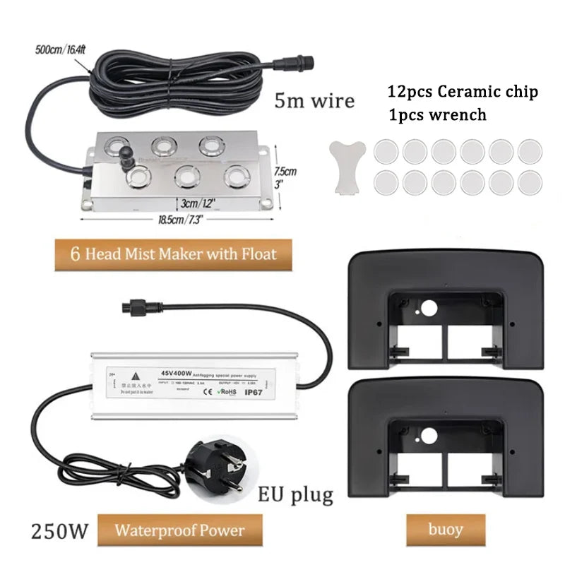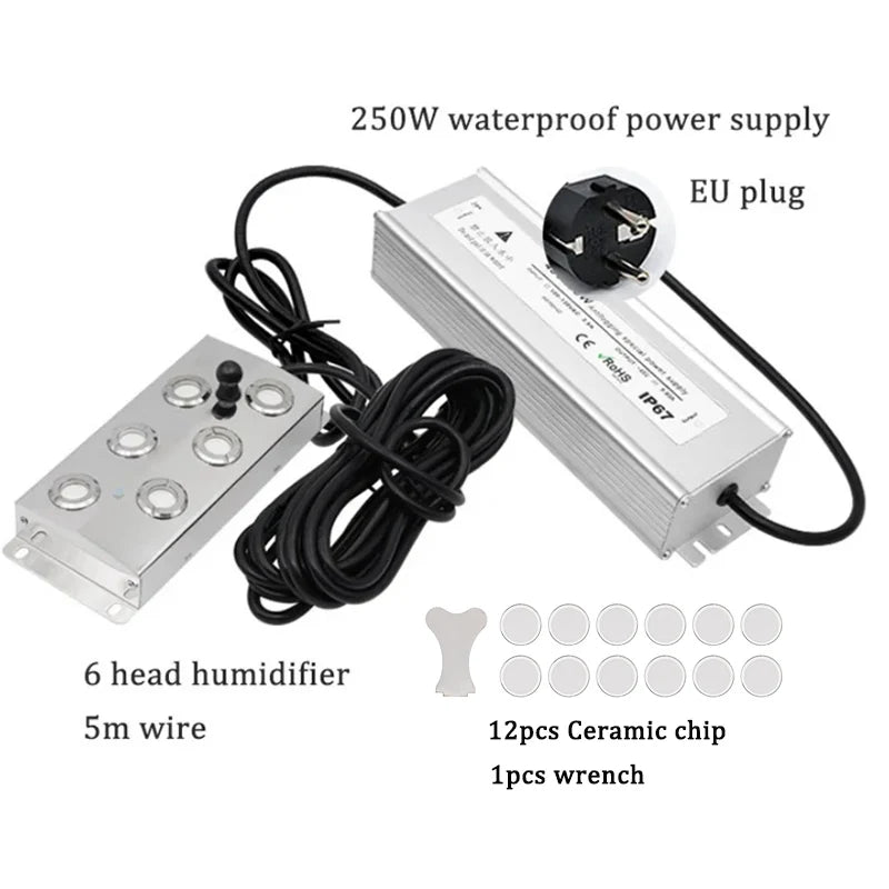 6 Head Ultrasonic Mist Maker Fogger Humidifier, Stainless Steel, Garden/Pool/Rockery Fog Sprayer, 220V