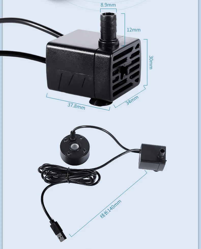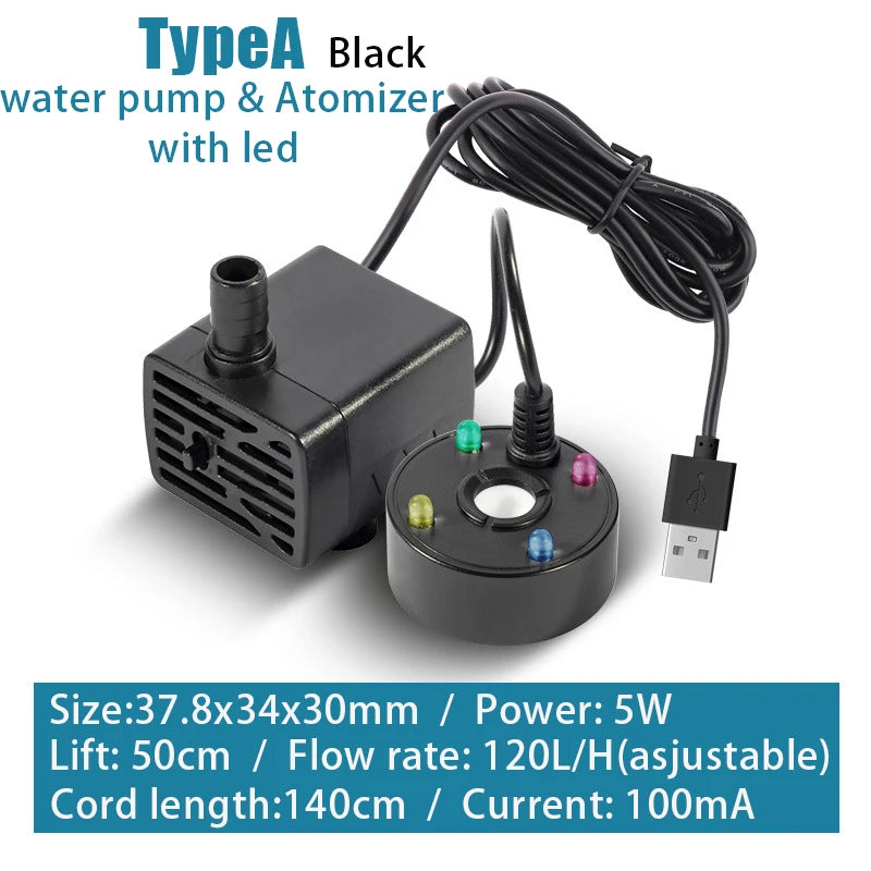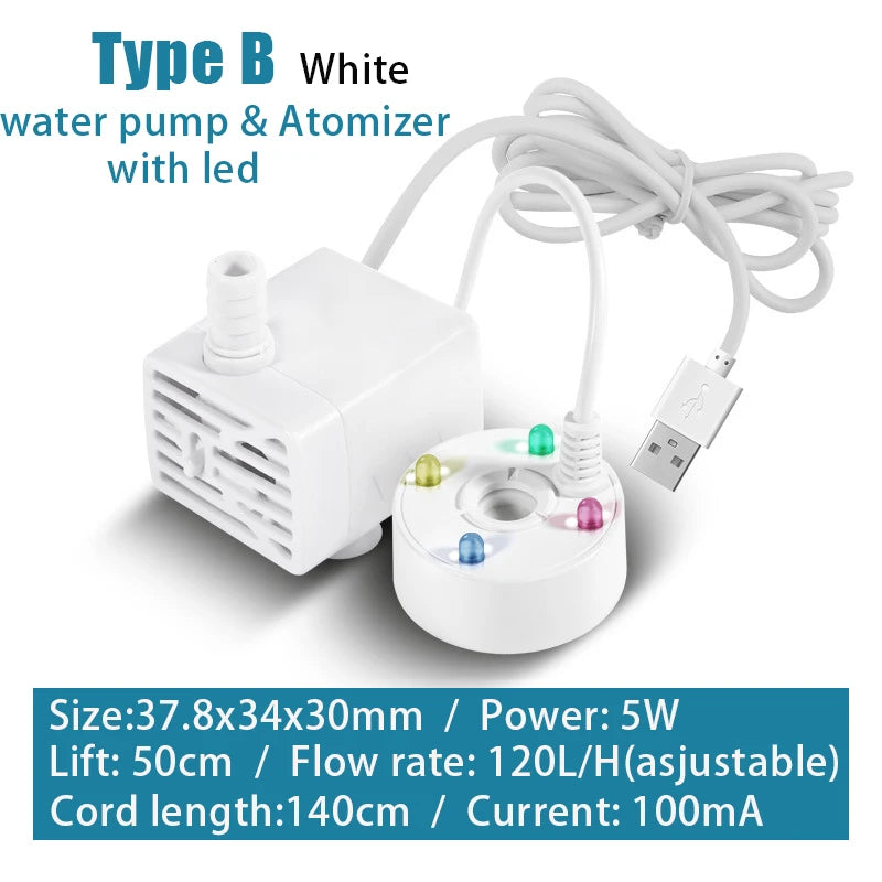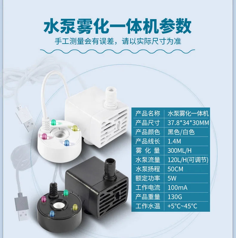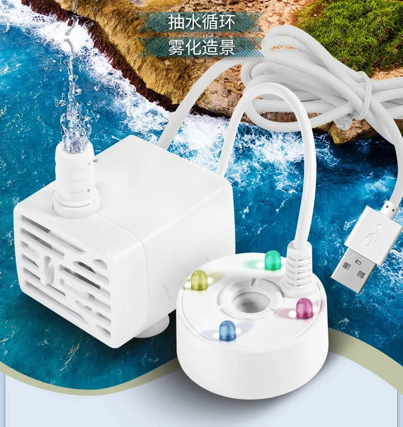 2-in-1 USB Water Pump & Mist Maker for Ponds, Gardens, Tanks, Humidifiers, Foggers