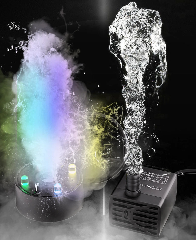 Discover the versatile 2-in-1 USB Water Pump and Mist Maker, crafted to enhance your water features effortlessly. Ideal for ponds, fish tanks, vases, birdbaths, and more, this innovative device ensures efficient water circulation while creating a captivating mist effect. Leveraging advanced electro and ultrasonic technology, it not only purifies the air by filtering odors but also adds an enchanting touch to any environment.