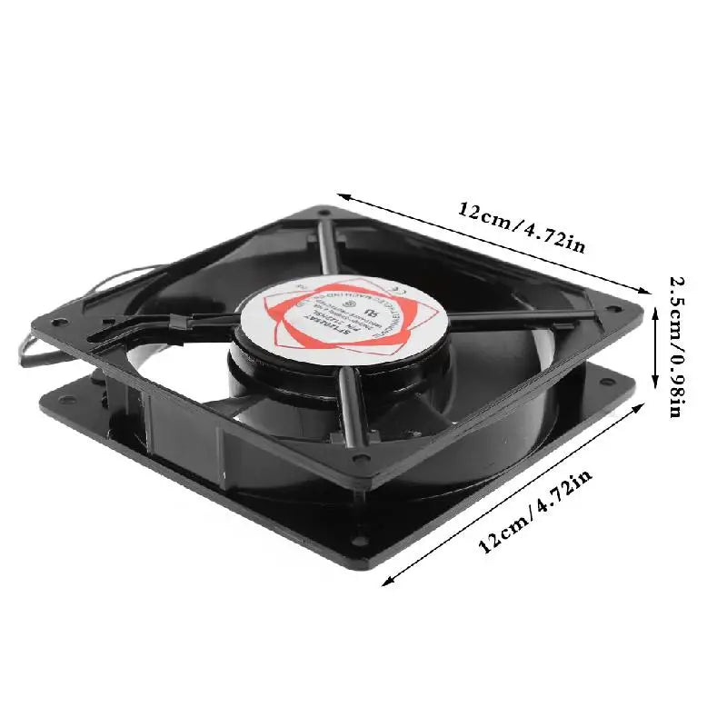 Experience efficient cooling with our 12025 AC Cooling Fan, designed for industrial use. This high-performance ventilation fan features a rotary vane mechanism with five sturdy metal blades for optimal airflow. Equipped with a durable sleeve bearing, it ensures a longer operational life, making it an ideal choice for cooling your equipment. Its sleek black design and compact dimensions (120×120×25mm) allow it to fit seamlessly into various setups.