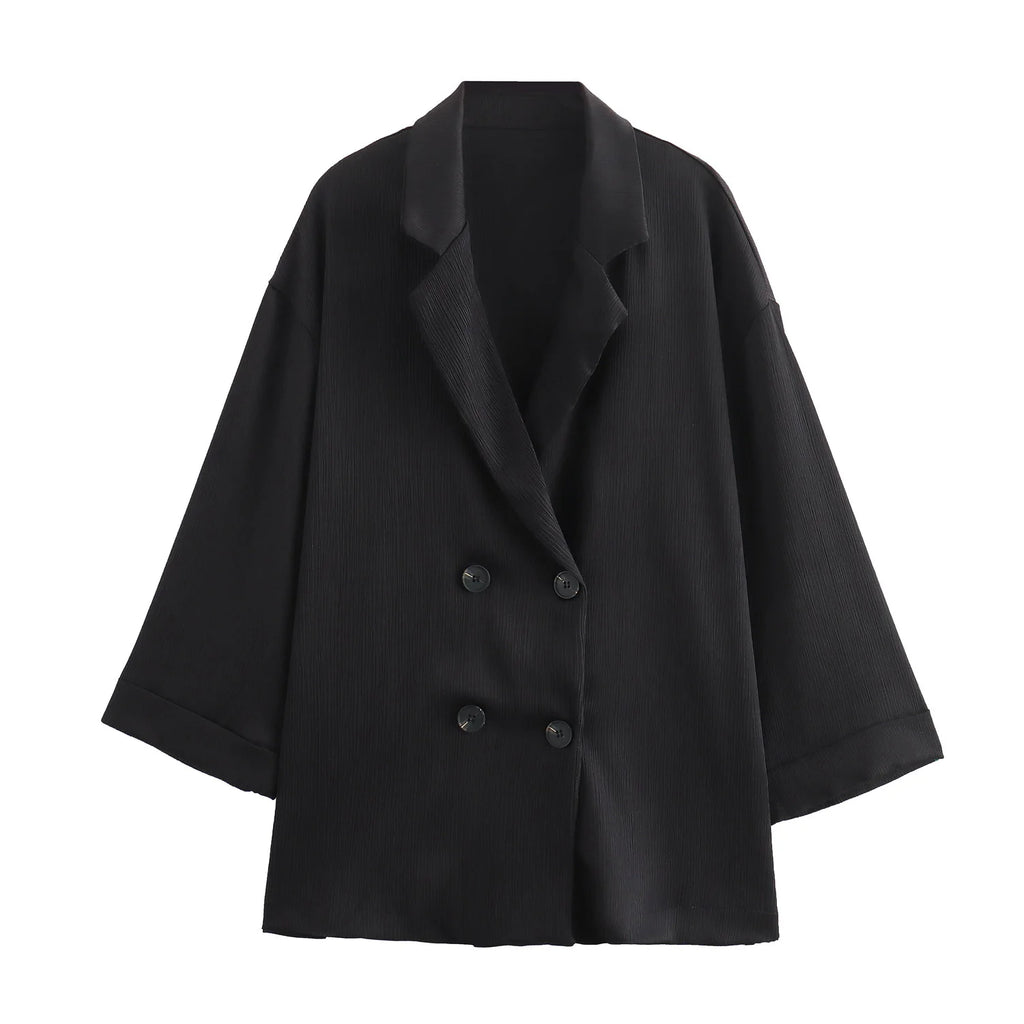 Elevate your professional wardrobe with this stylish and sophisticated office blazer, designed for confident and modern office looks. Perfect for the middle-aged professional, this double-breasted jacket showcases a versatile solid pattern that effortlessly complements any outfit. Crafted from a high-quality polyester blend, the blazer offers a loose fit for ultimate comfort. The thoughtful button decoration adds a touch of elegance, making it a perfect choice for spring and summer.