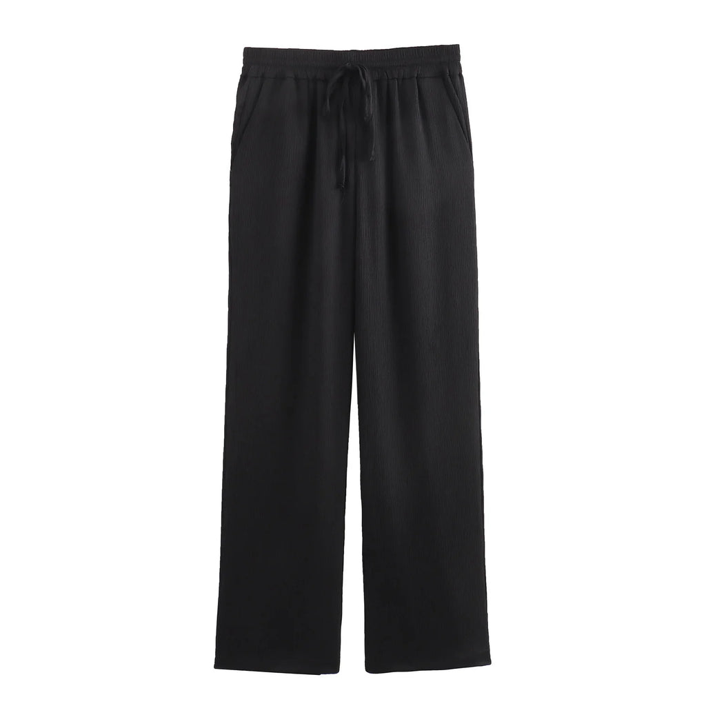 2024 Women's Casual Blazer & Wide Leg Pant Suit Set - Double Breasted Long Sleeve Office Outfit