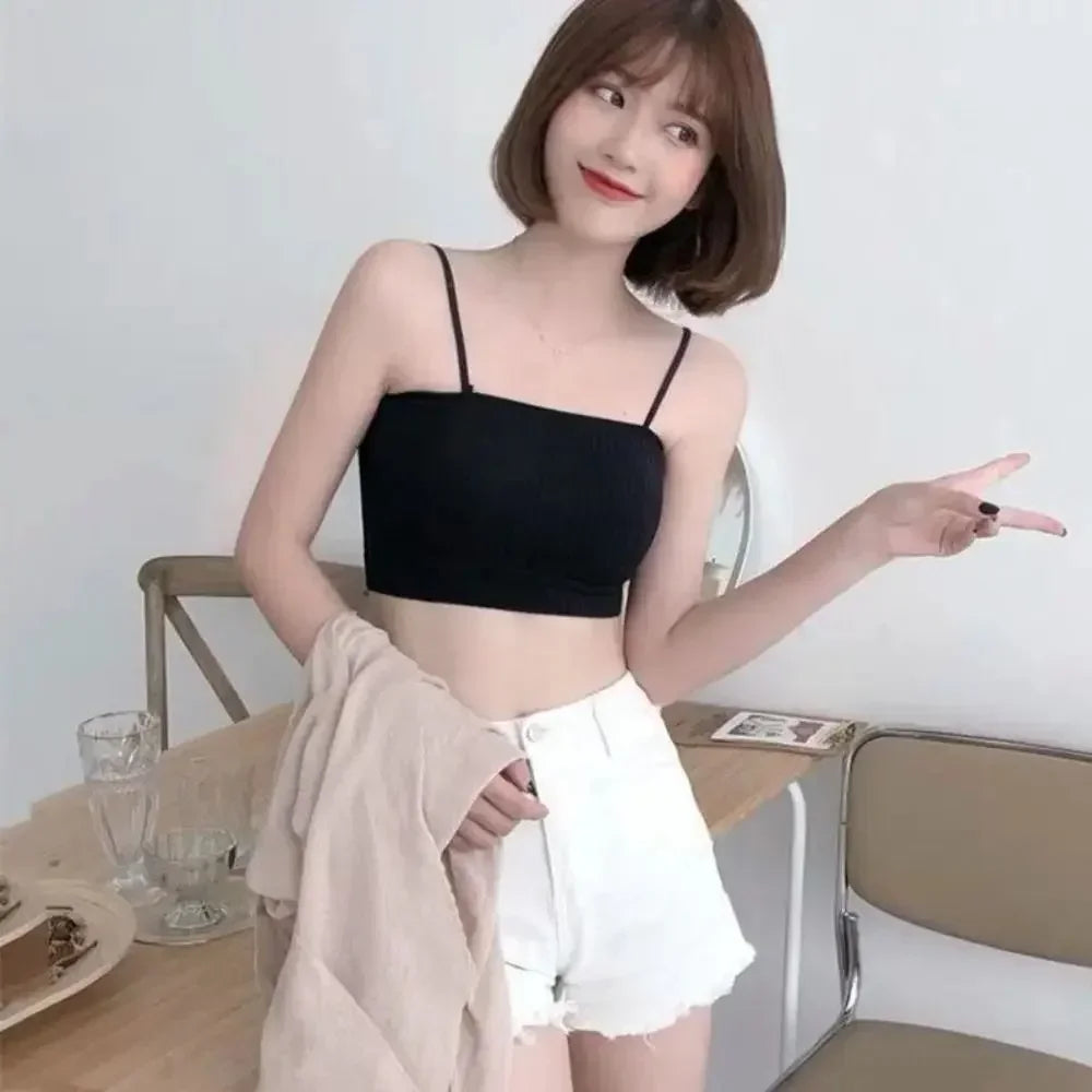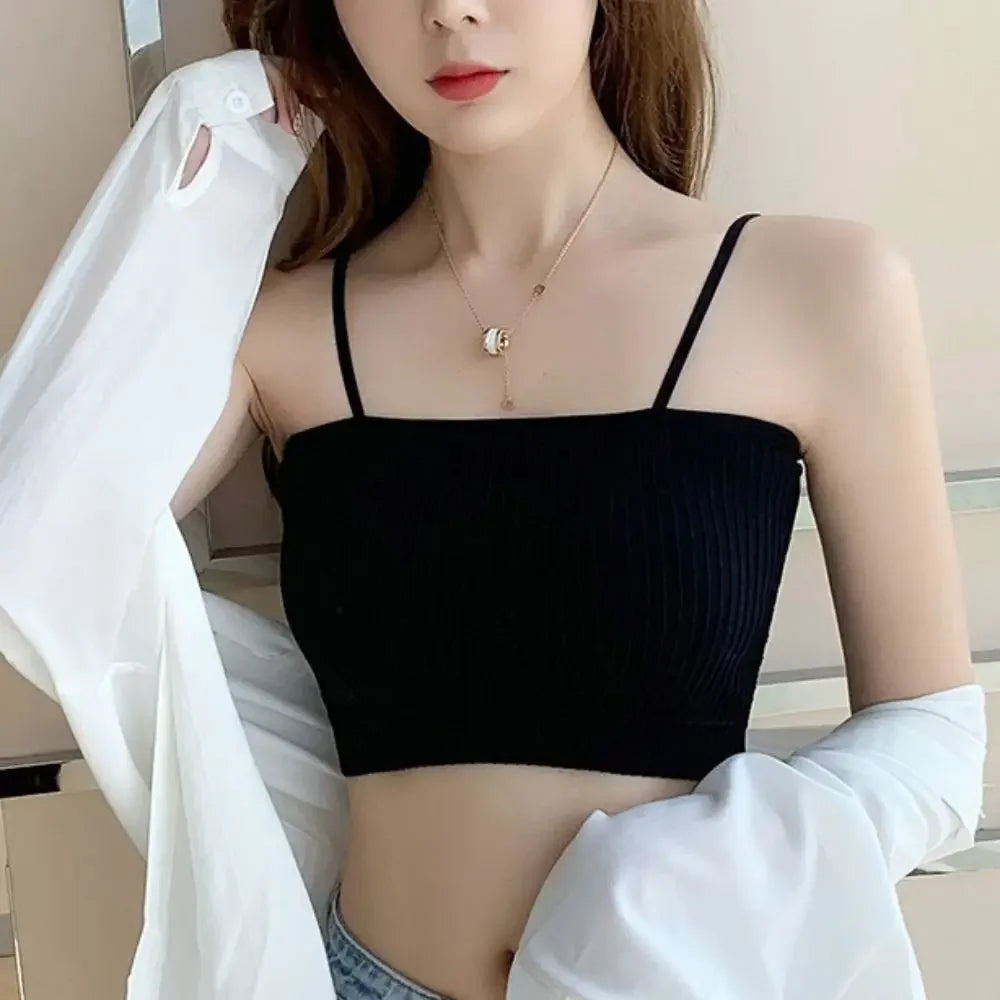 2024 Women's Slim Korean Style Polyester Tube Top Bra - Breathable Tank Top Underwear
