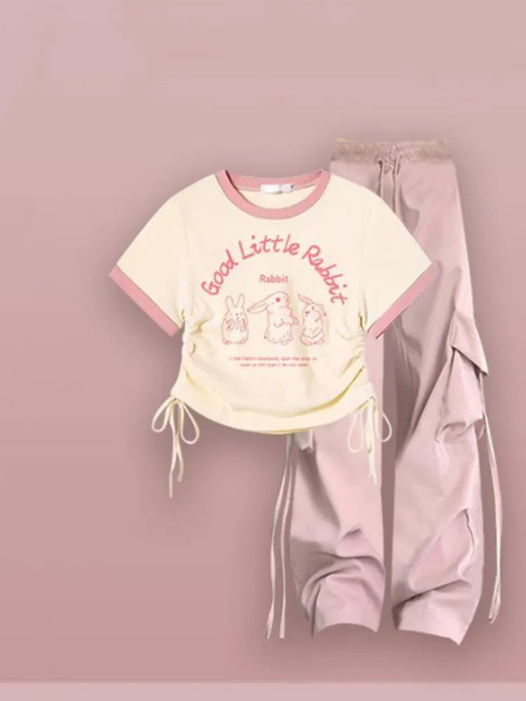 2024 Women's Spring/Summer Set: Short Sleeve Top + Pink Wide Leg Pants