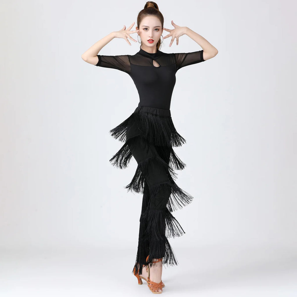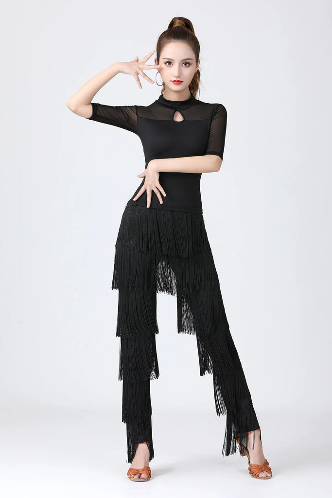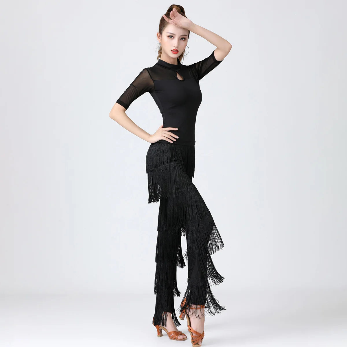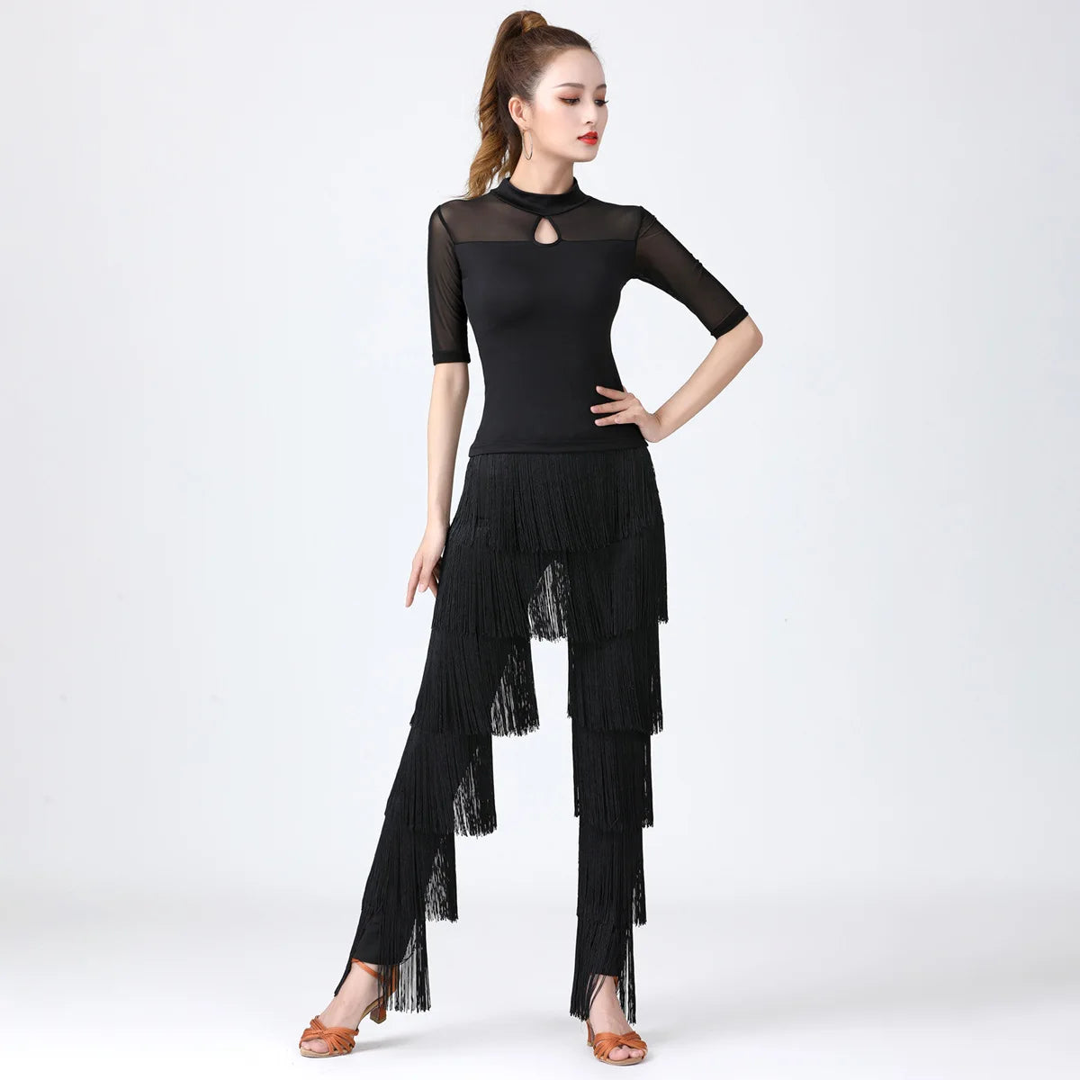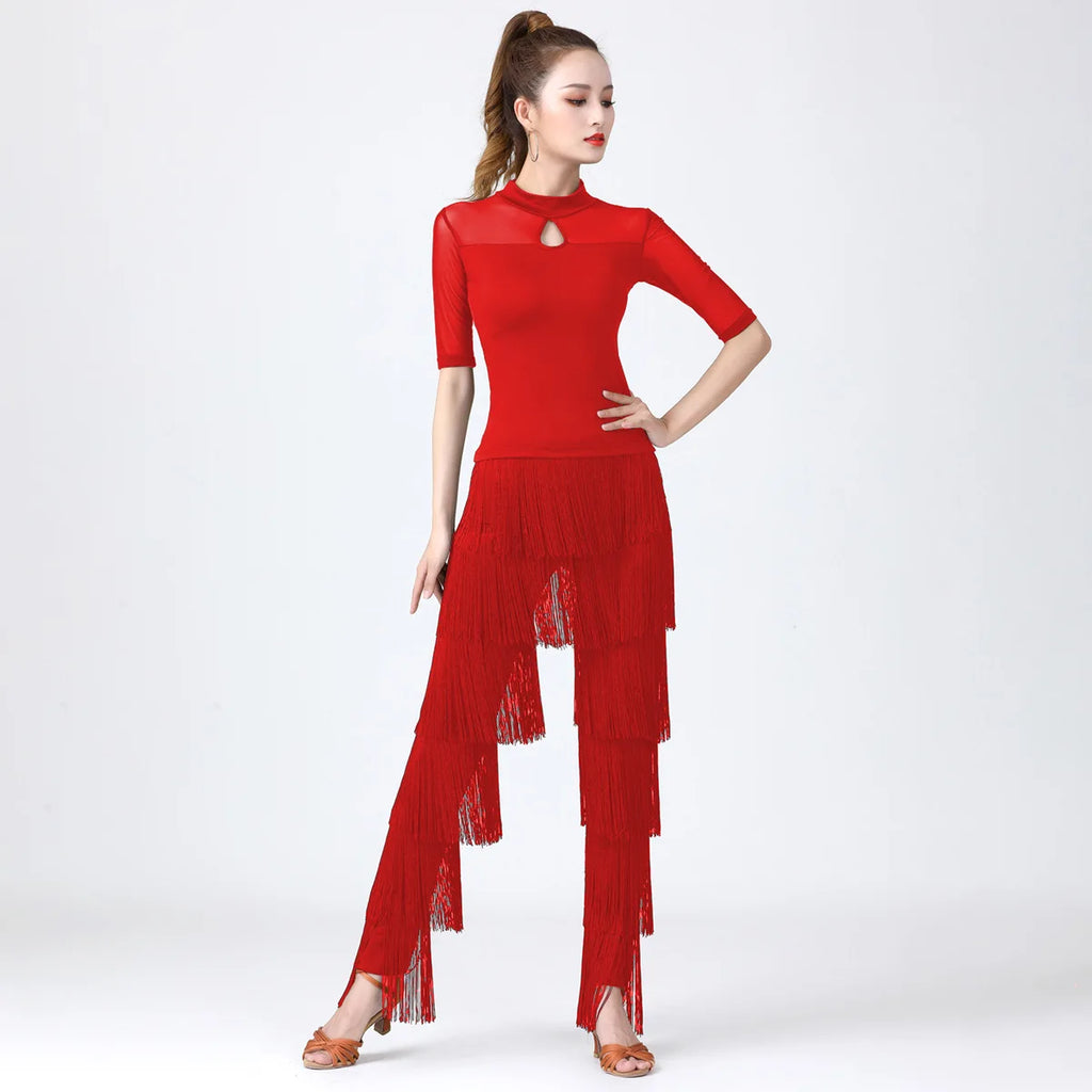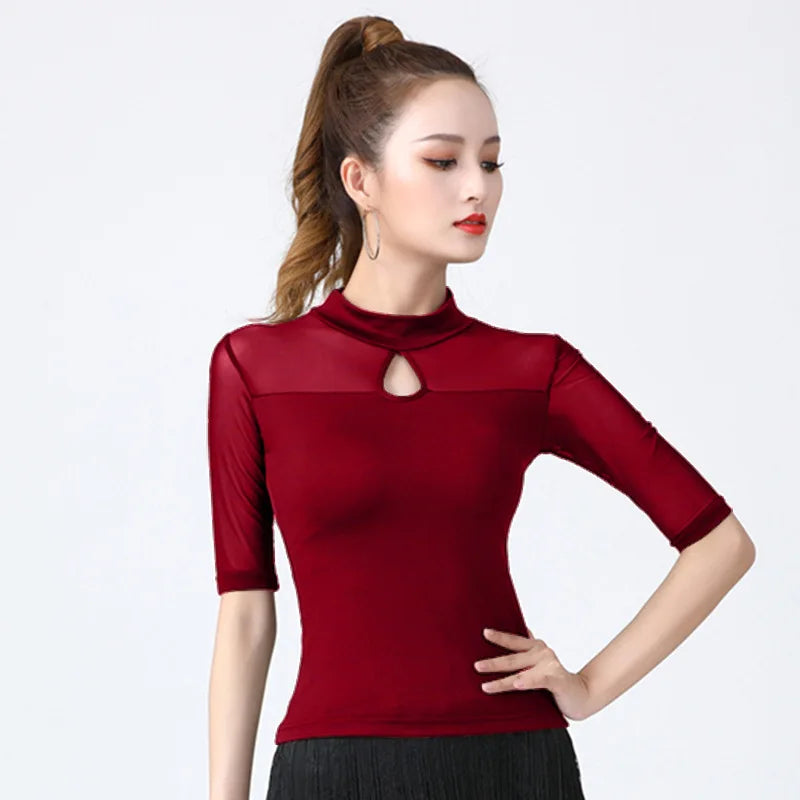 Introducing our Latin Dance Tops, perfect for women and girls who are passionate about Latin dance styles. Crafted with a blend of nylon, polyester, spandex, and cotton, these tops are designed to offer comfort and flexibility, allowing you to move with ease on stage, during training, or in performances. Available in a range of vibrant colors including black, red, and rose red, these tops feature a sexy mesh design that adds a touch of fashion to your dance attire.