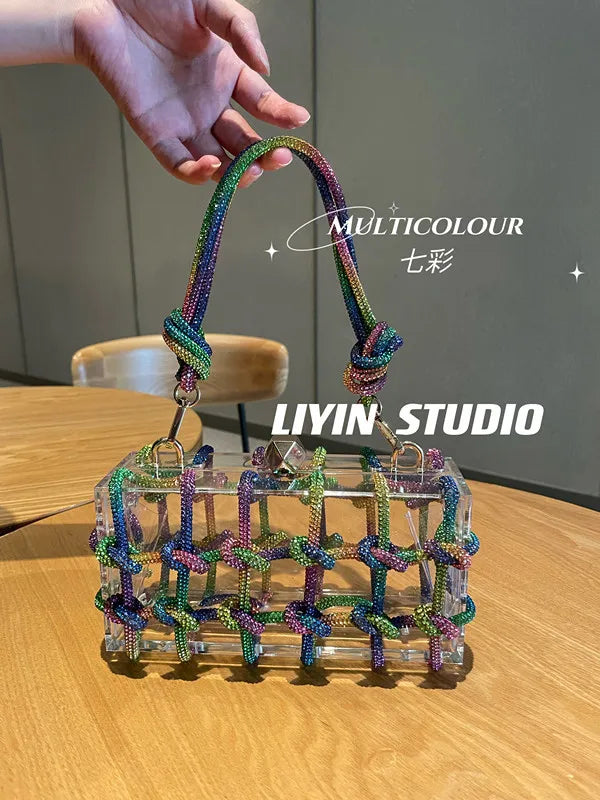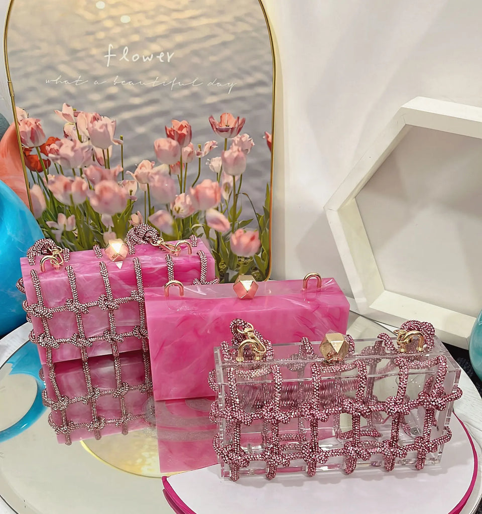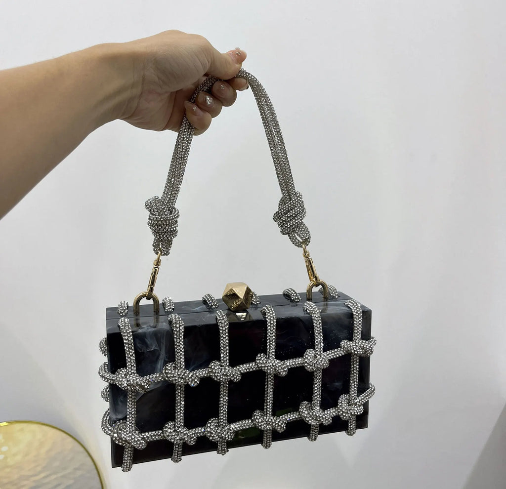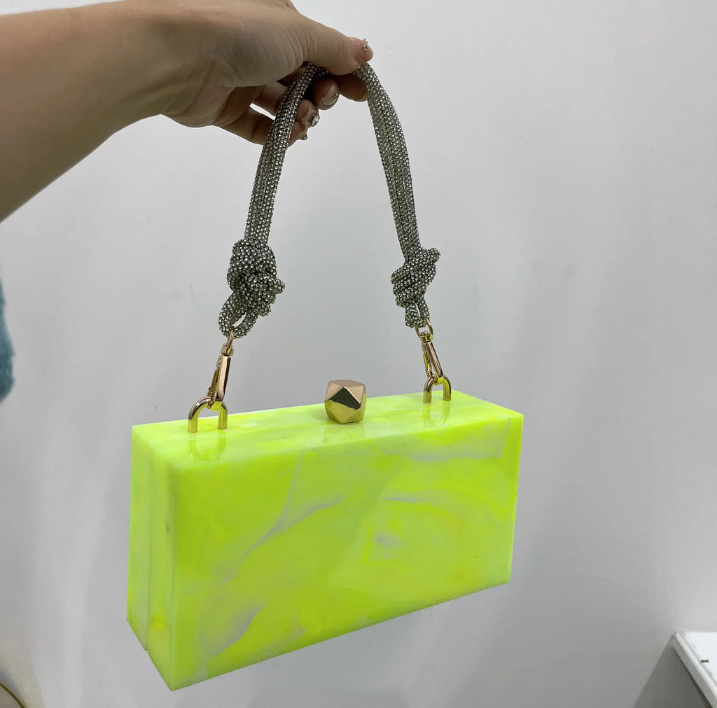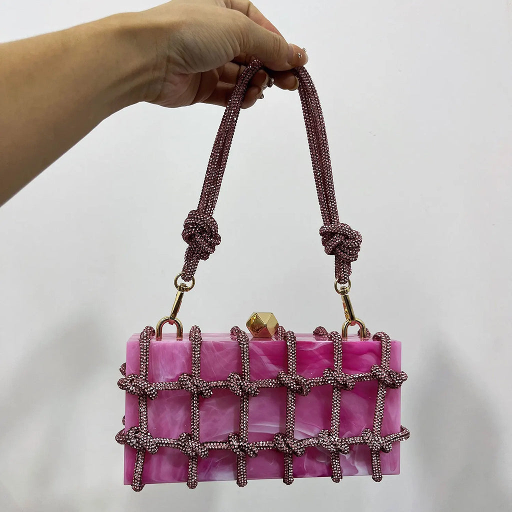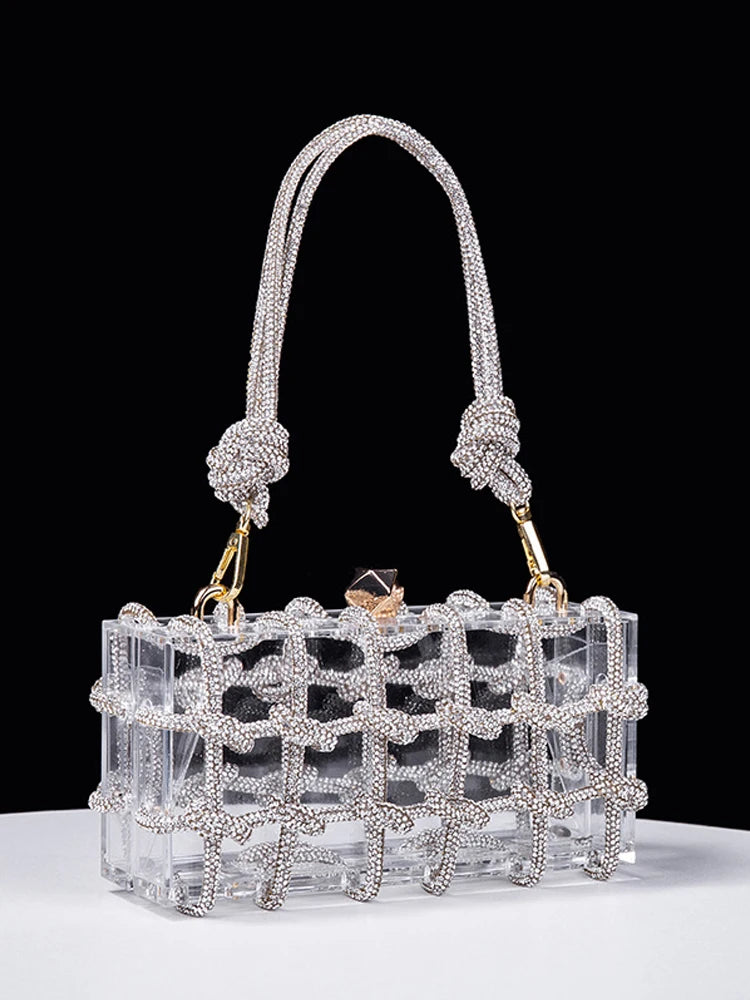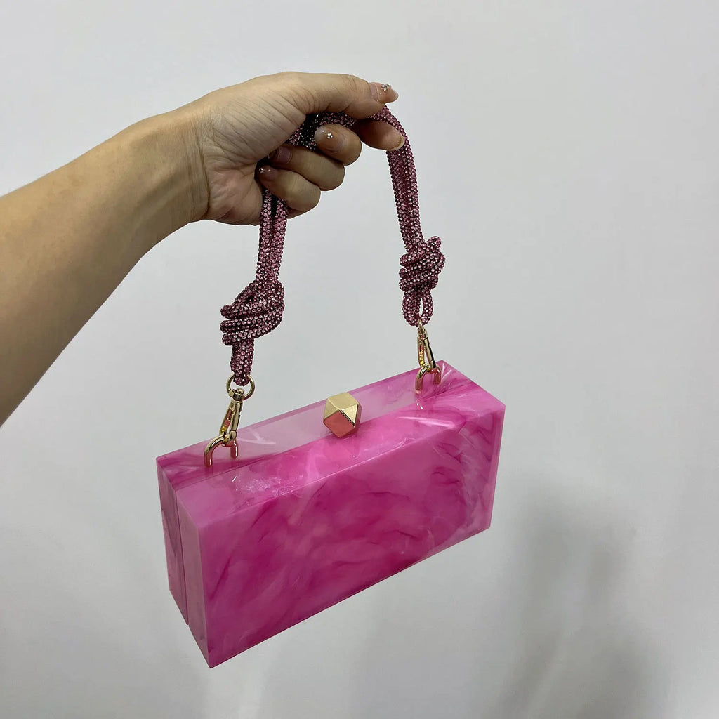 2024 Luxury Evening Clutch Bag Diamond Acrylic Square Handbag Women's Wedding Purse