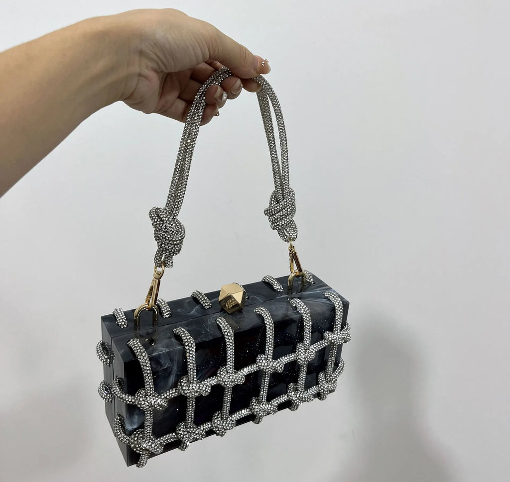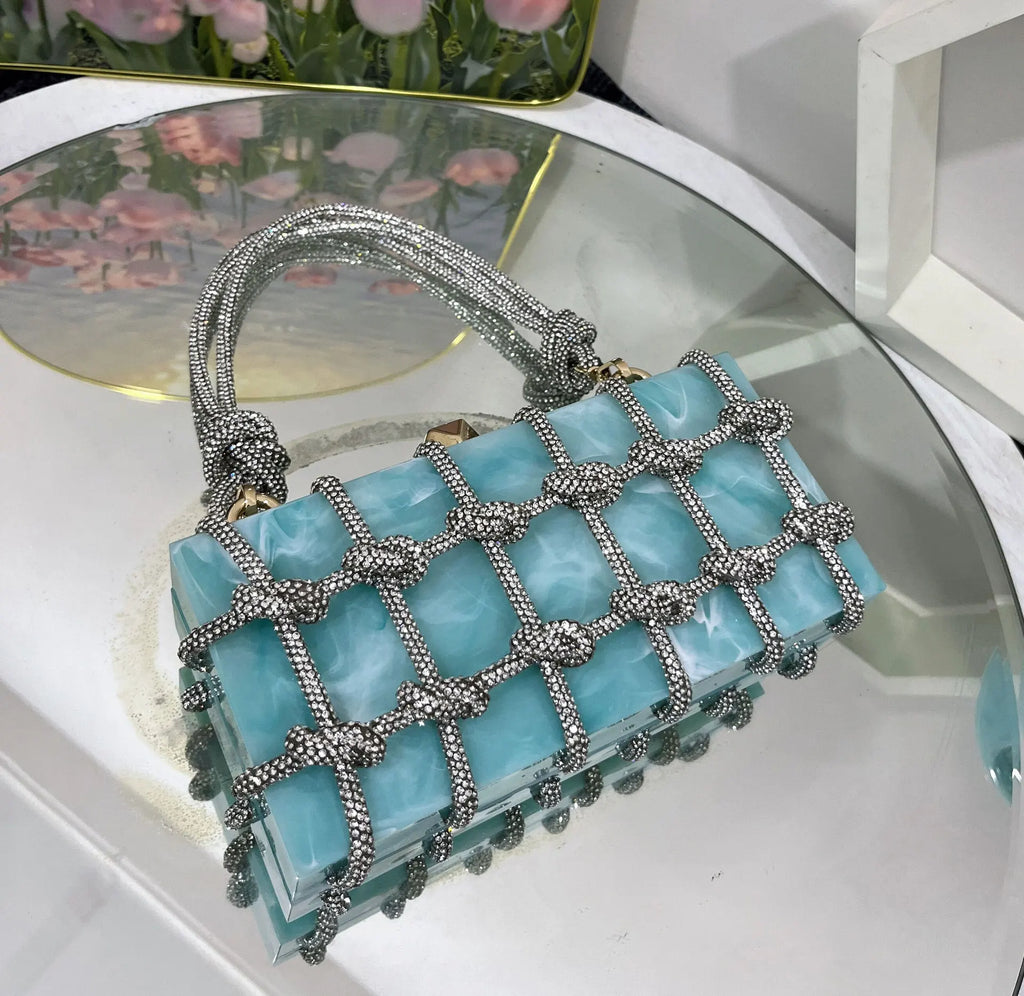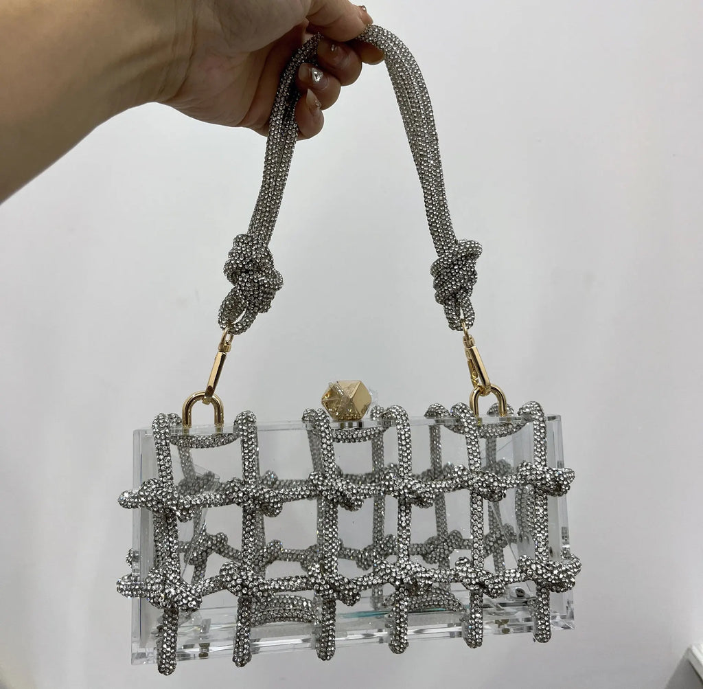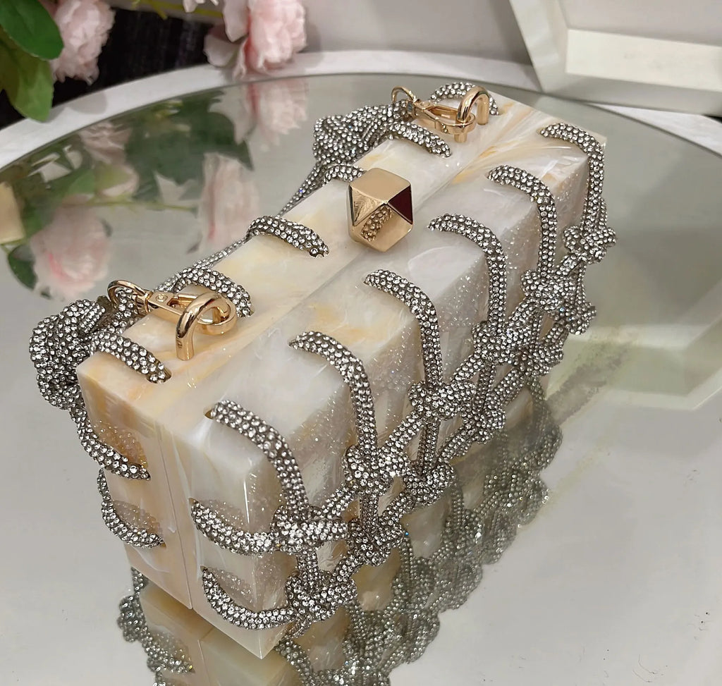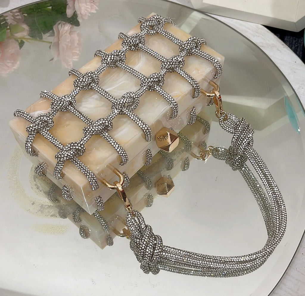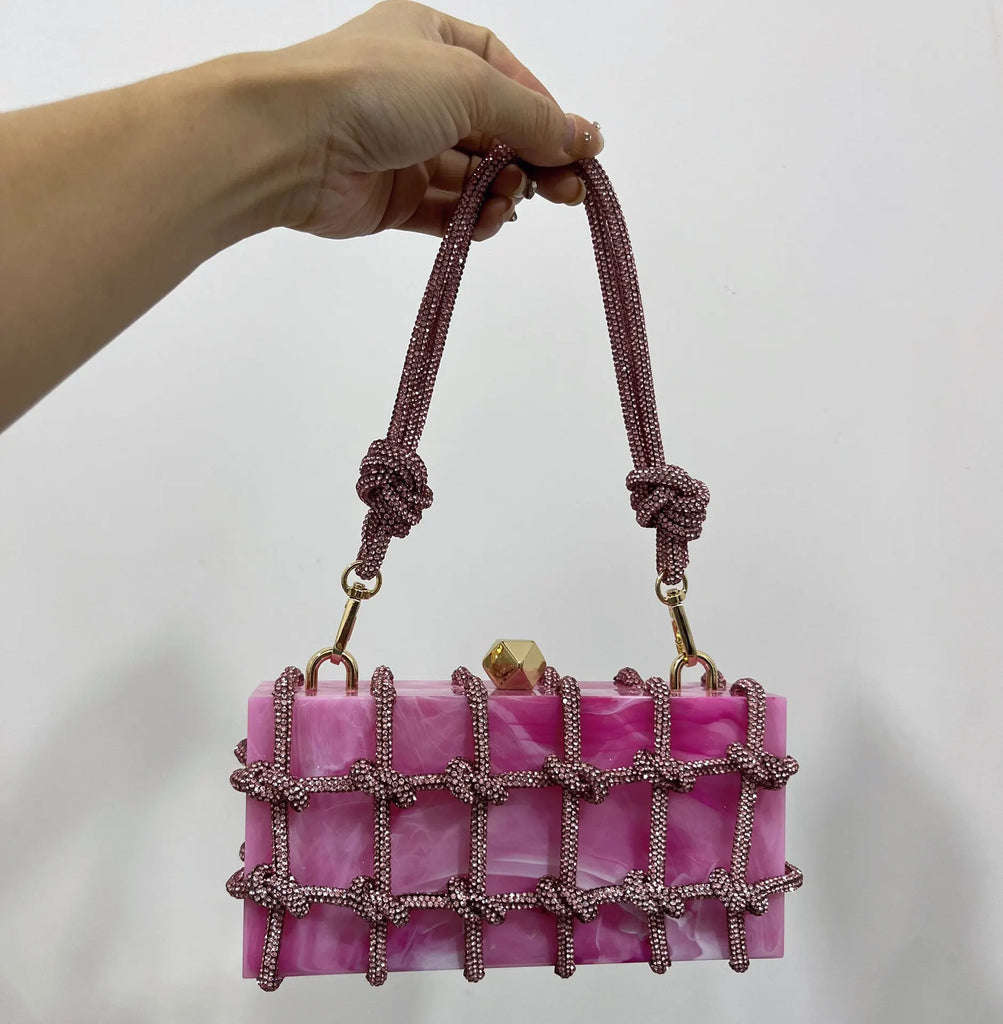 2024 Luxury Evening Clutch Bag Diamond Acrylic Square Handbag Women's Wedding Purse